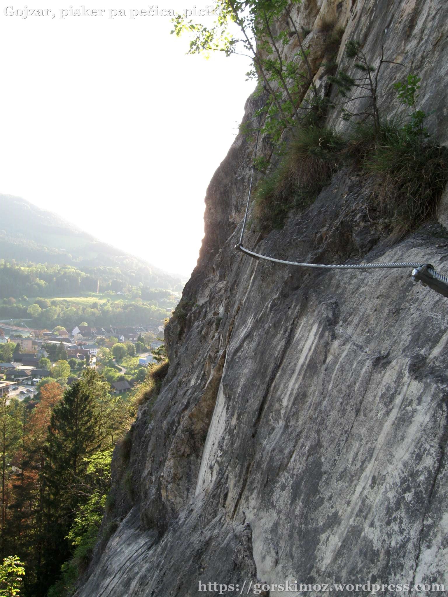 Kolegi z usposabljanja pod Stolom, smo se dober teden pred izpitno turo zmenili za ponovitev znanja izdelave vrvnih ograj. Za kraj zločina smo si izbrali plezališče v Labotu (oz. Lavamündu). Plezališče je lahko dostopno, ima steno z smermi za športno plezanje in športno ferato. Mi smo se ukvarjali predvsem z vrvmi in izdelavo vodoravne in navpične ograje. Vsak se je preizkusil v izdelavi, ponovili smo postopke. Na koncu pa sva s kolegom preplezala še športno ferato.