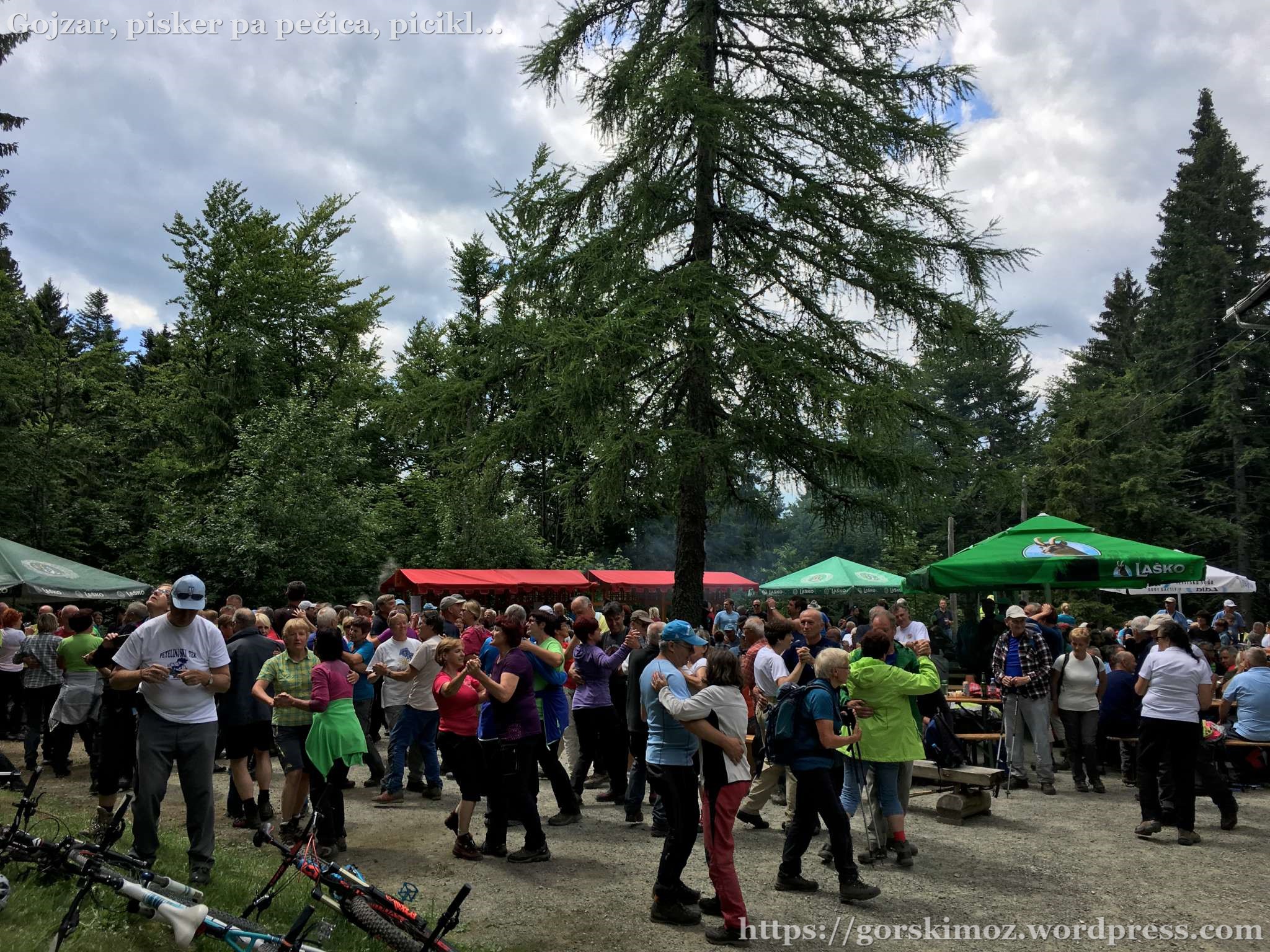 Planinci so se kljub hoji do Doma veselo zavrteli ob glasbi.