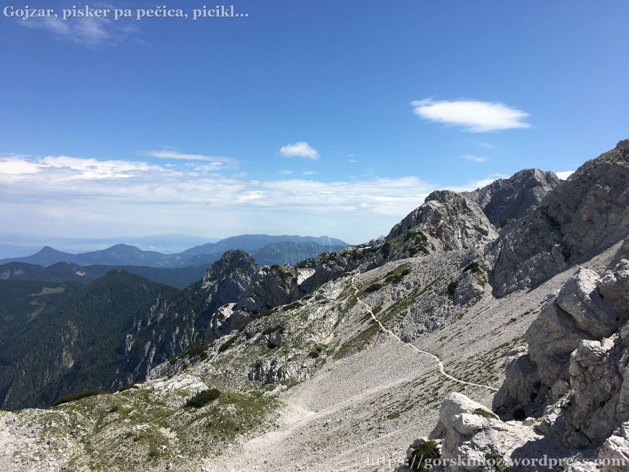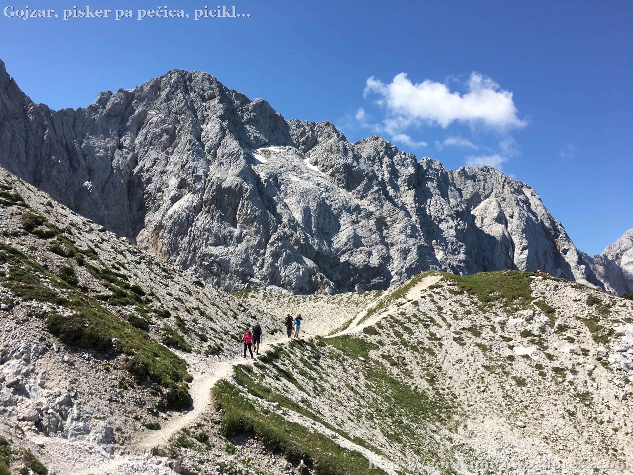 Po uživanju na soncu na vrhu, smo se odpravili nazaj proti koči.,…