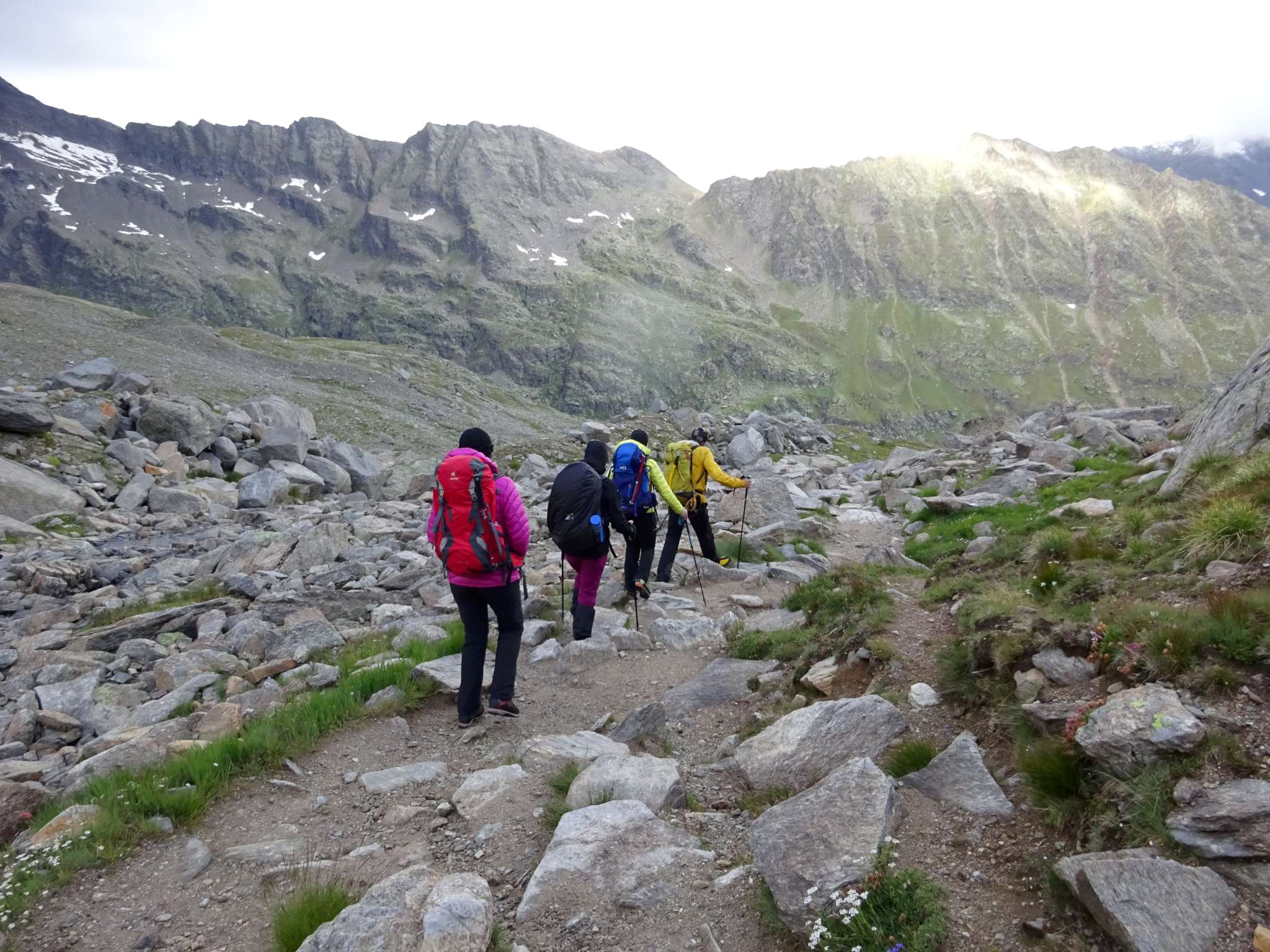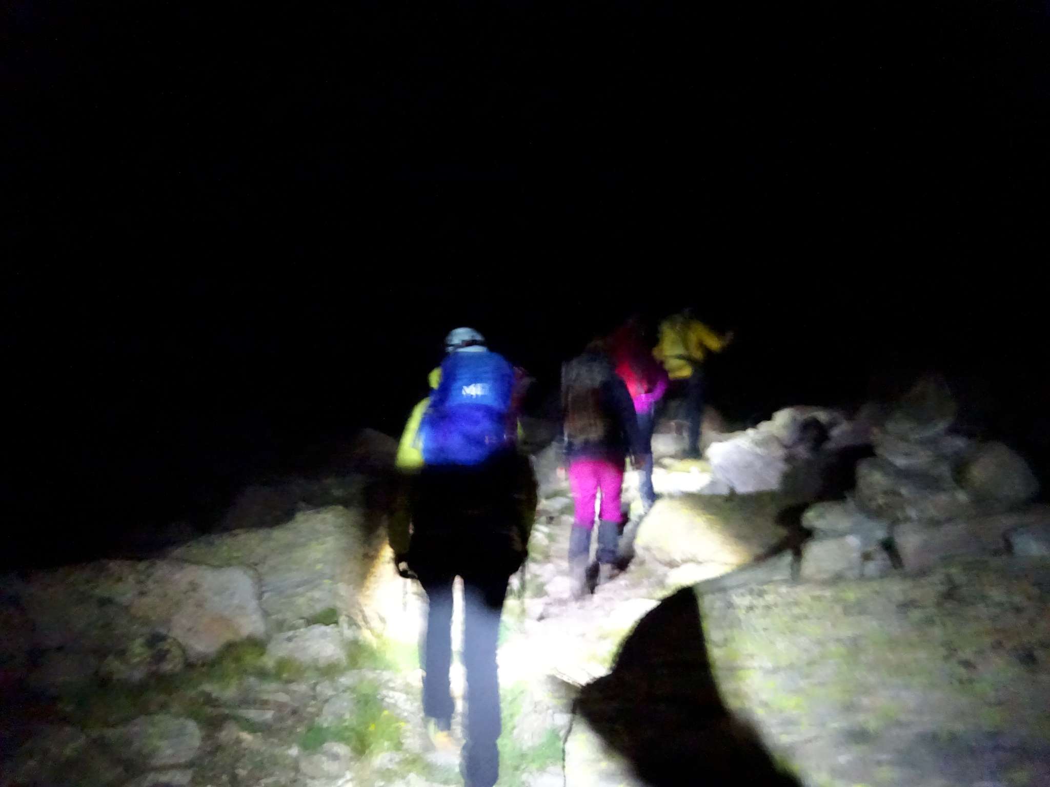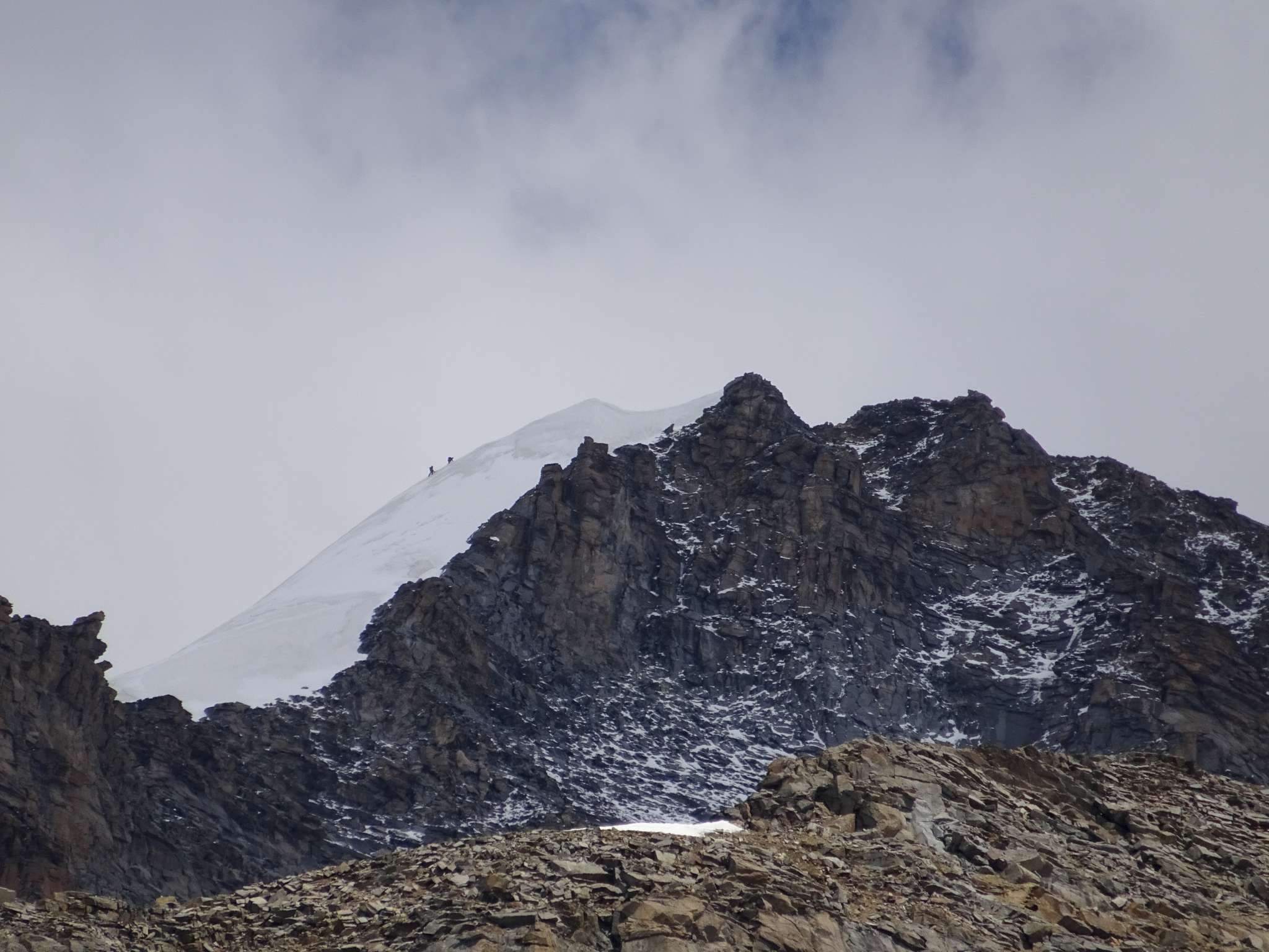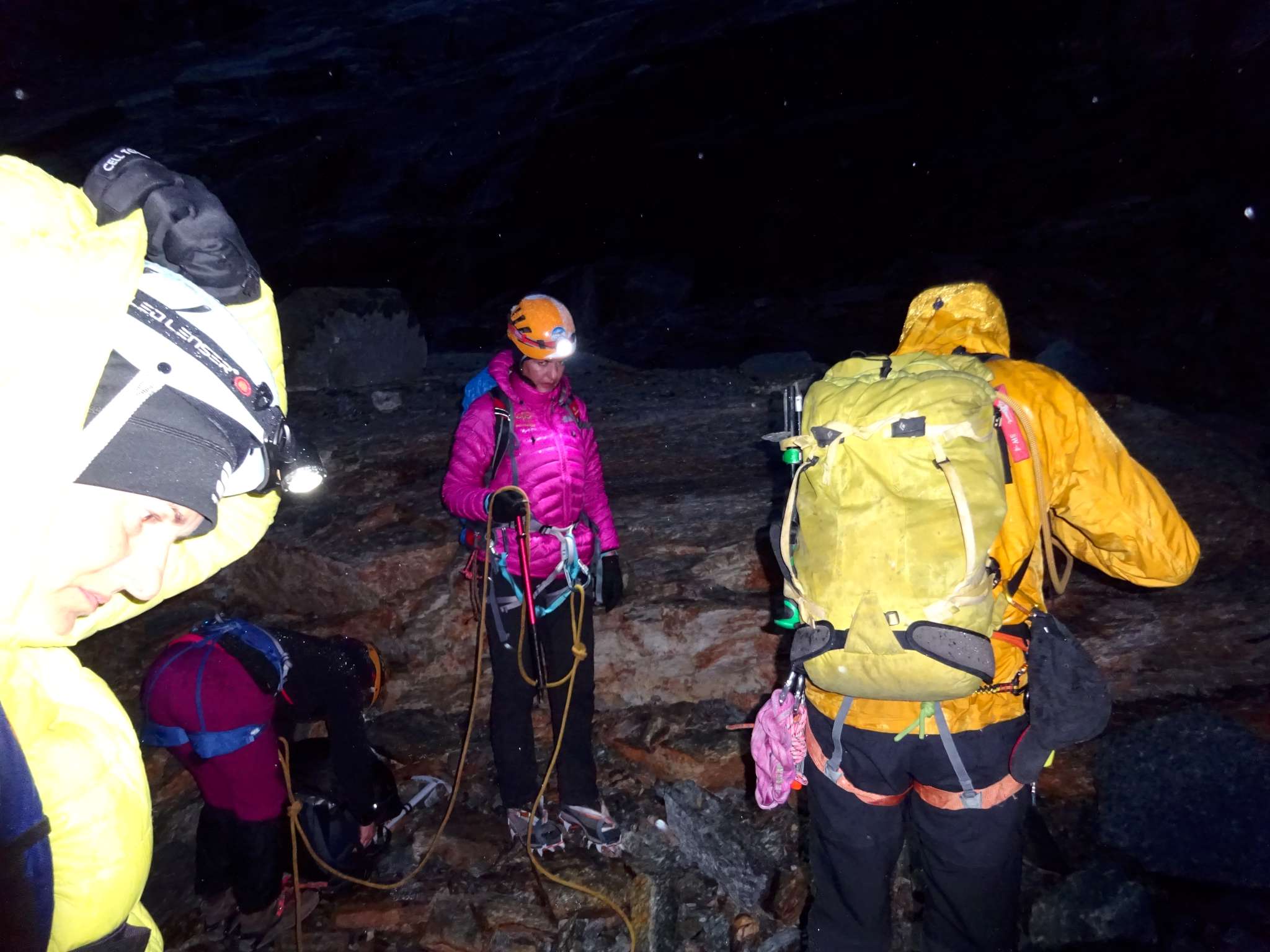 Vzpon poteka prepočasi, pri eni od udeleženk se pojavijo težave z dihanjem. Na višini okoli 3400 m je potrebno sprejeti odločitev. Vzpenjamo se prepočasi, vedno močneje piha veter, težave z dihanjem bodo z višino vse večje. Ne tvegamo in obrnemo.