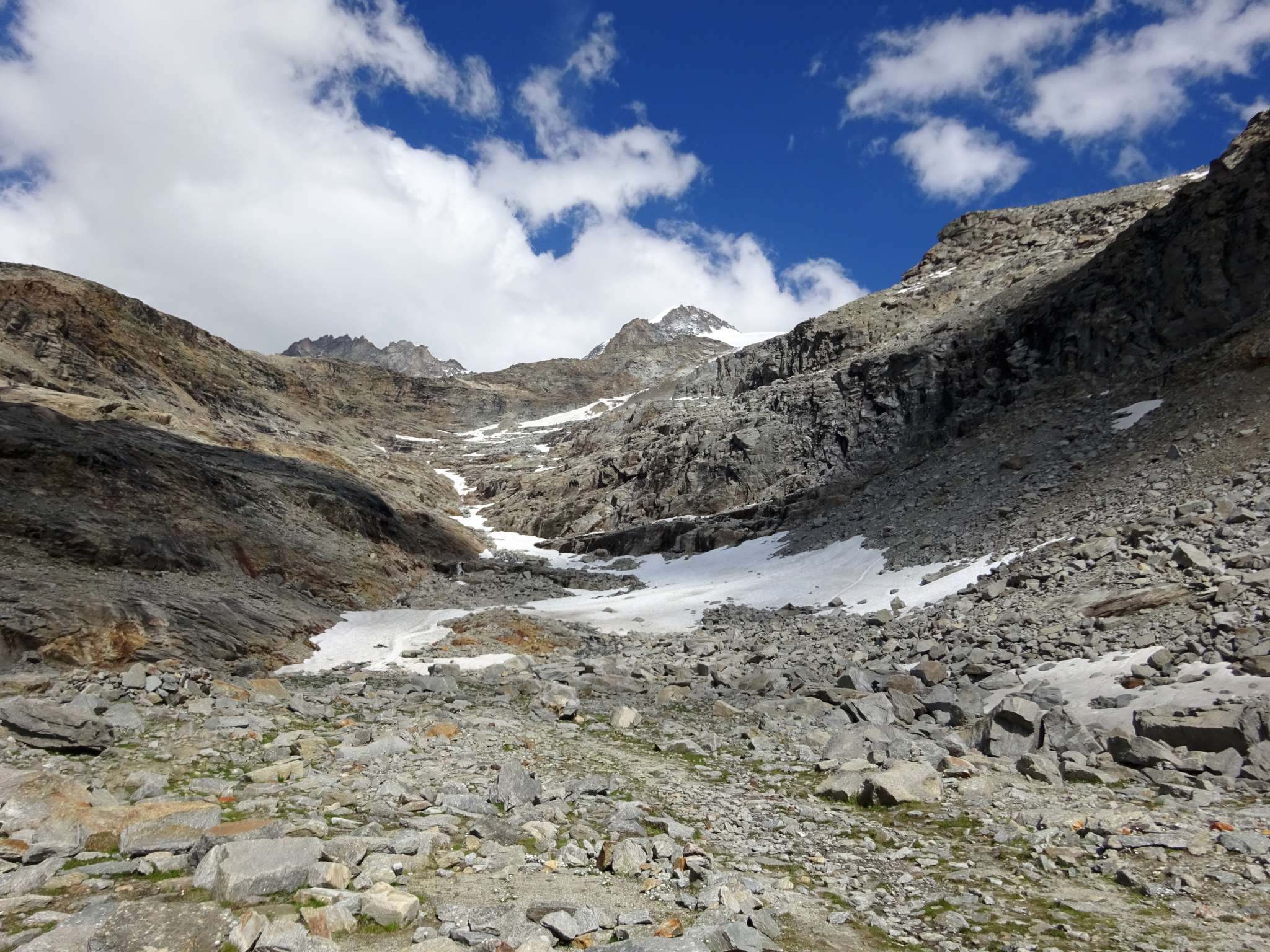 Pogled na mogočni Gran Paradiso. Pravi vrh s te strani ni viden.