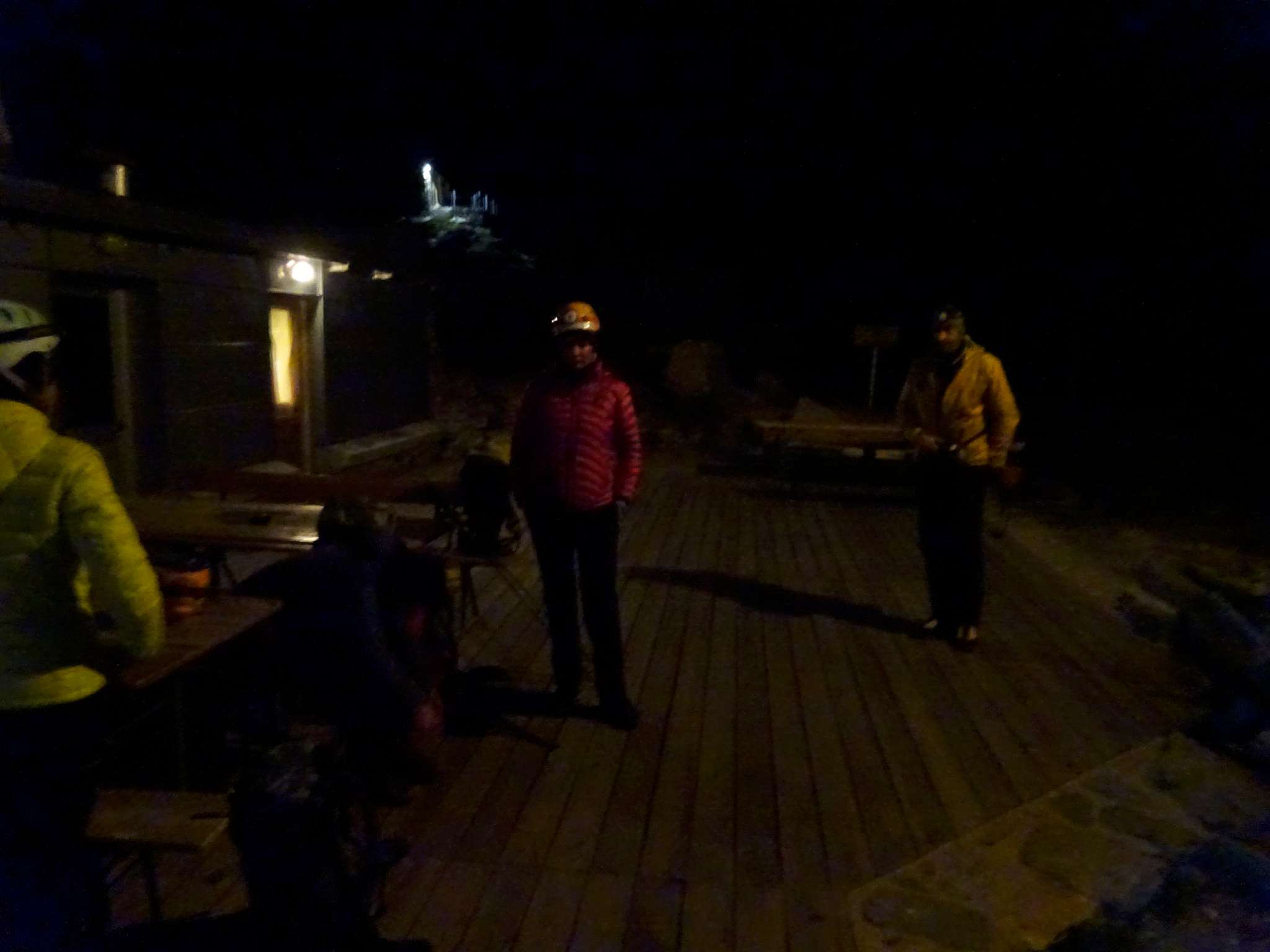 Za večerjo v treh hodih si lahko izbereš predjed in sladico, glavna jed pa je za vse v (pre)polni jedilnici enaka. Strežejo pri mizah in vse je lepo uigrano in hitro vsi dobimo hrano na mizo. Po večerji nam Klemen razloži, kako bo potekal vzpon naslednji dan. Opozori nas, na kaj je treba biti pozoren in kako bo potekal prehod skozi ozko grlo tik pod vrhom. Okoli devetih se odpravimo spat, saj nas zajtrk čaka že ob pol štirih zjutraj.