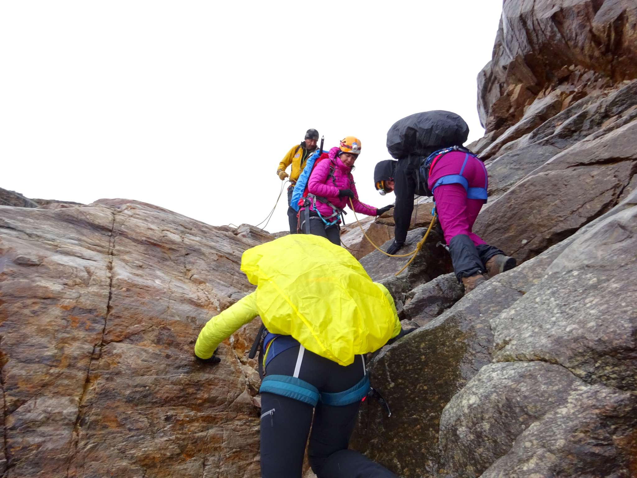 …Klemen pa nas naveže na vrv. Začne deževati, kljub temu pa se odpravimo naprej.