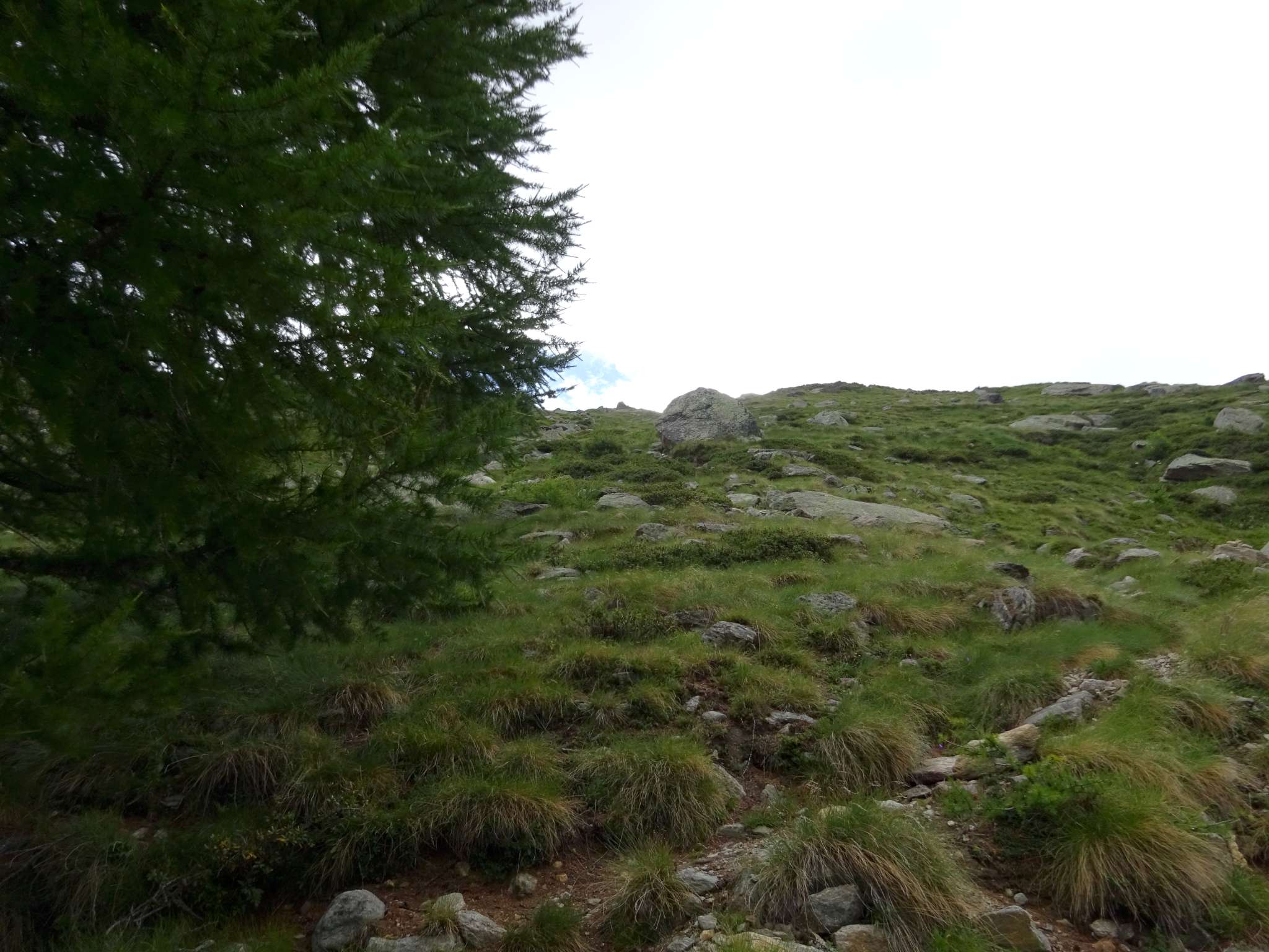 Pogled navzgor ob prehodu iz gozda na gorske travnike.