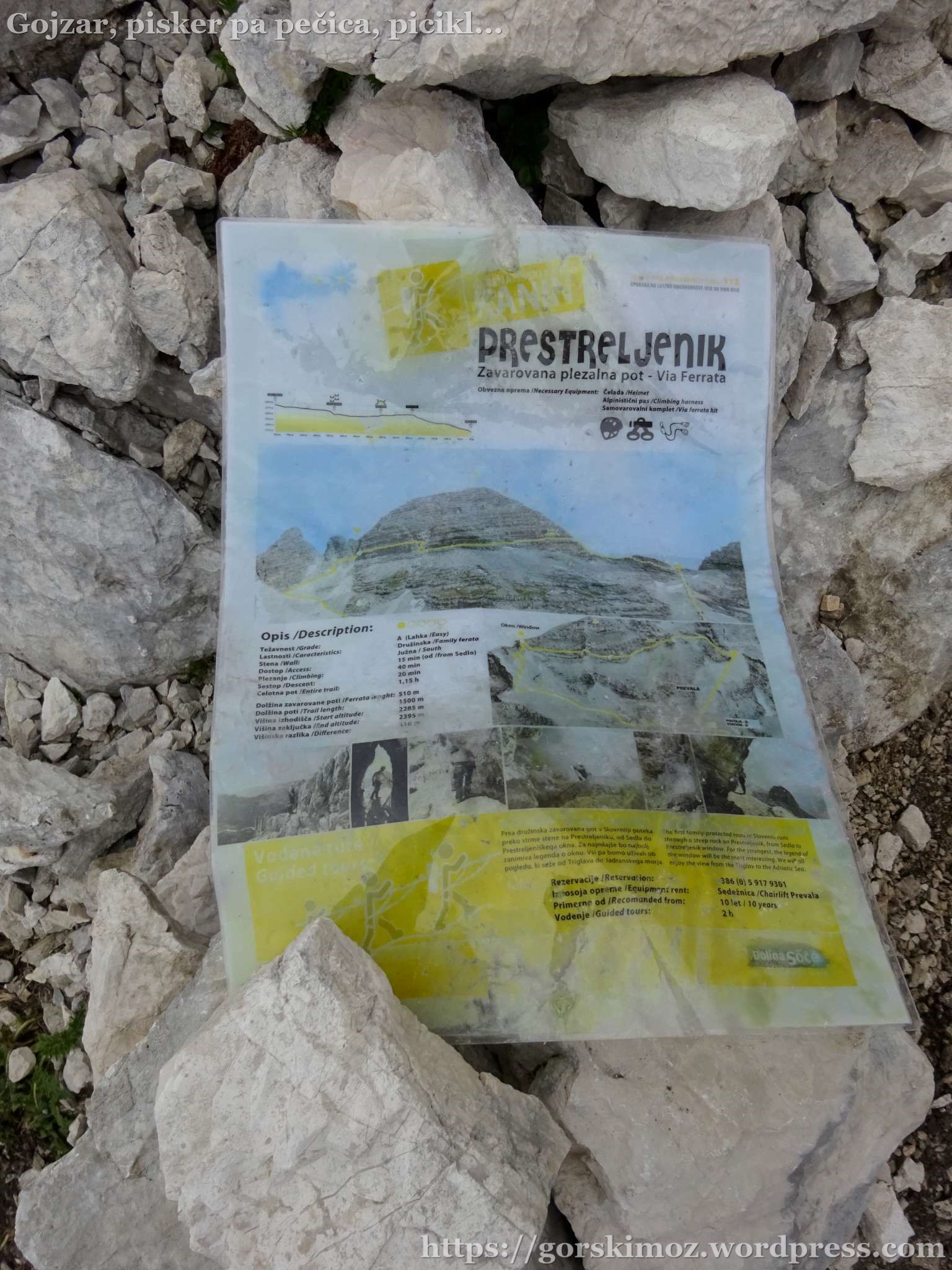 Kolega vodnik iz našega planinskega društva ima v septembru pohod na Visoki Kanin. Treba je bilo preveriti pot in narediti ogledno turo. Tako smo se na zadnjo julijsko soboto podali v Bovec, se s kabinsko žičnico povzpeli do Postaje D in se odpravili na Prestreljenik in Visoki Kanin. Ker so pred kratkim pod Prestreljenikom nadelali tudi novo ferato, smo tudi to vključili v svojo pot.