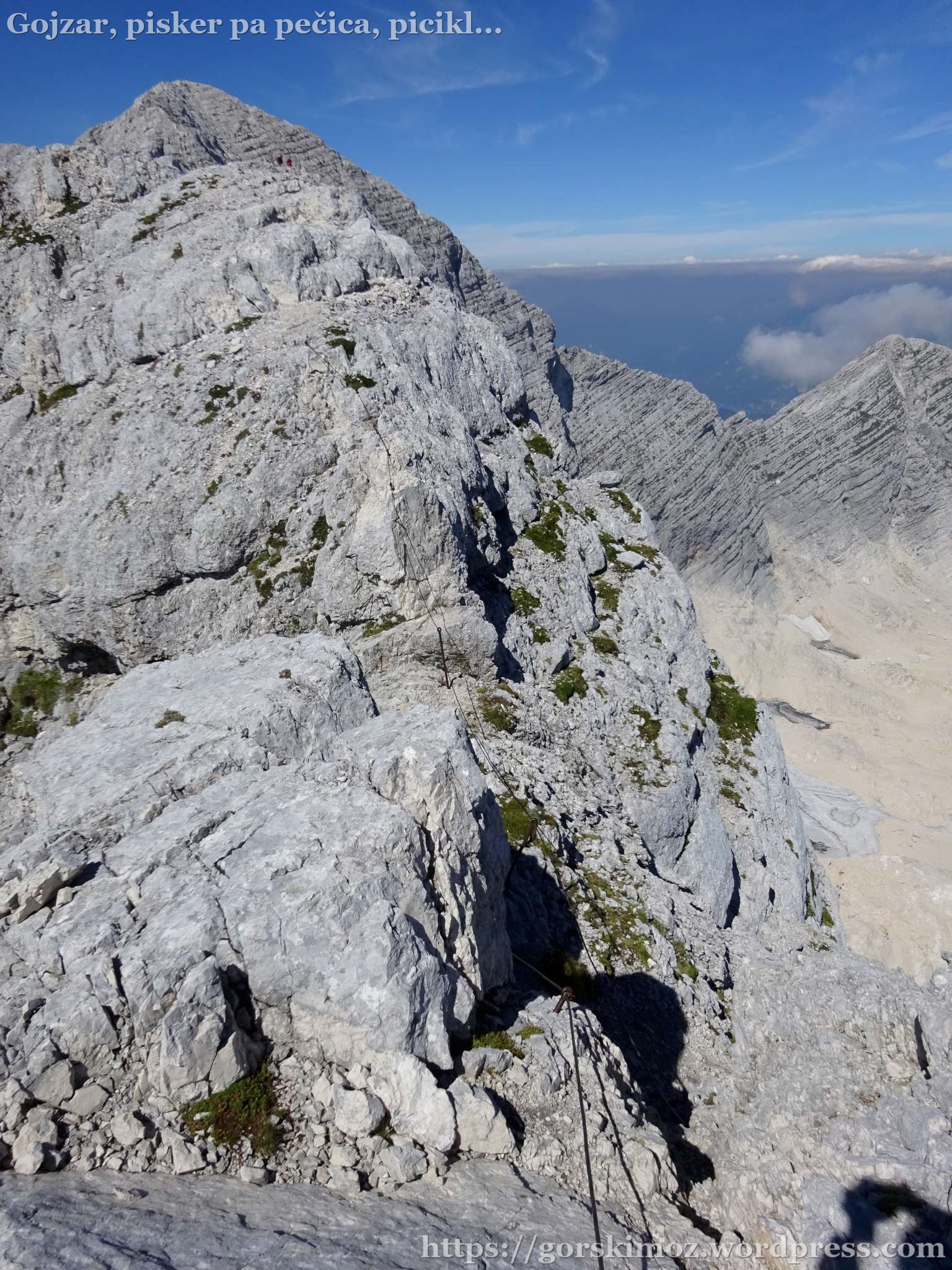 Pogled na prehojeni greben z vrha. Lepo je viden Kaninski led(enik) na italijanski strani.