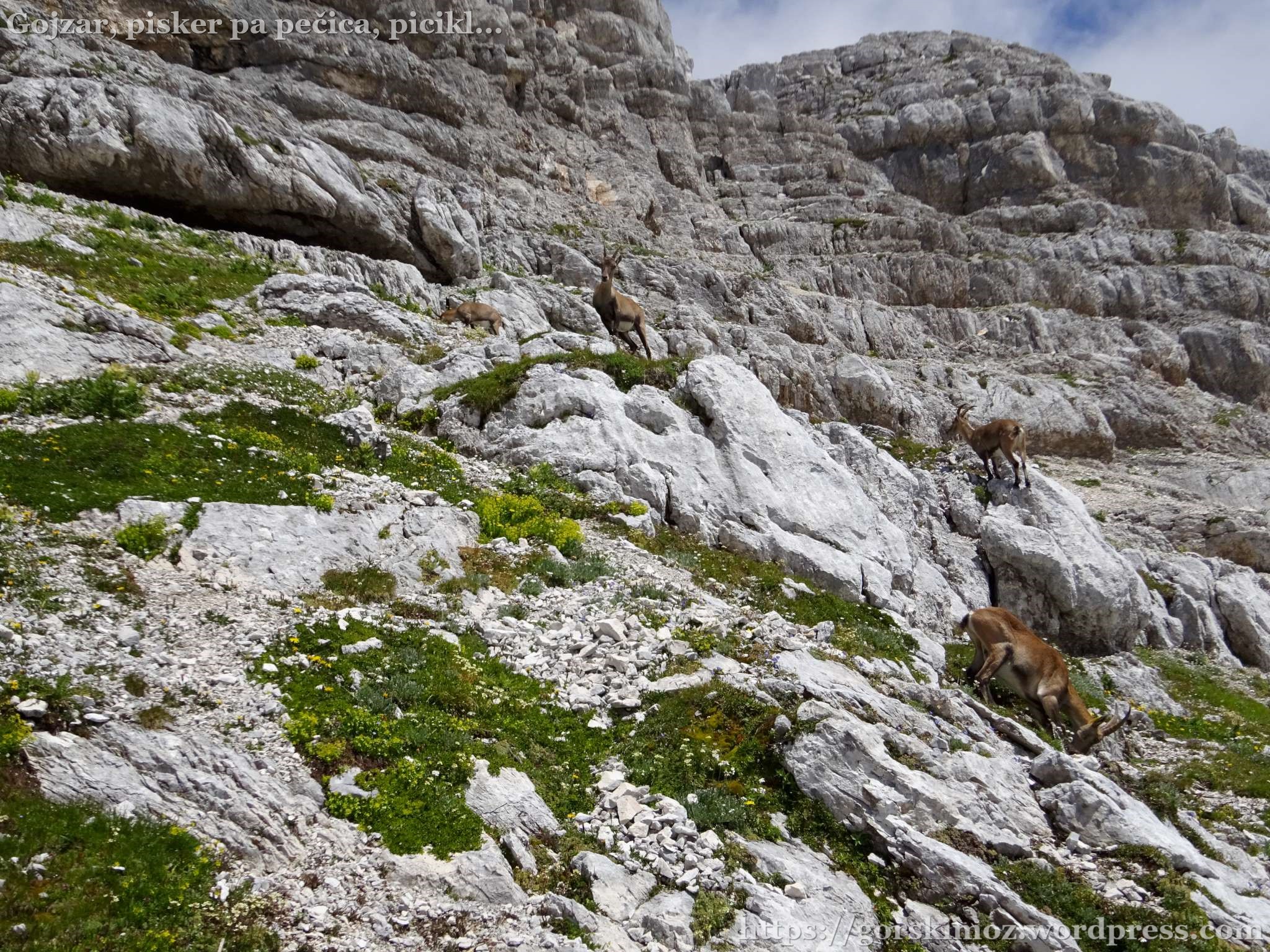 Tudi pod Prestreljenikom se pasejo kozorogi.