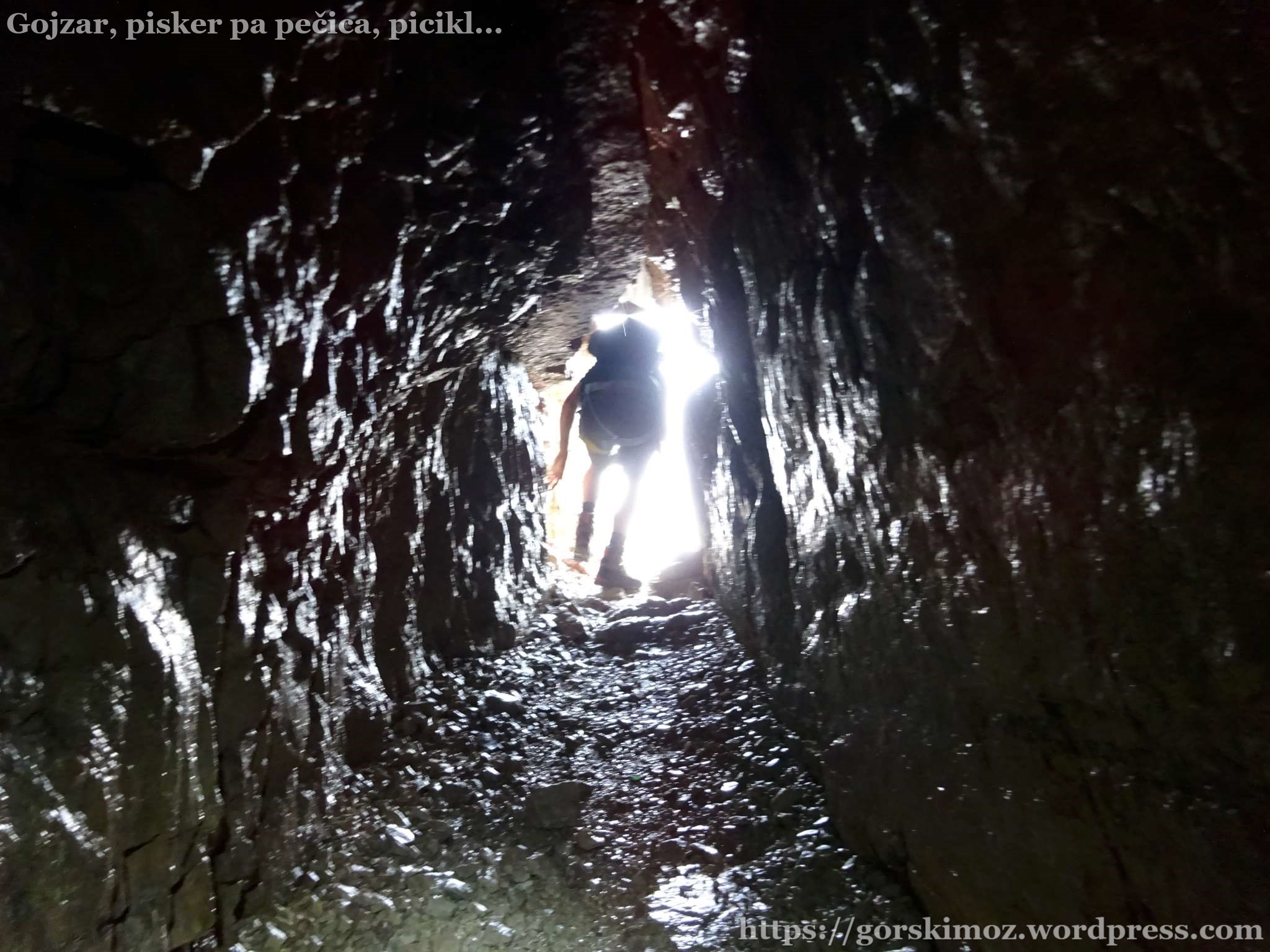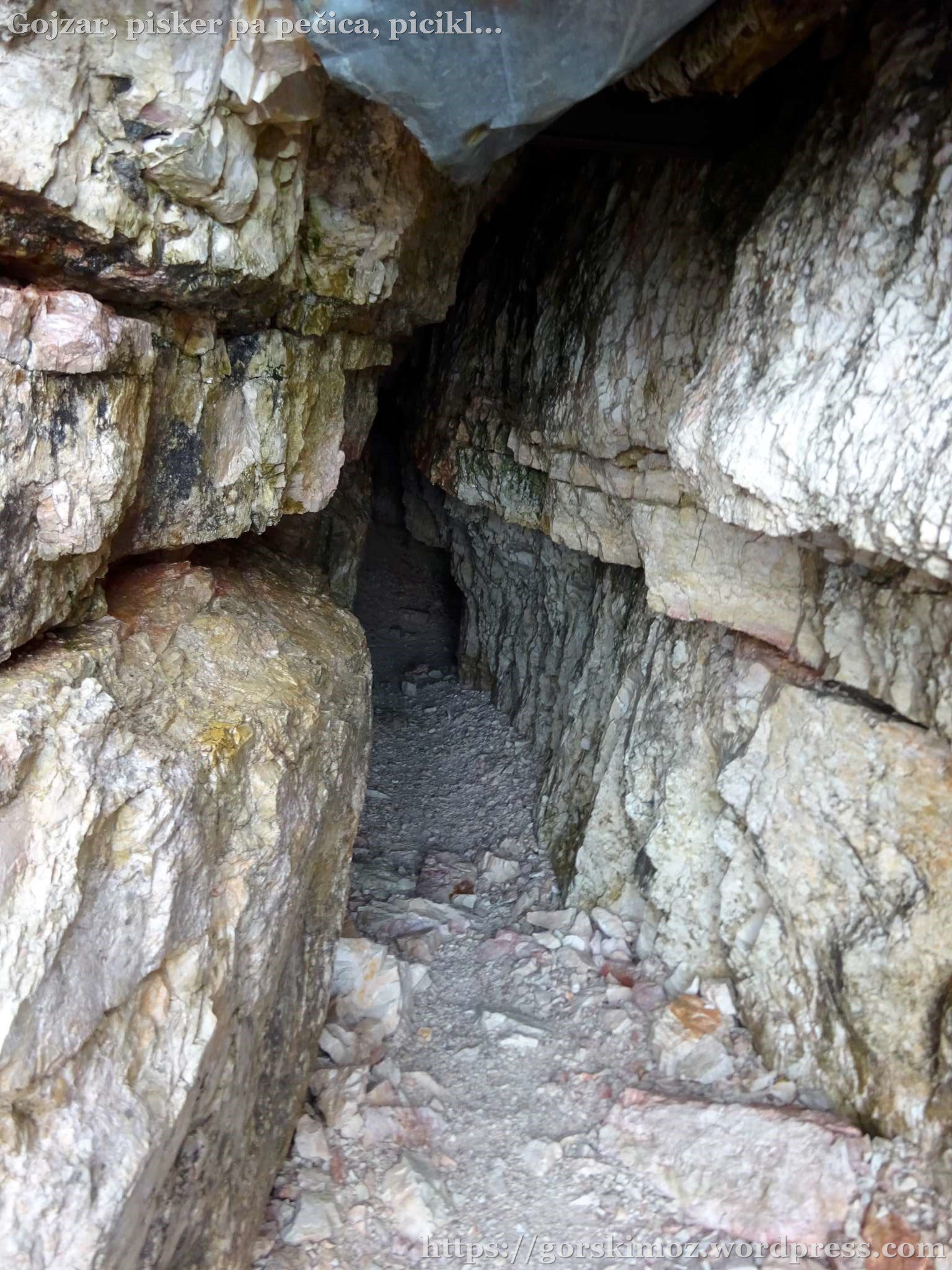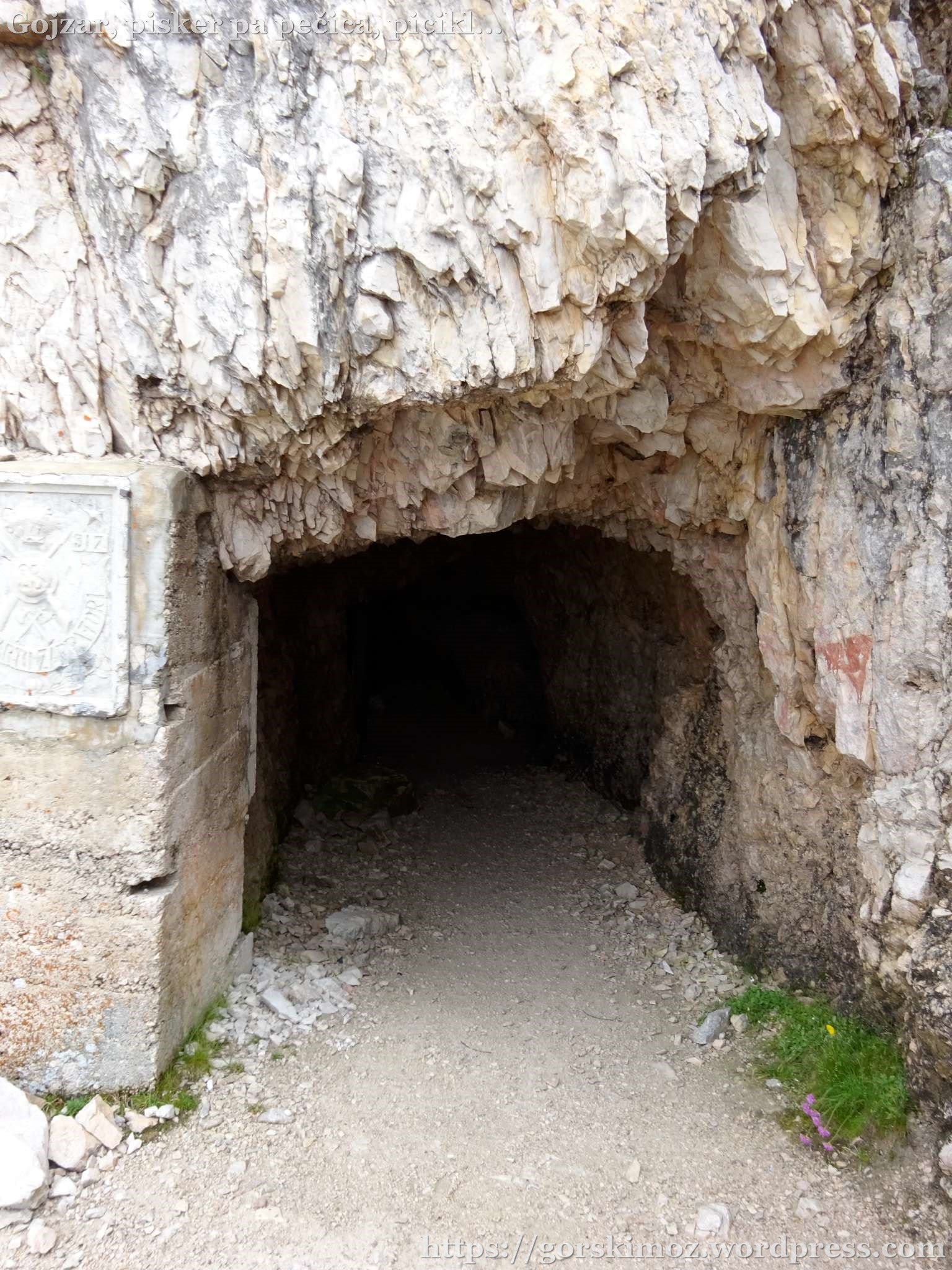 Vhod v na roke izklesan tunel, ki so ga vojaki naredili v času prve svetovne vojne.
