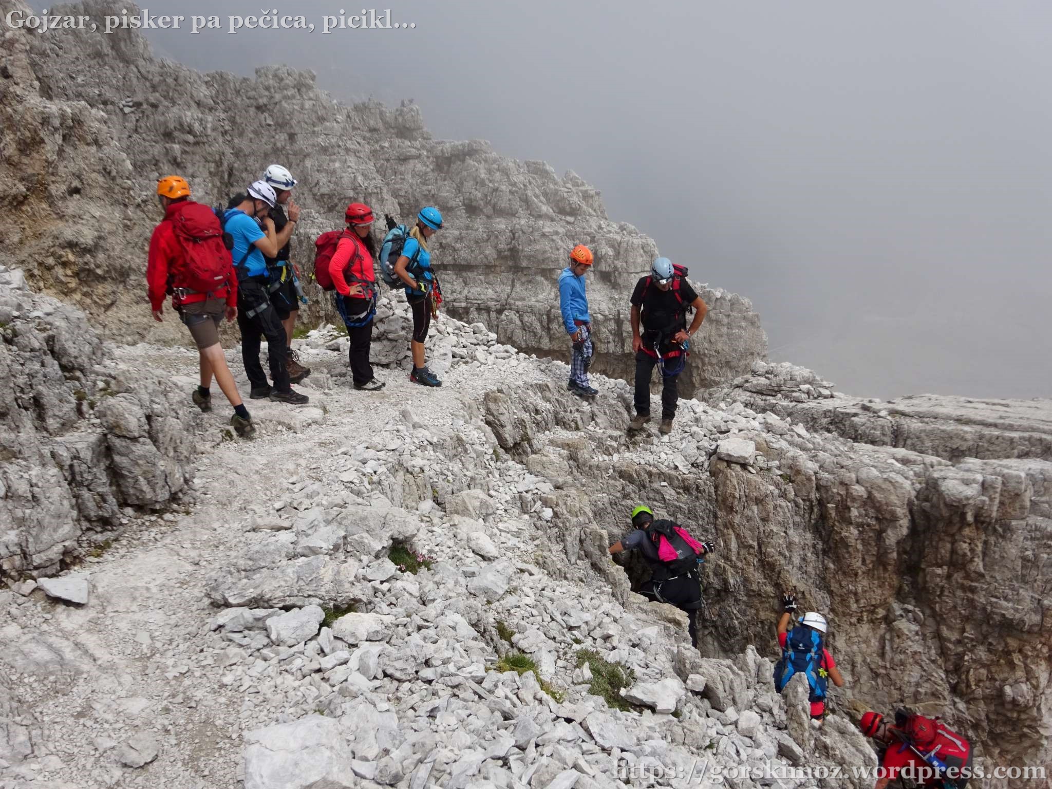 …do konca jeklenic. Gneča pred vstopom v ferato.