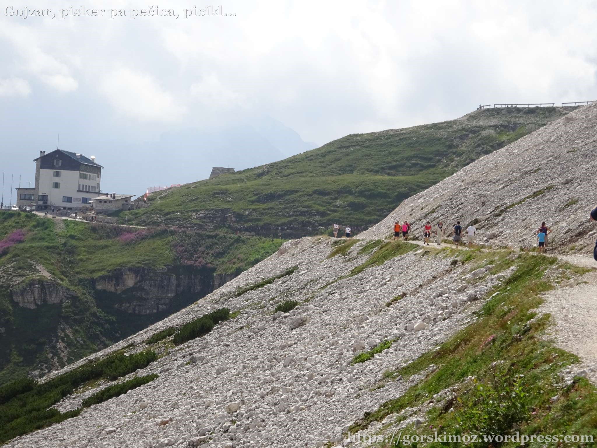 Po krajšem počitku se odpravimo po široki cesti proti koči Lavaredo in na sedlo pod Cinami.