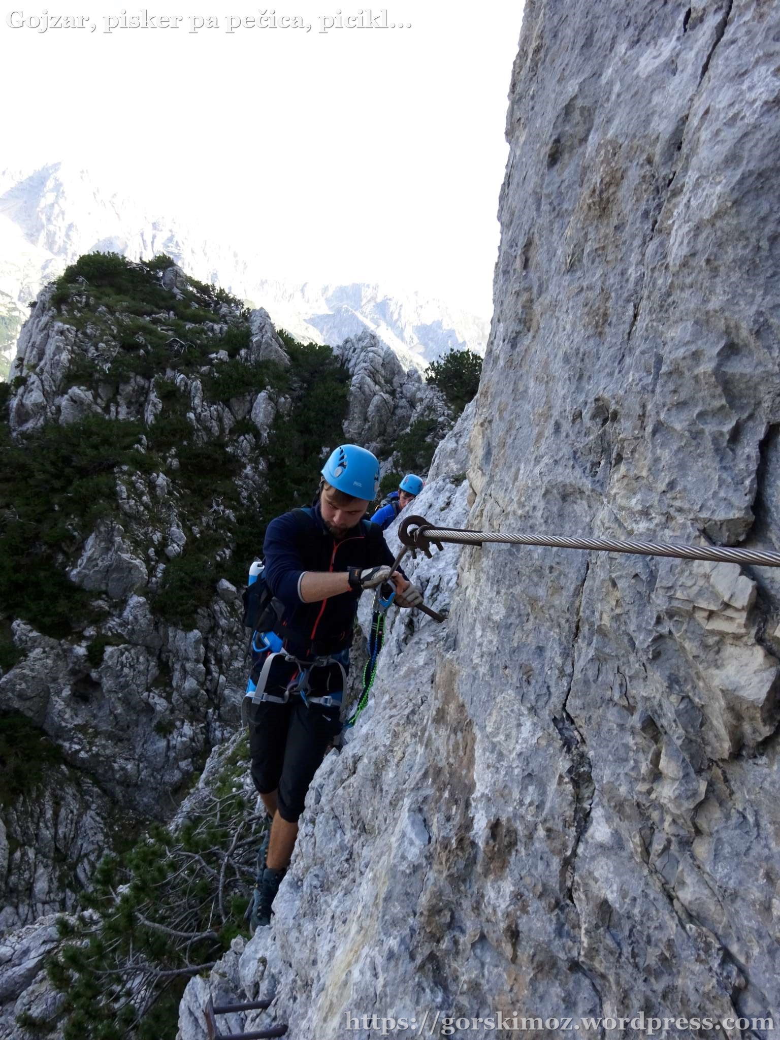 Sledi še zadnji zavarovani del poti čez skalni skok.