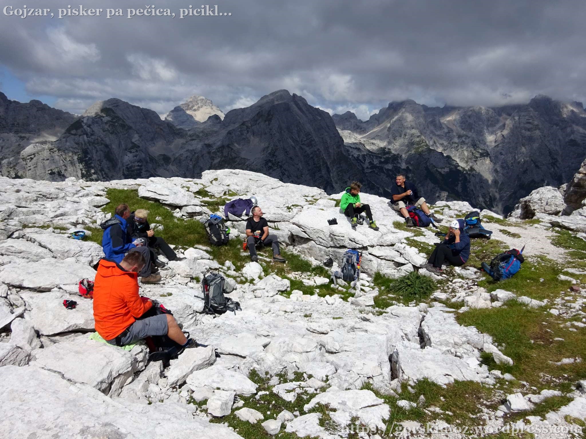Na Triglavskih podih smo si vzeli čas za malico,…