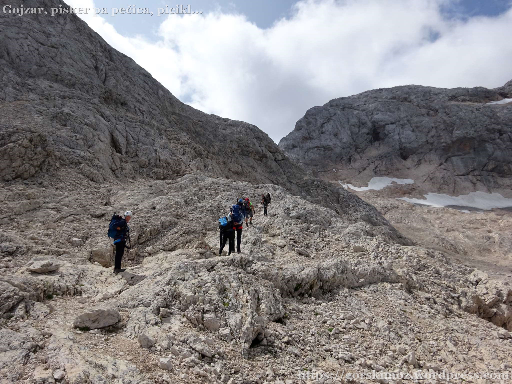 …spustili do vrha melišča pod Begunjskim vrhom.