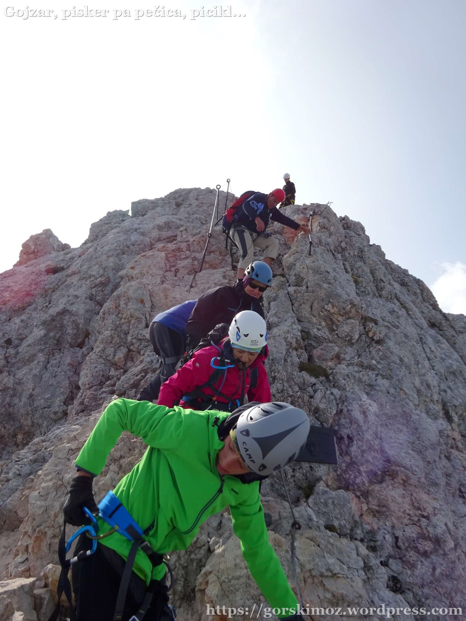 Udeleženci so si iz nahrbtnikov vzeli nepotrebne stvari ali nahrbtnike celo odložili in odpravili smo se na naš najvišji vrh.