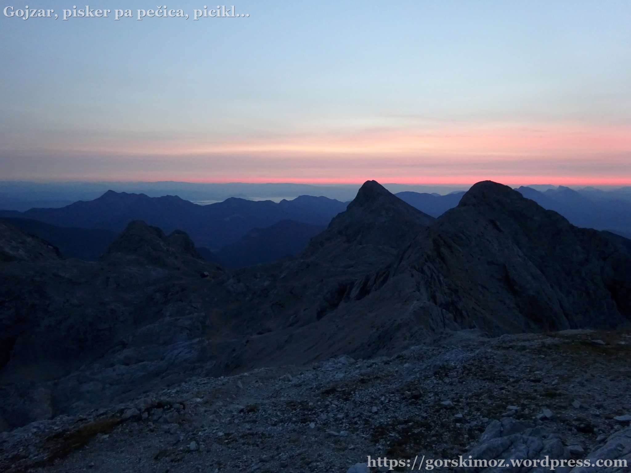 Uživali smo ob krasnih razgledih z vrha. Pogled na Jalovec in Mangart.