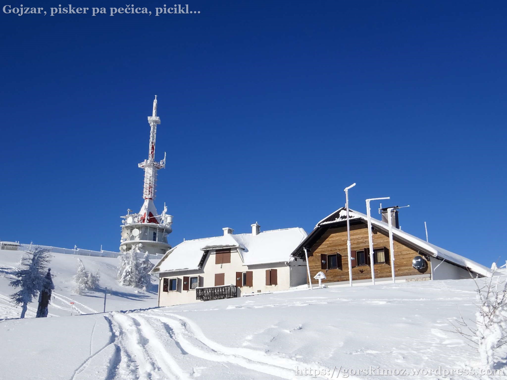 Pred kočo je dosti snega. V koči pa vse polno ljudi. Dan je bil res prekrasen in enakih misli kot jaz je bilo dosti pohodnikov. V koči srečam tudi prijatelja, s katerim se nisva videla že nekaj časa.