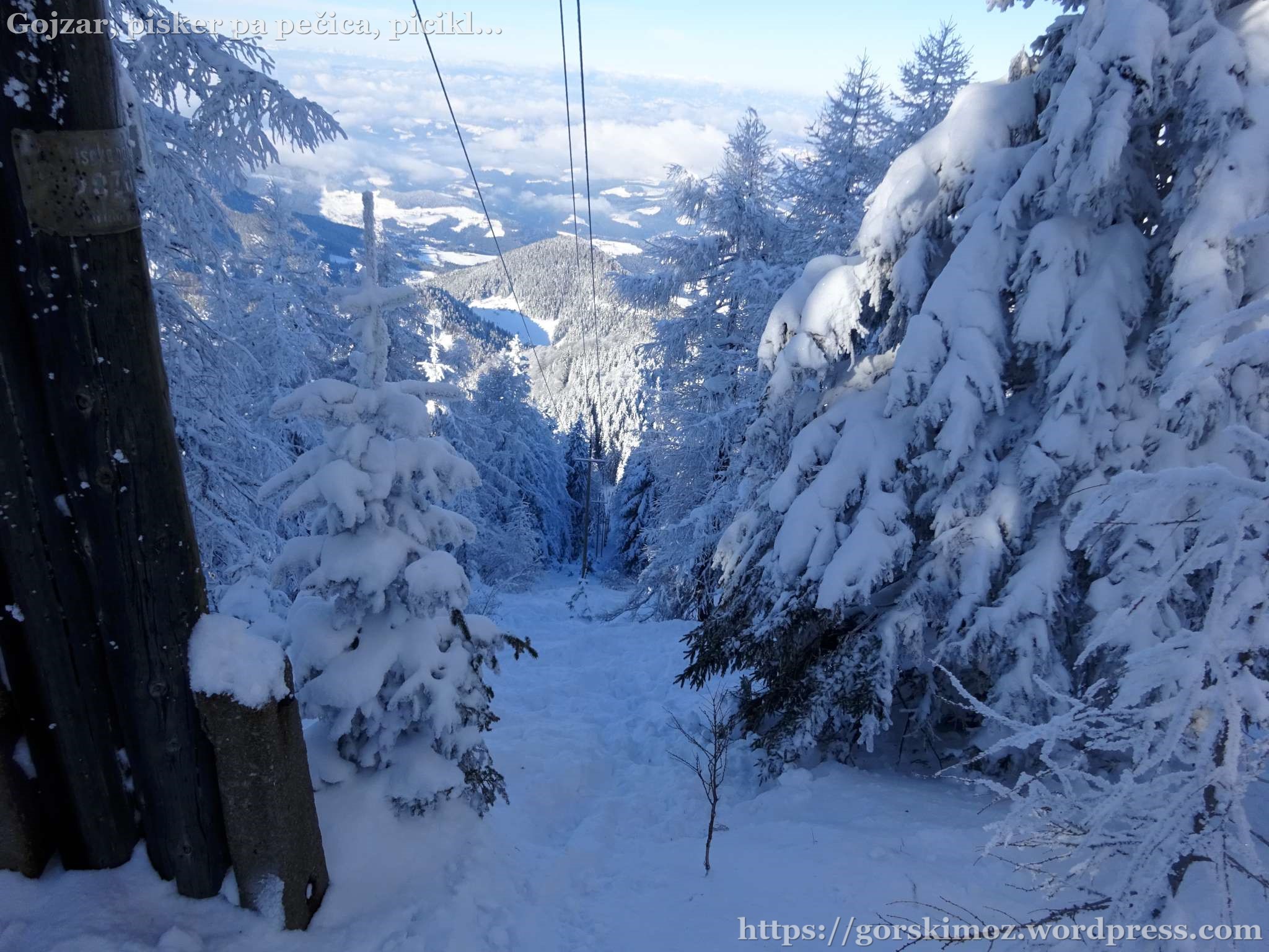 Po sneženju med tednom je prišla nedelja z lepim vremenom. Pogled proti Uršlji gori je razkrival, da je zapadlo kar nekaj snega. Klic gore je bil premočan, da bi ostal doma, čeprav je v dolini bilo kar pošteno mraz. Na pot sem se tokrat podal z Ivarčkega jezera, saj je že v soboto (po slikah sodeč) bilo lepo shojeno.