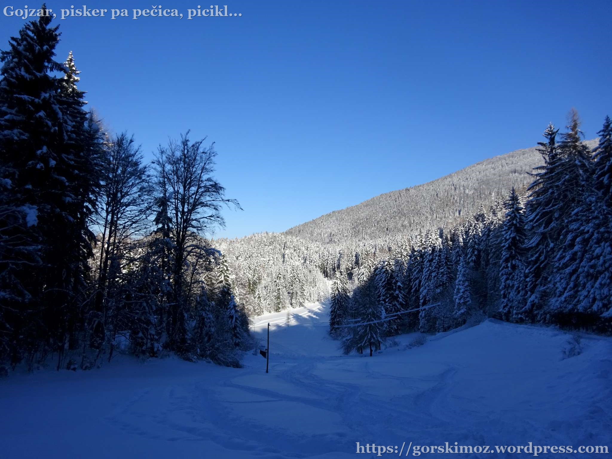Travnik nad kmetijo je lepo zasnežen, pot pa izvrstno shojena.