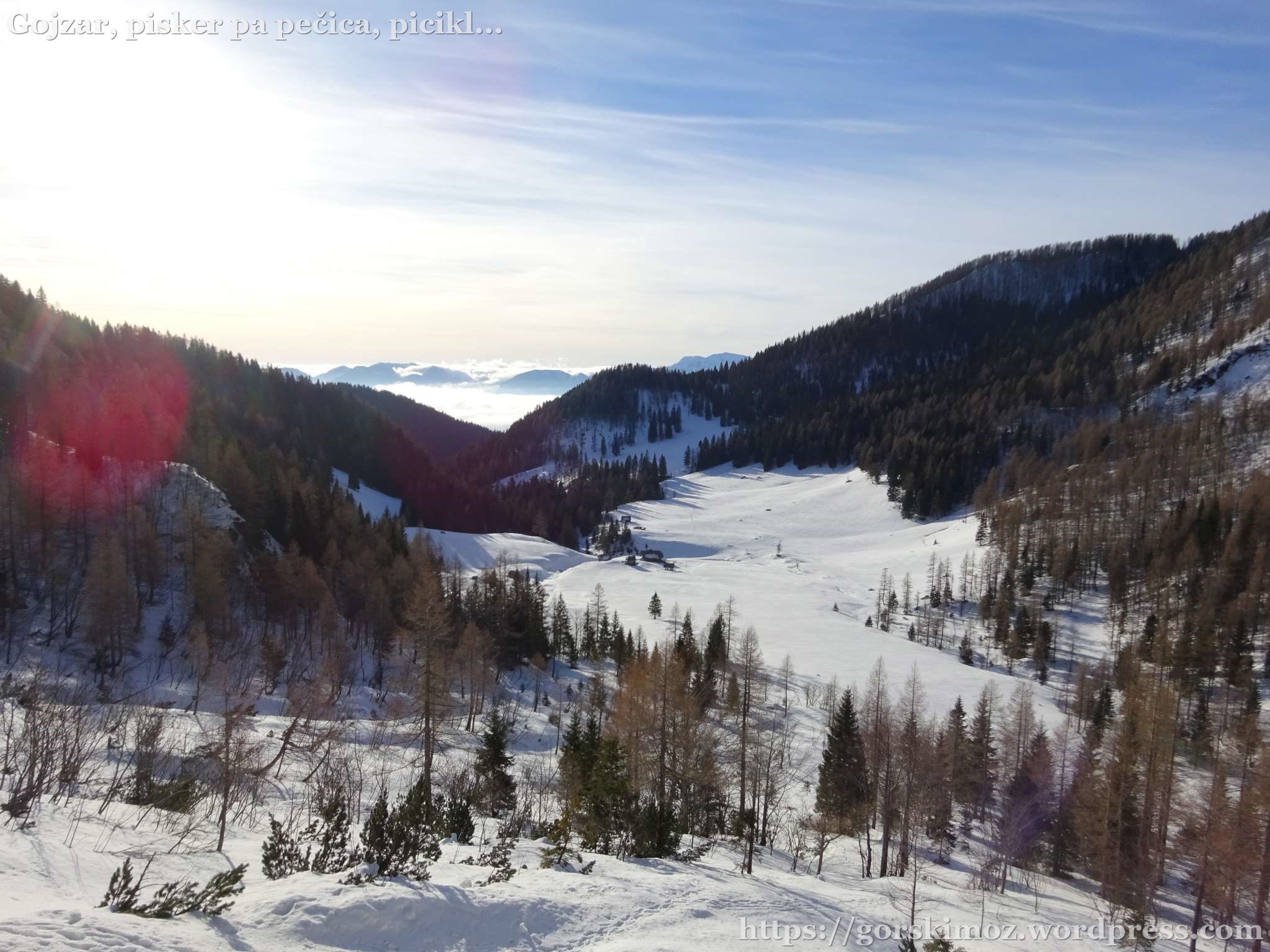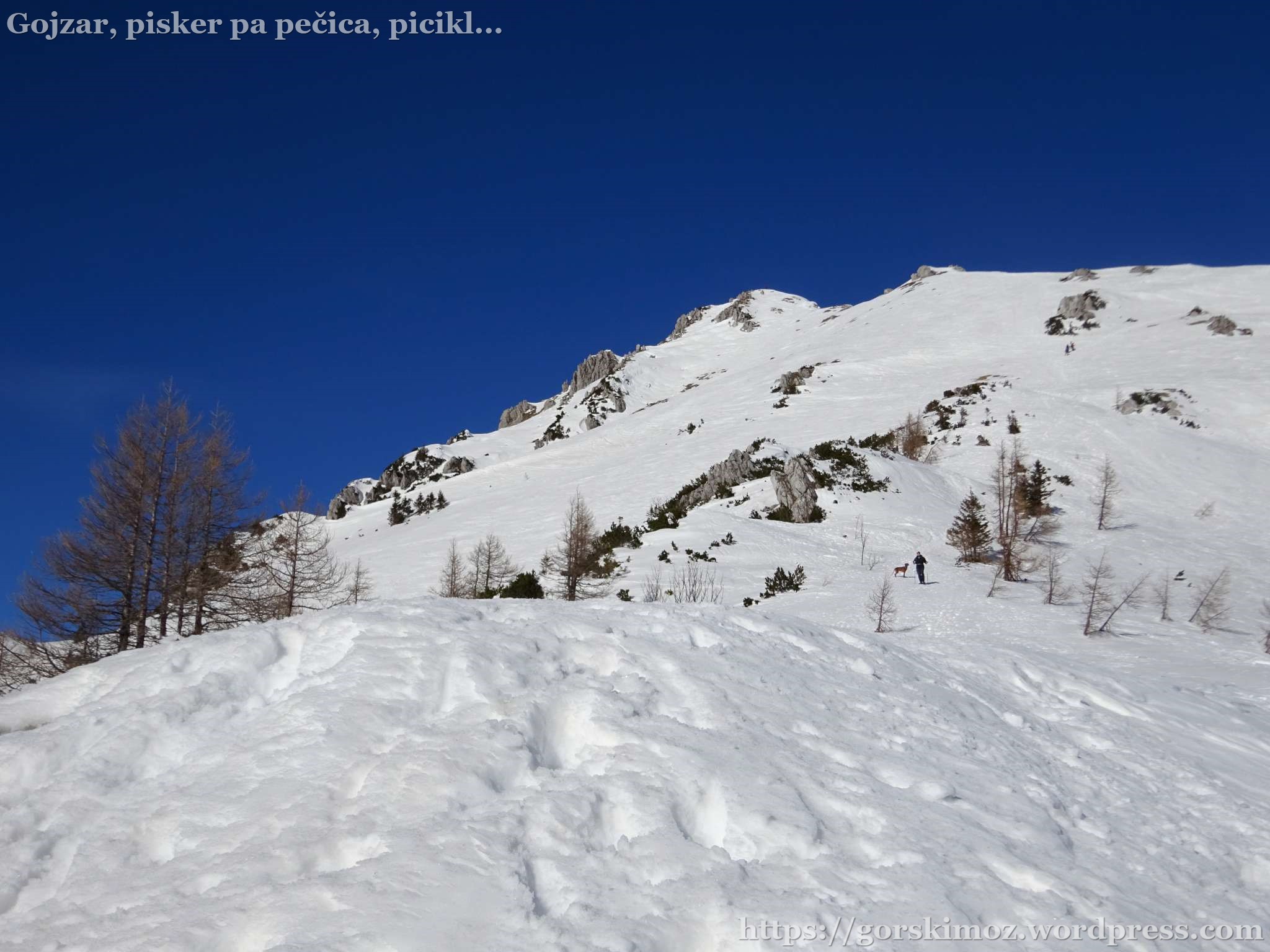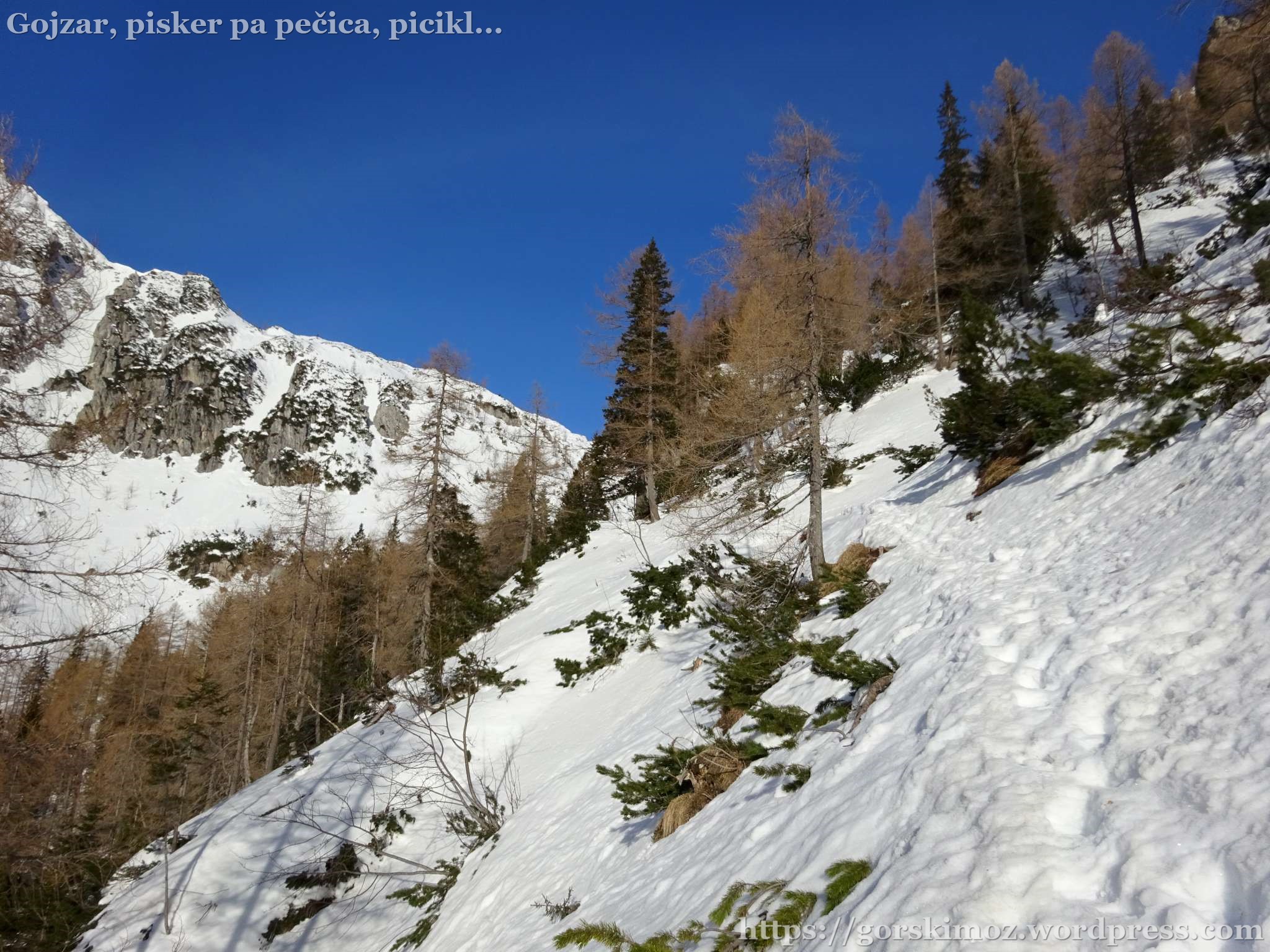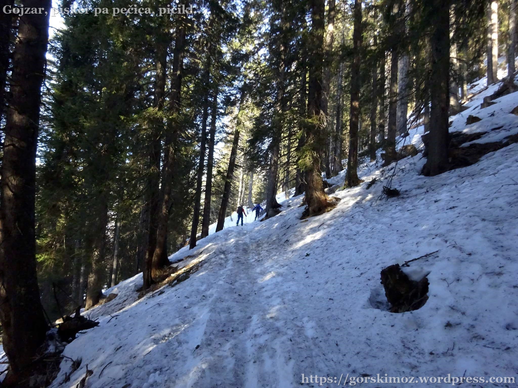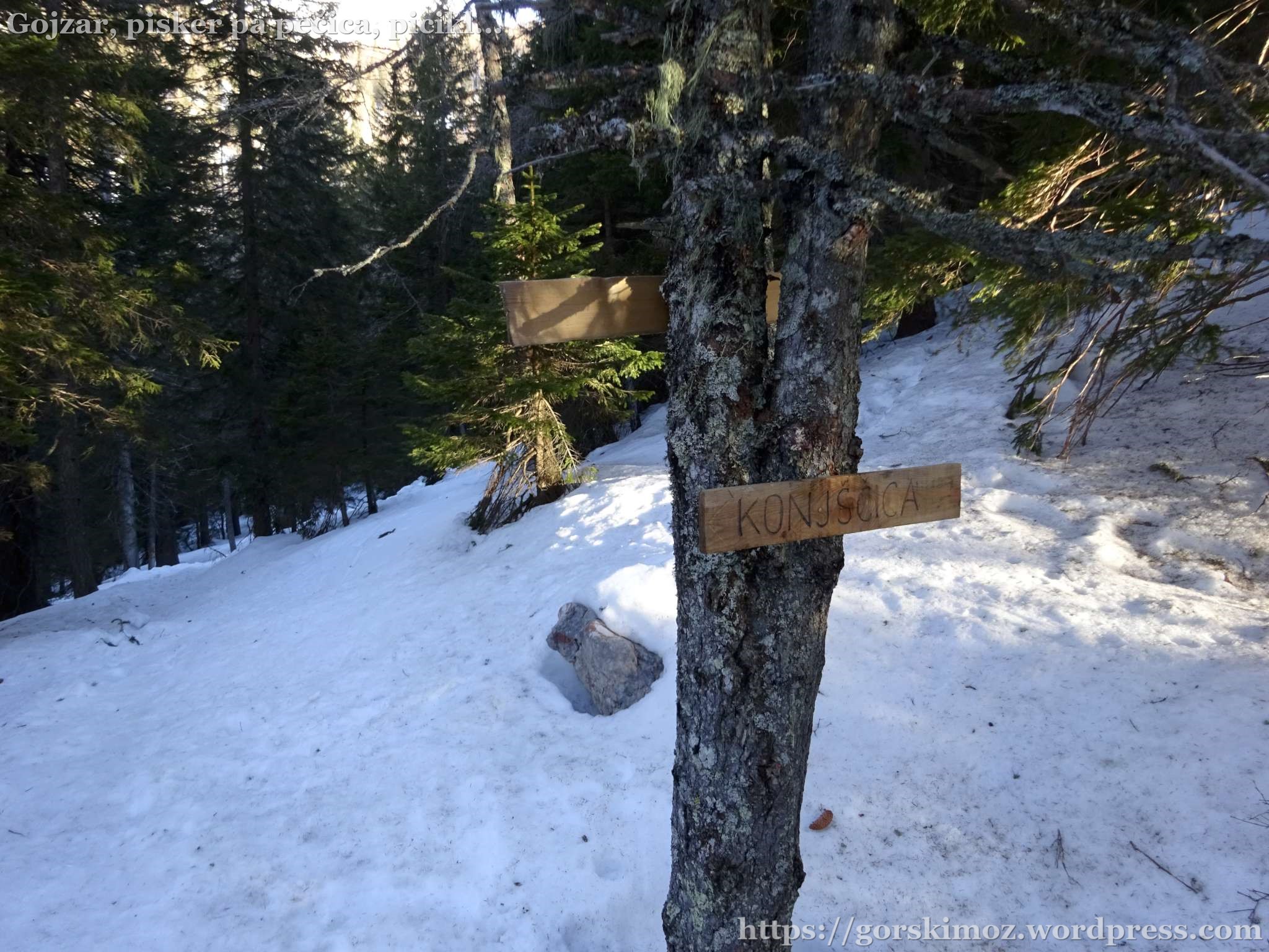 Kmalu se z desnega pobočja nad Konjščico priključim poti, ki jo uberejo turni smučarji.