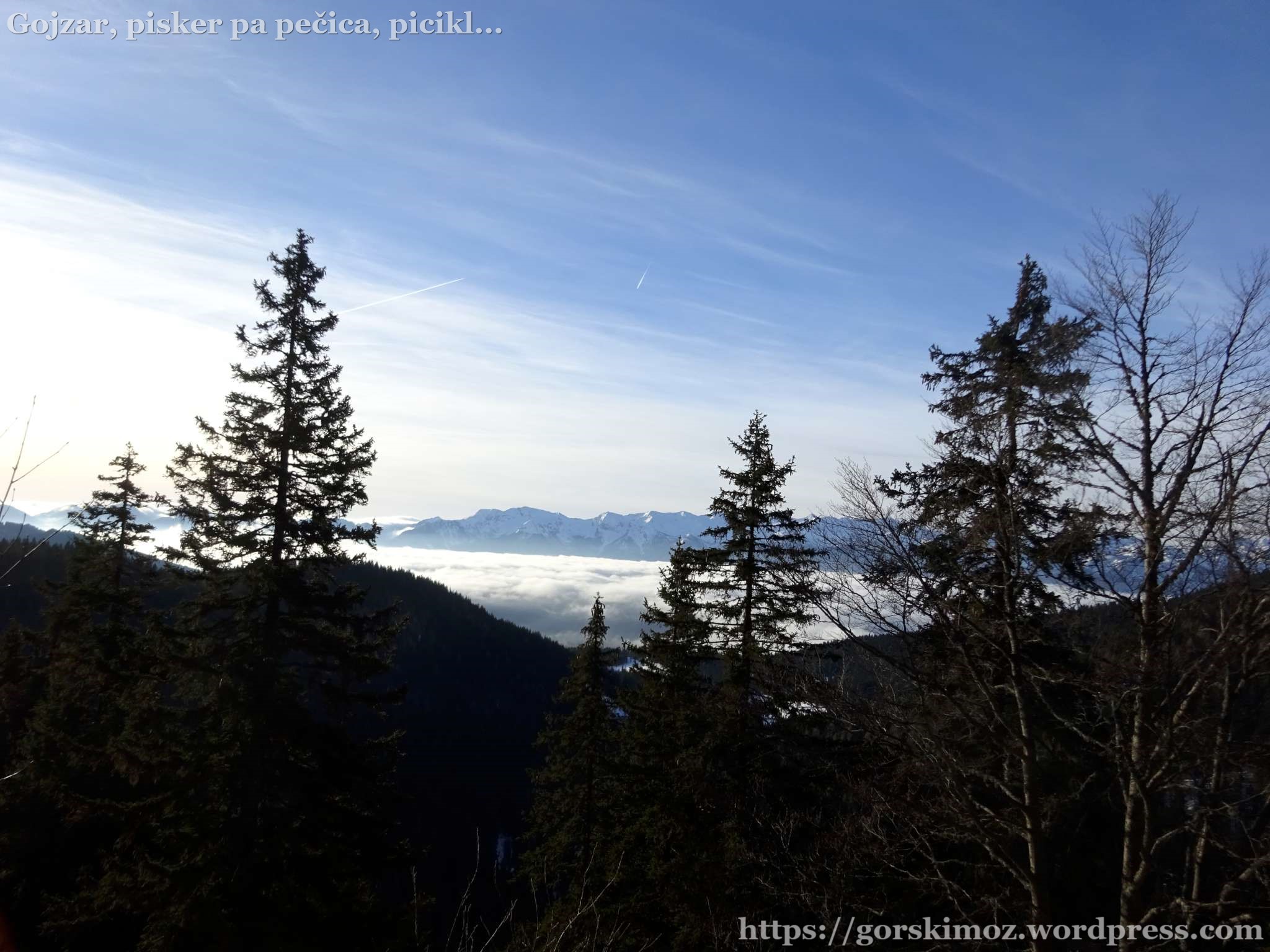 Kmalu pridem iz gozda in se ozrem proti Bohinju, ki je bil še pod meglenim morjem.