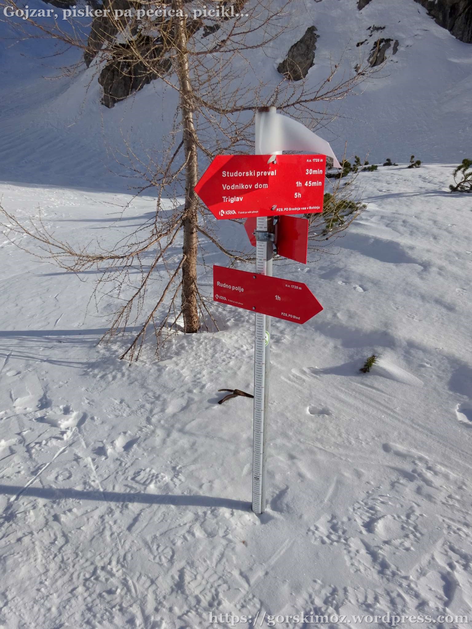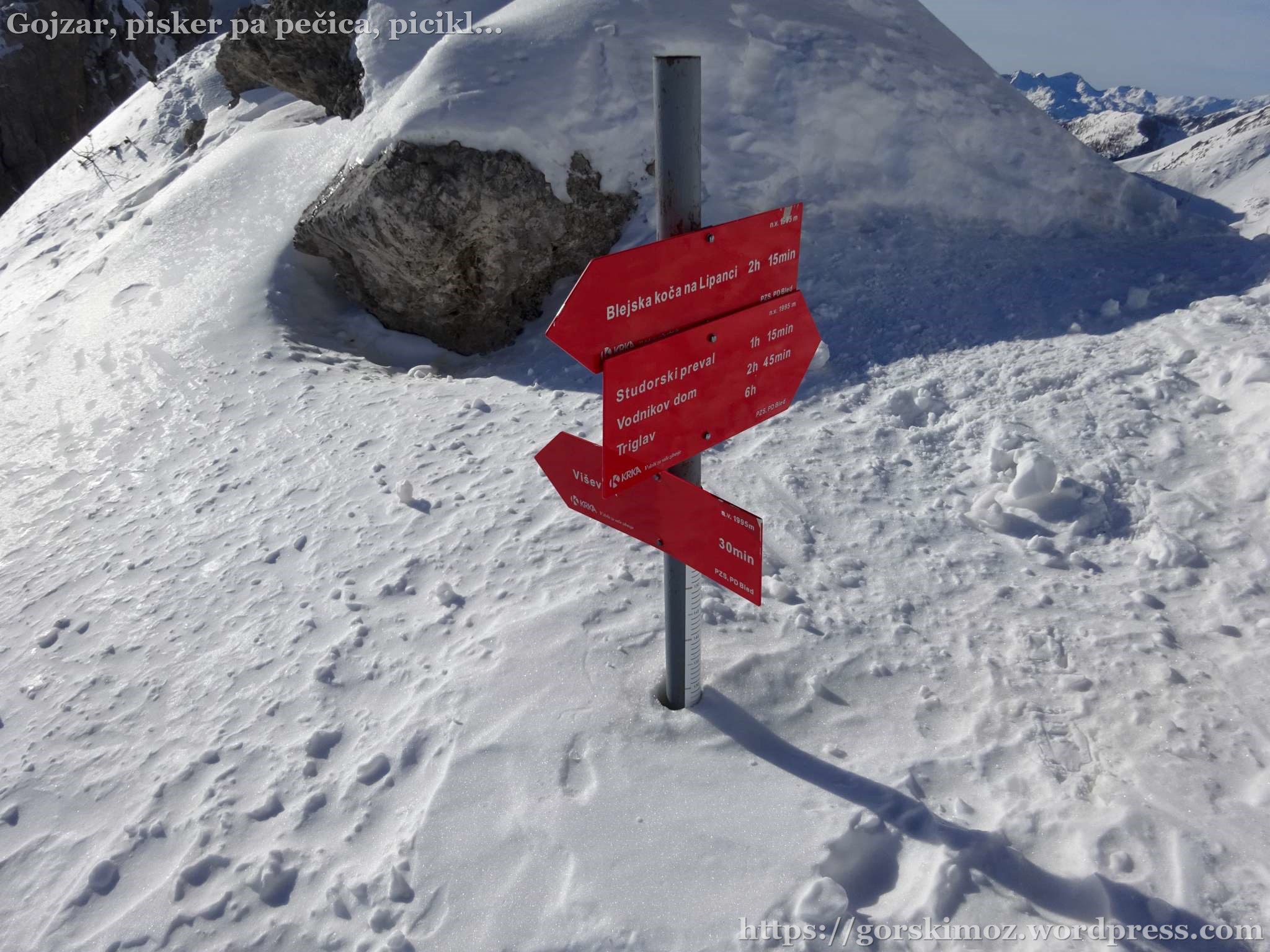 Smerokaz na Srenjskem prevalu je skoraj pod snegom.