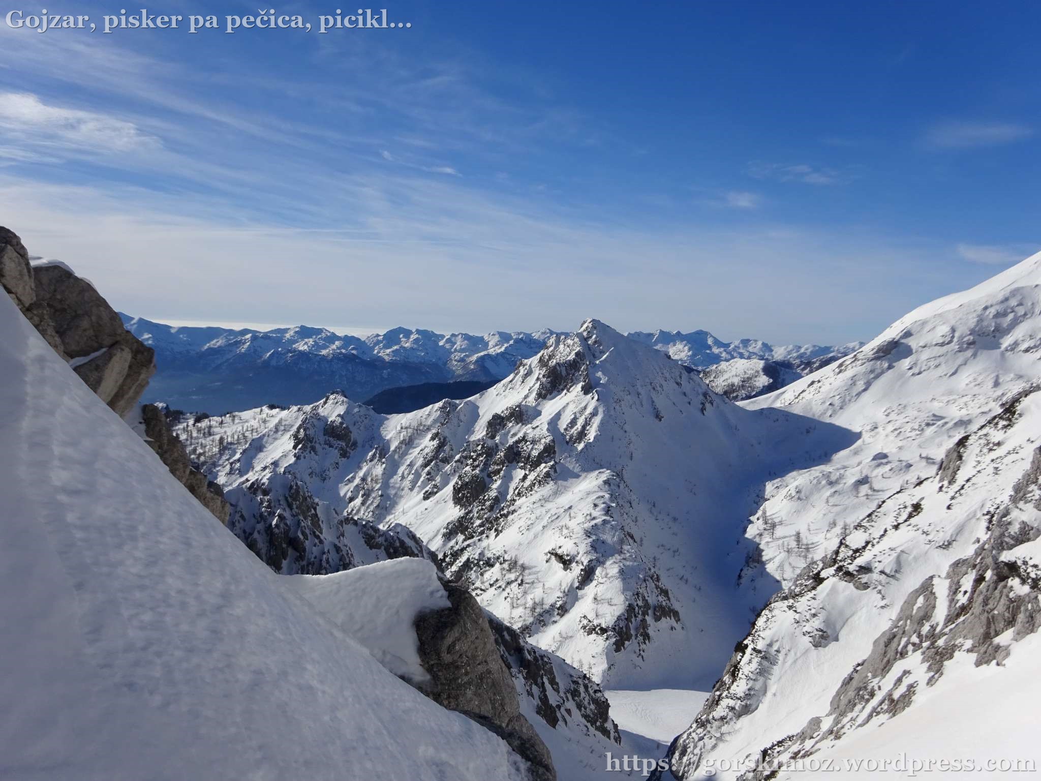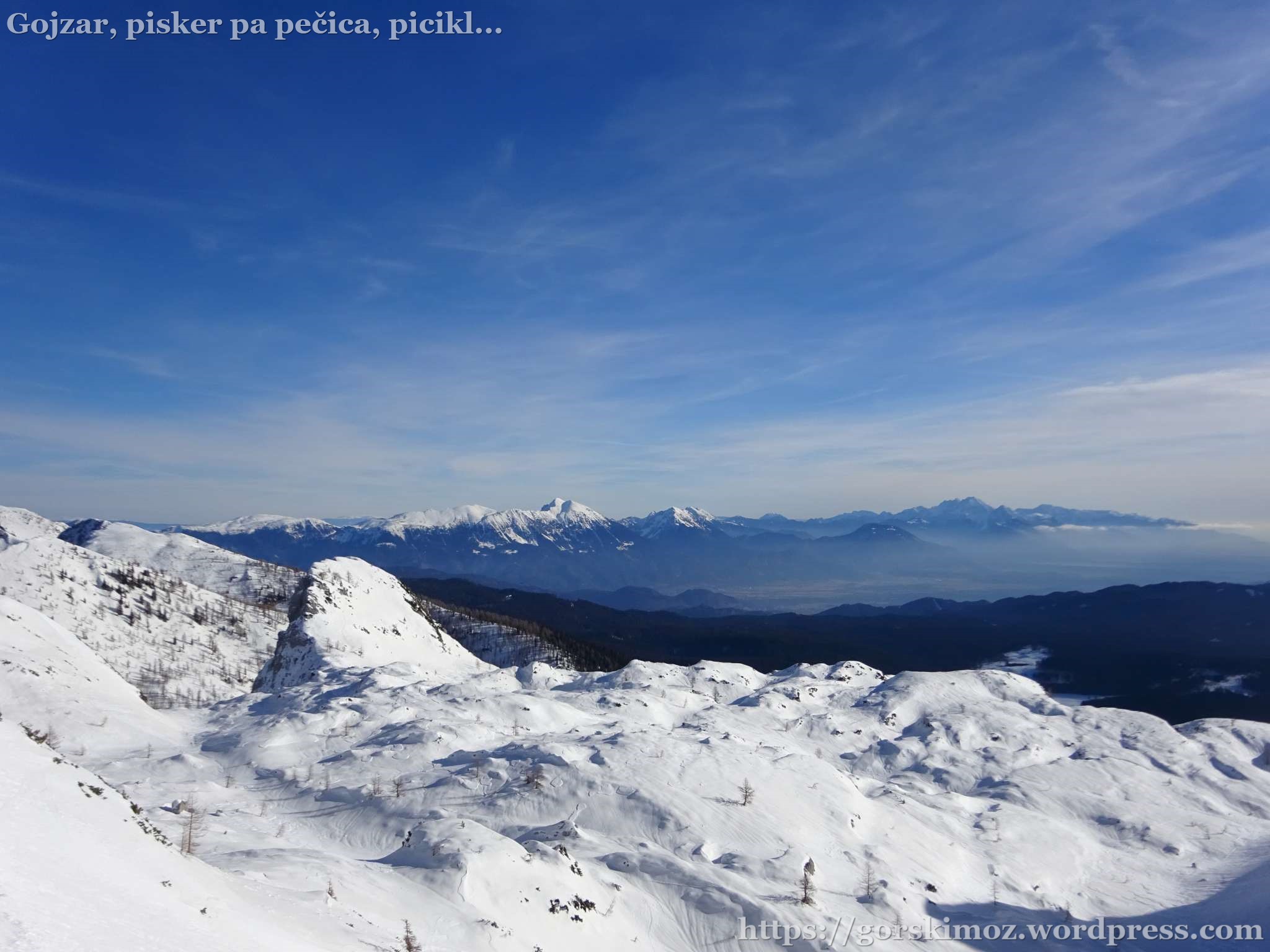 Pogled proti Studorskemu prevalu. Sam zavijem desno proti Srenjskemu prevalu.