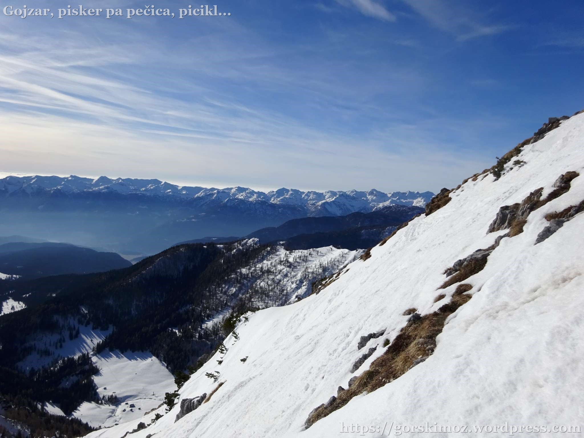Pogled s strmega pobočja pod vrhom Viševnika.