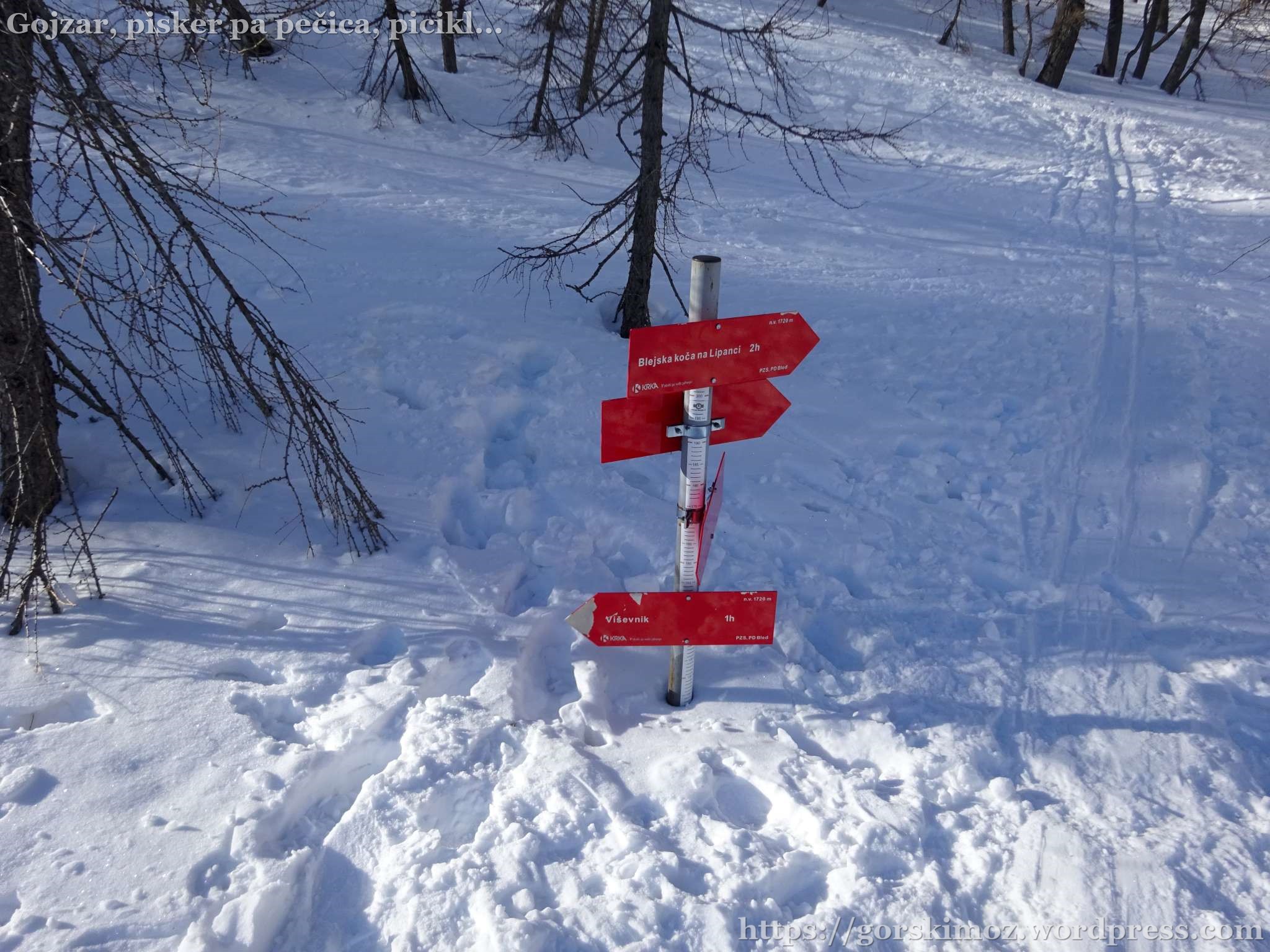 Odpravim se proti smučišču pod Viševnikom, a tokrat zavijem levo.