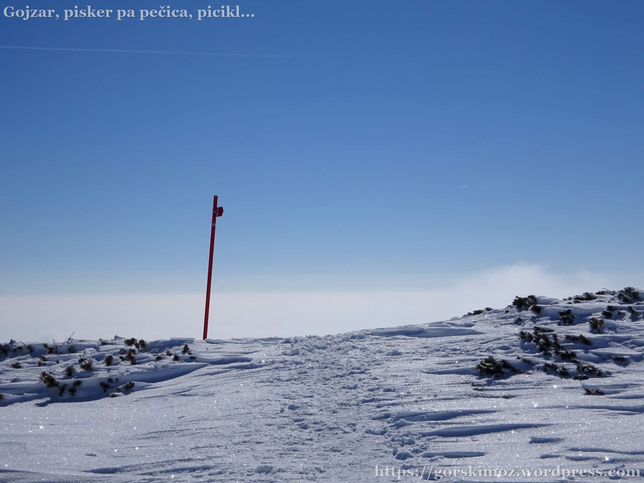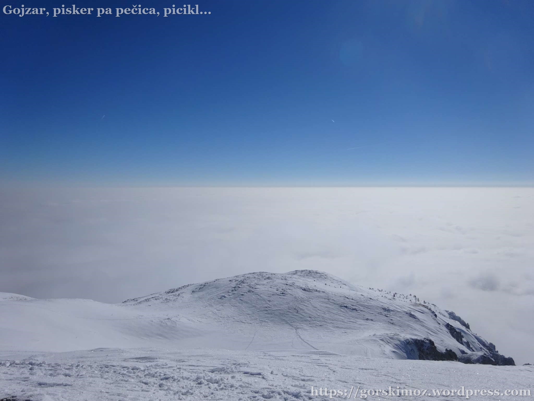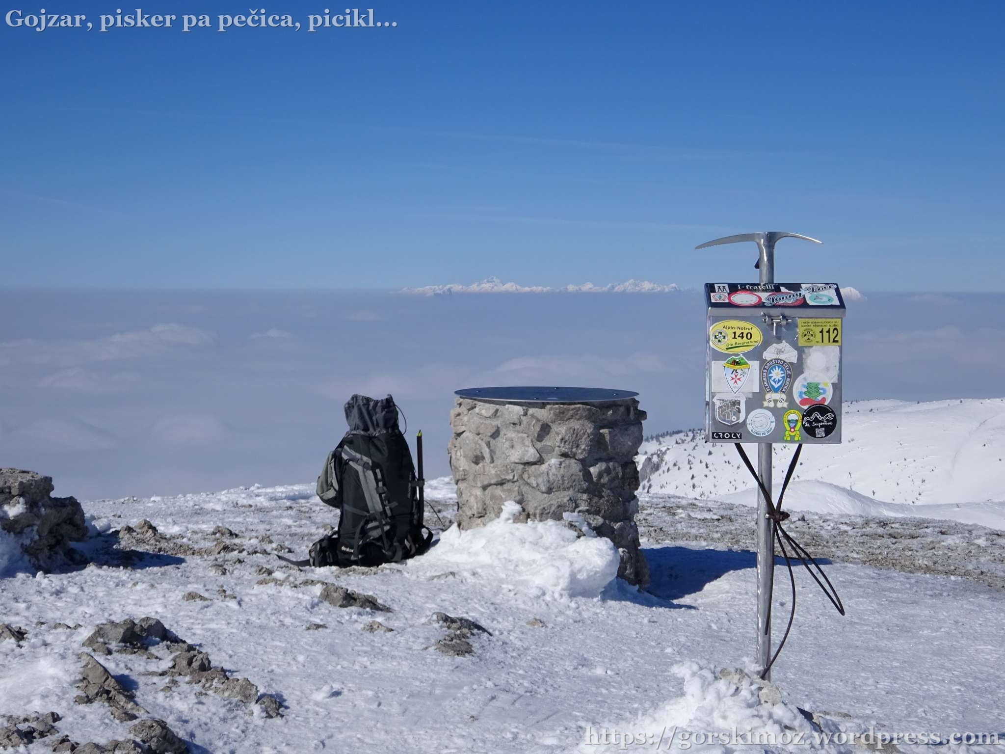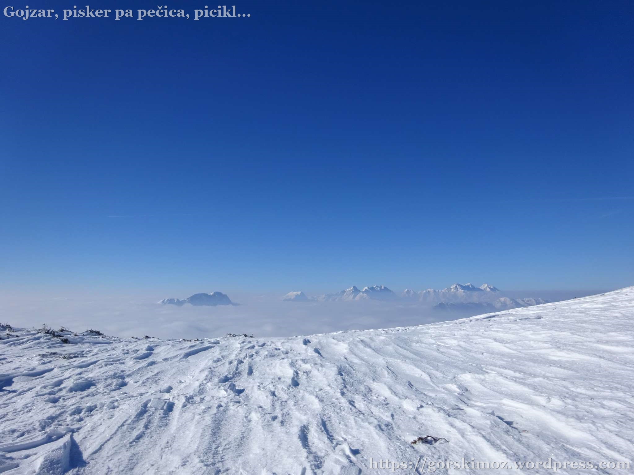 Na vrhu pa prava pomladanska idila. Brez vetra, jasno nebo in megla pod mano.