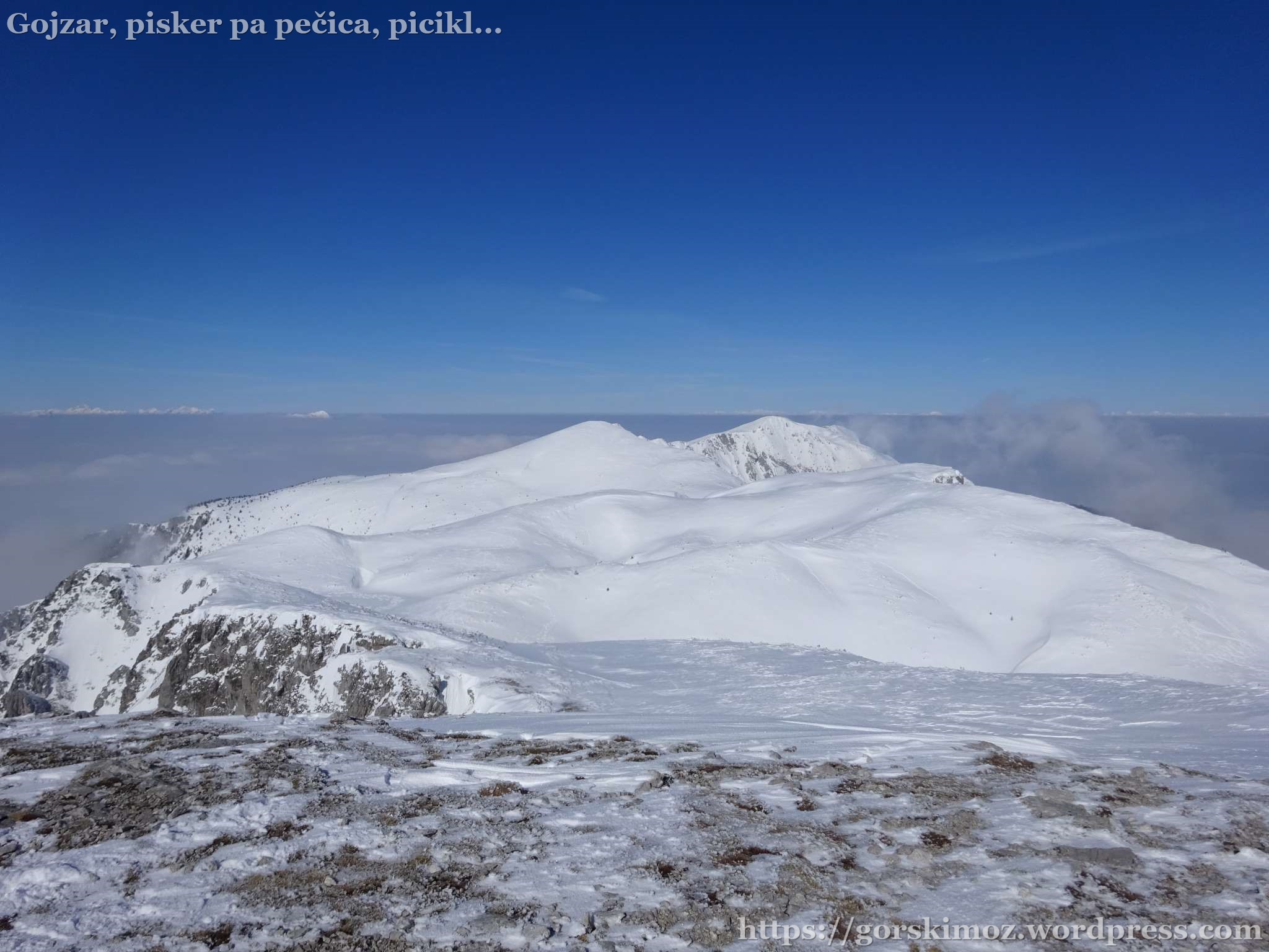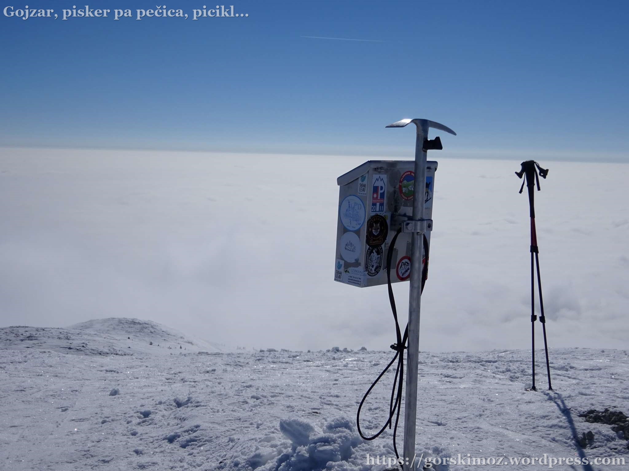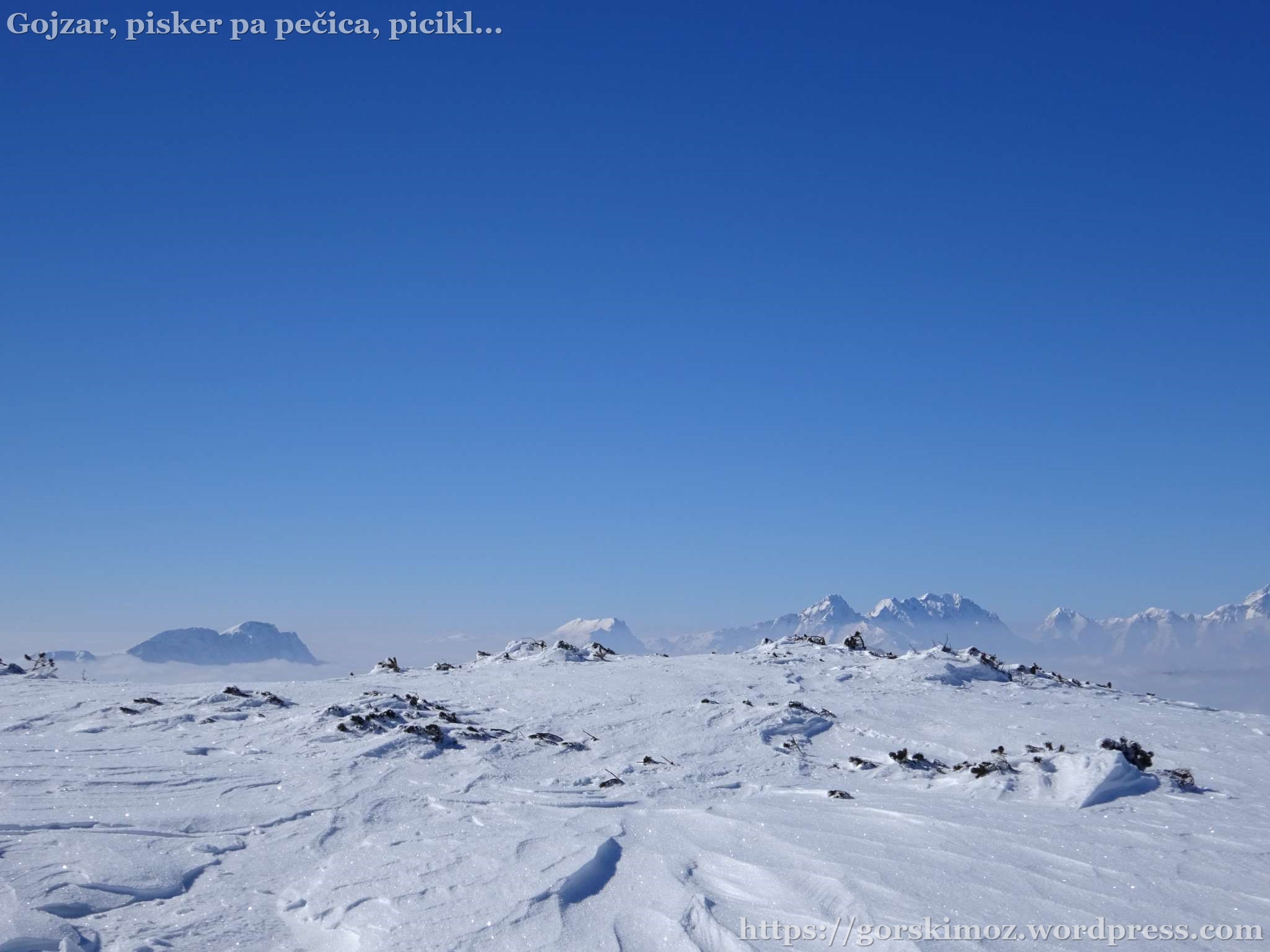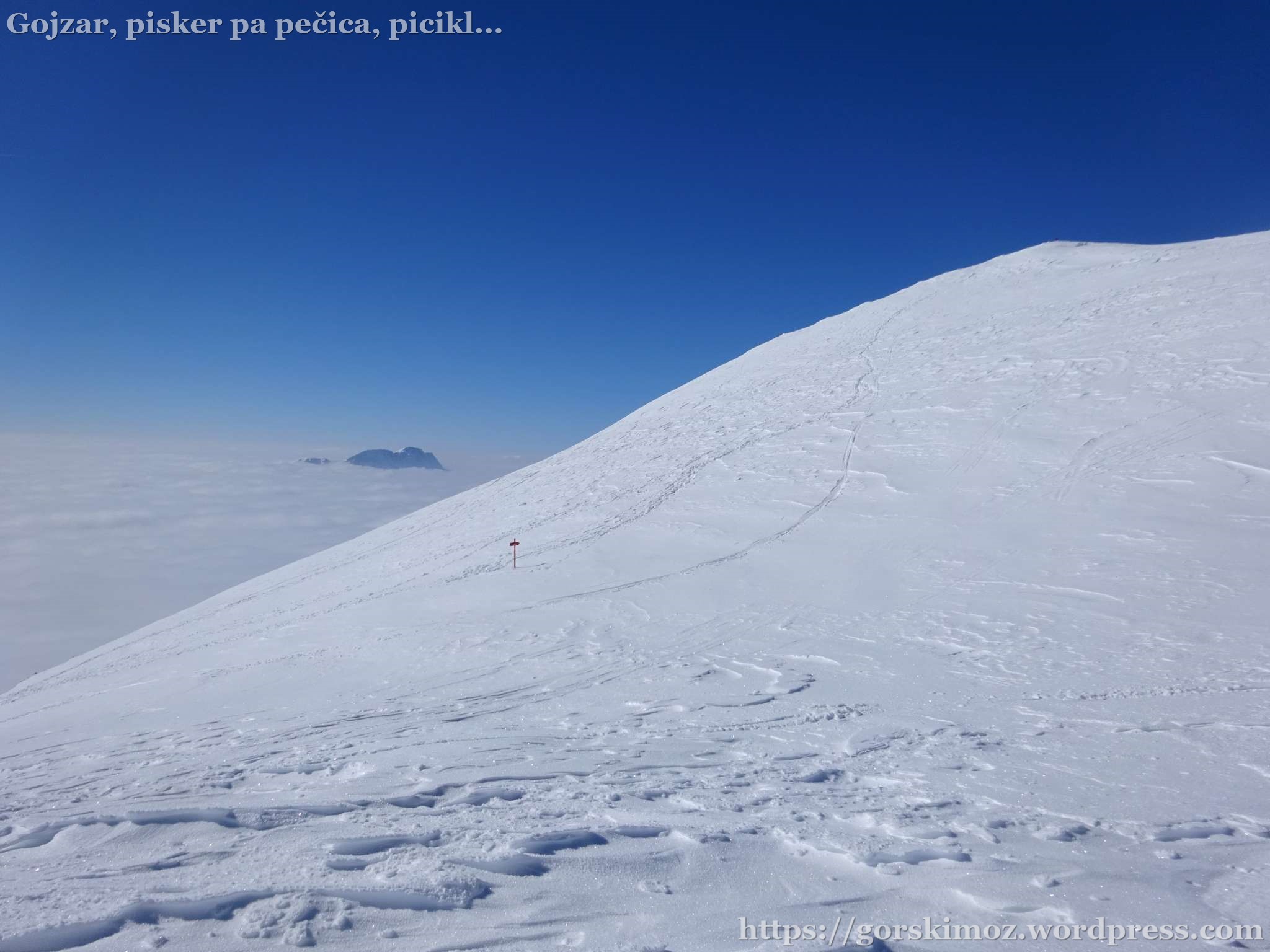 Na vrhu pa prava pomladanska idila. Brez vetra, jasno nebo in megla pod mano.