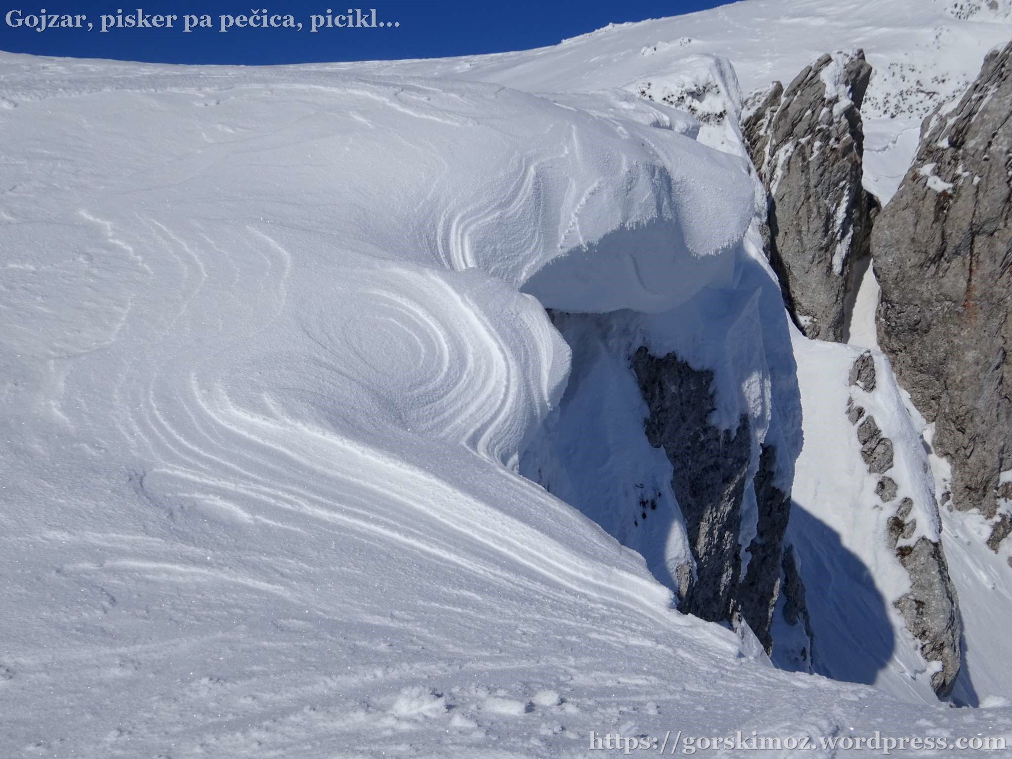 Igra vetra na snegu malo pod vrhom.