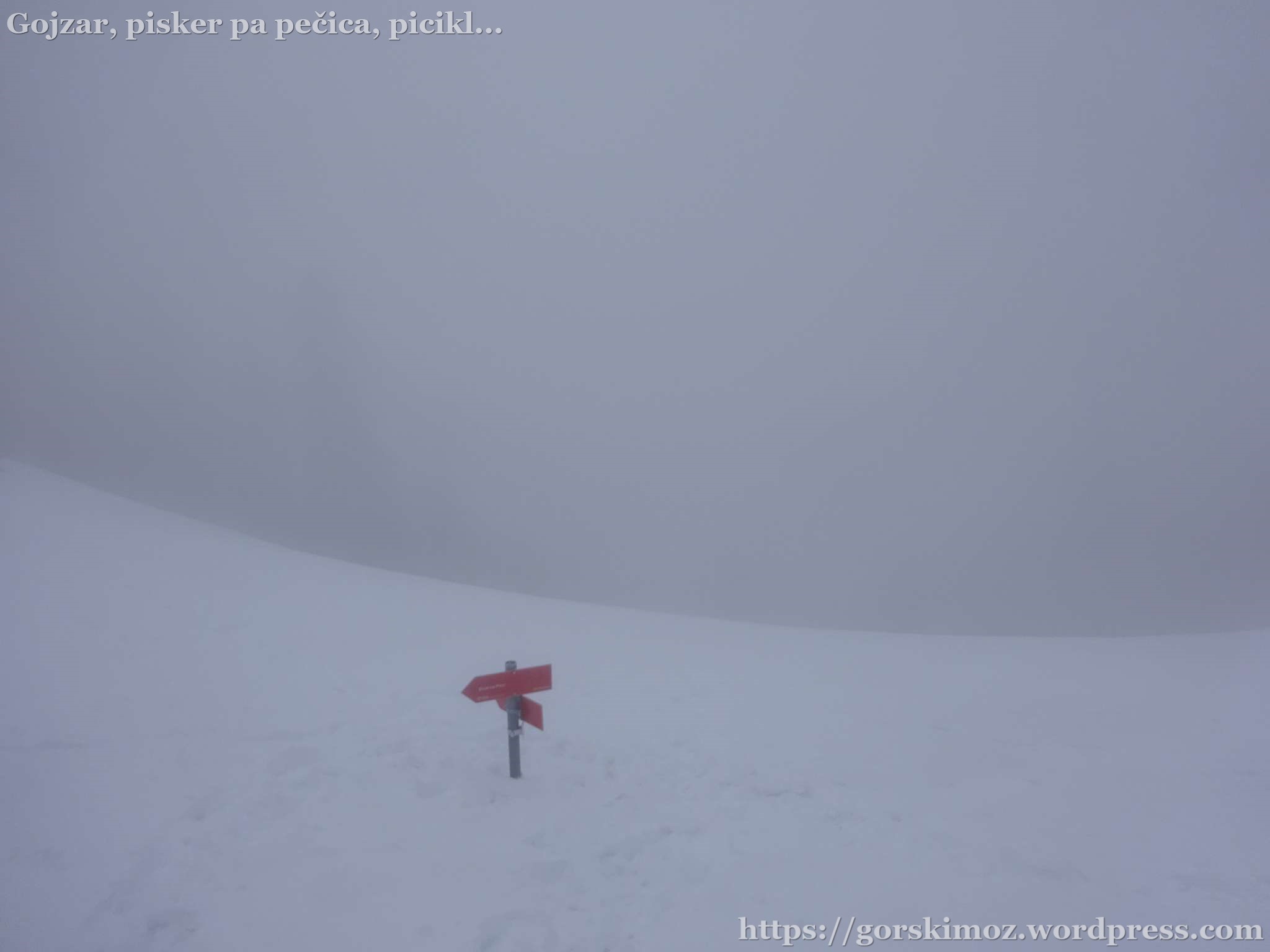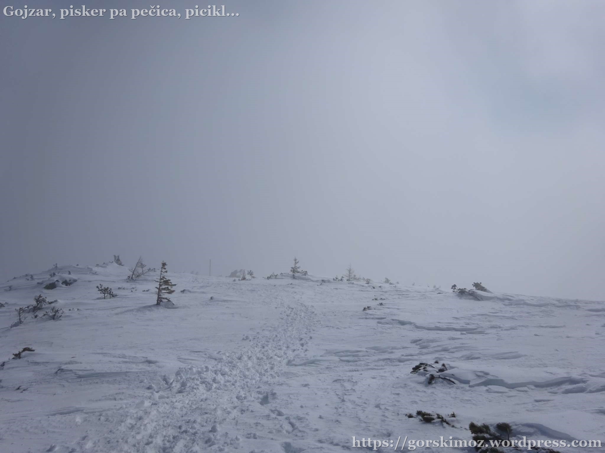 Sedlo pod Malo Peco, ki običajno navduši s krasnimi razgledi, je bilo zavito v gosto meglo.
