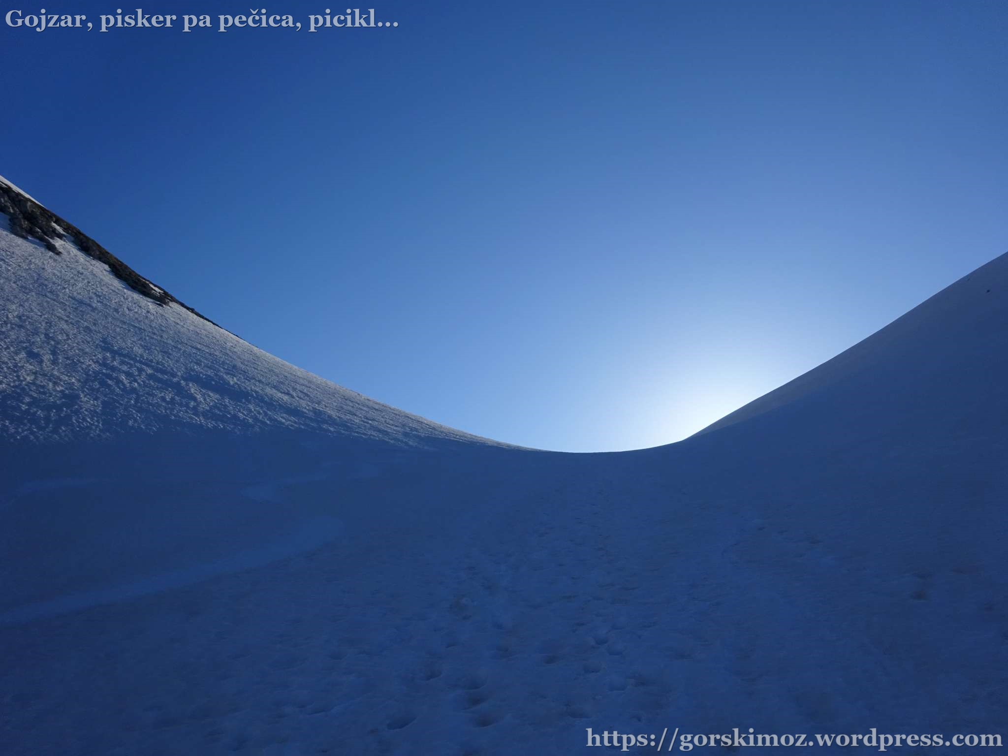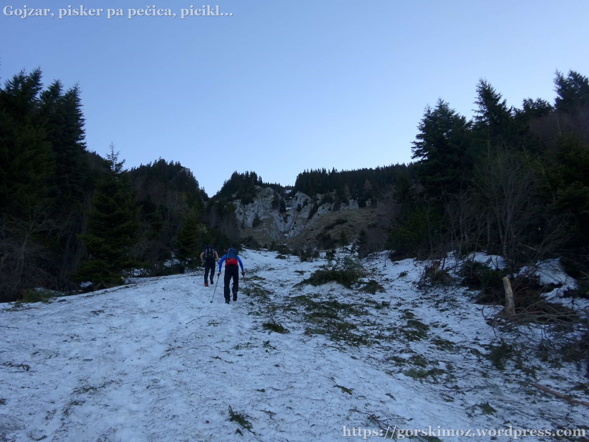 Po trdi in na mestih tudi poledeneli podlagi se hitro vzpenjam…