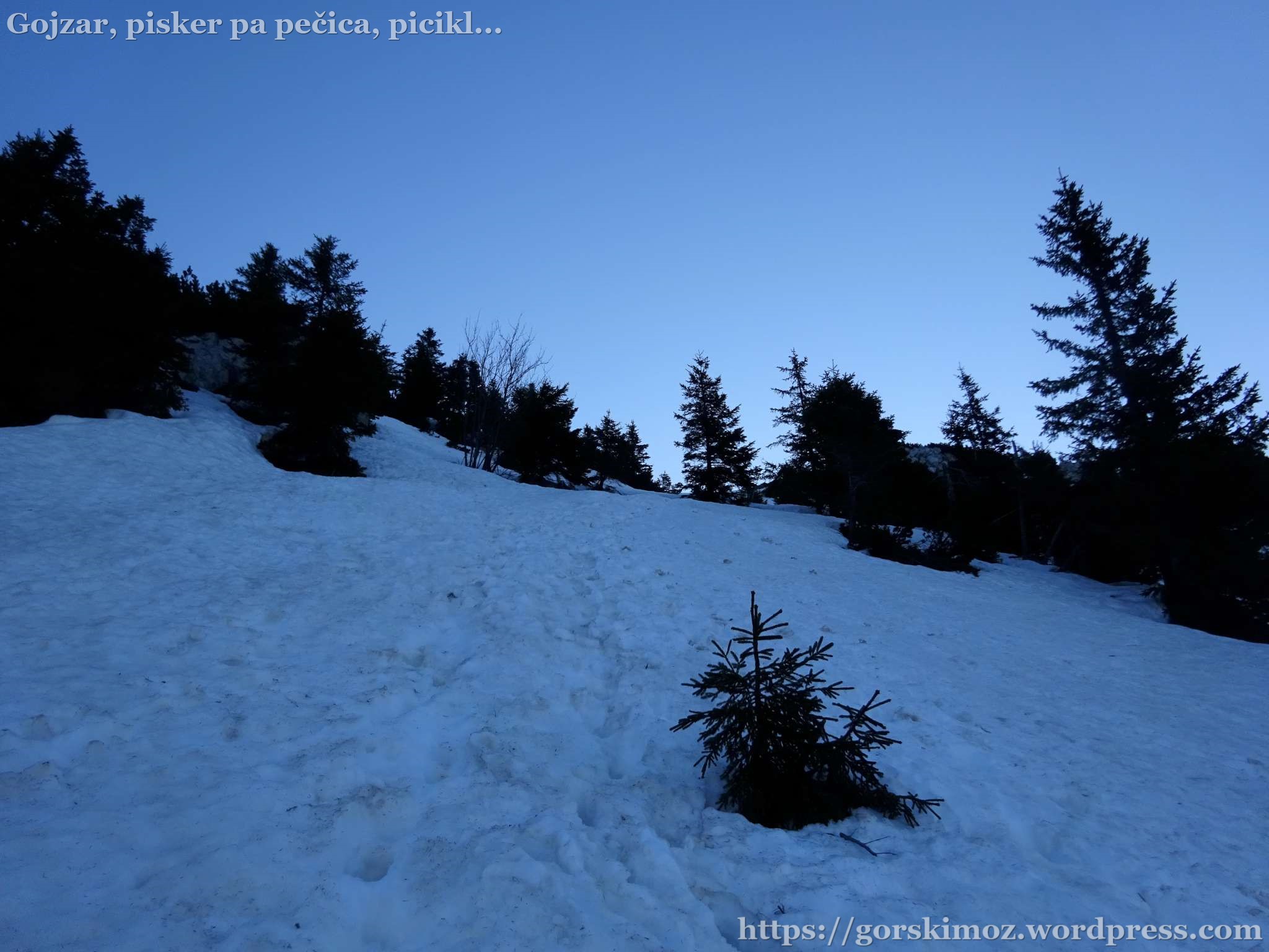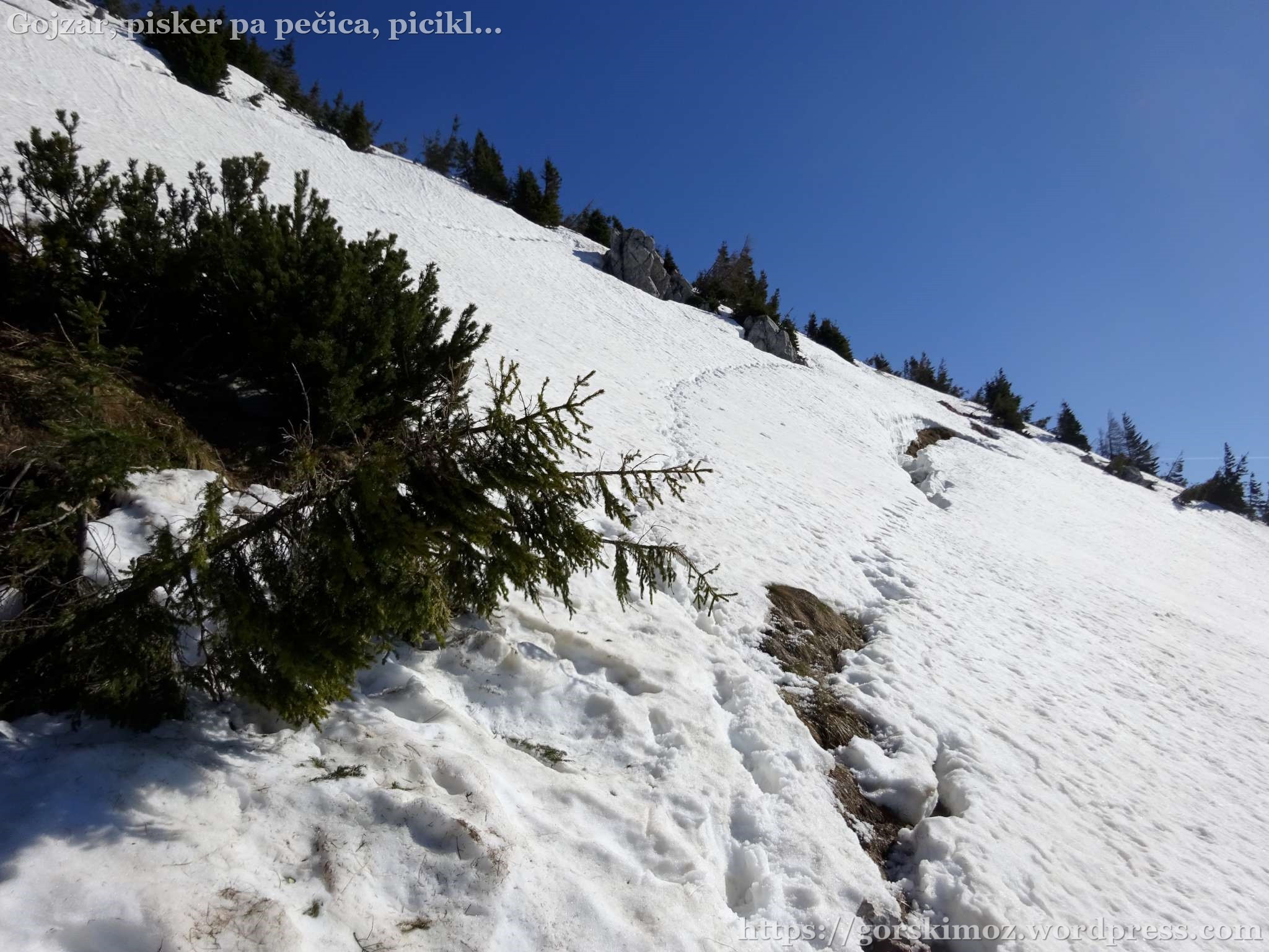 …zavijem skozi rušje do snežišča, po katerem se spustim.