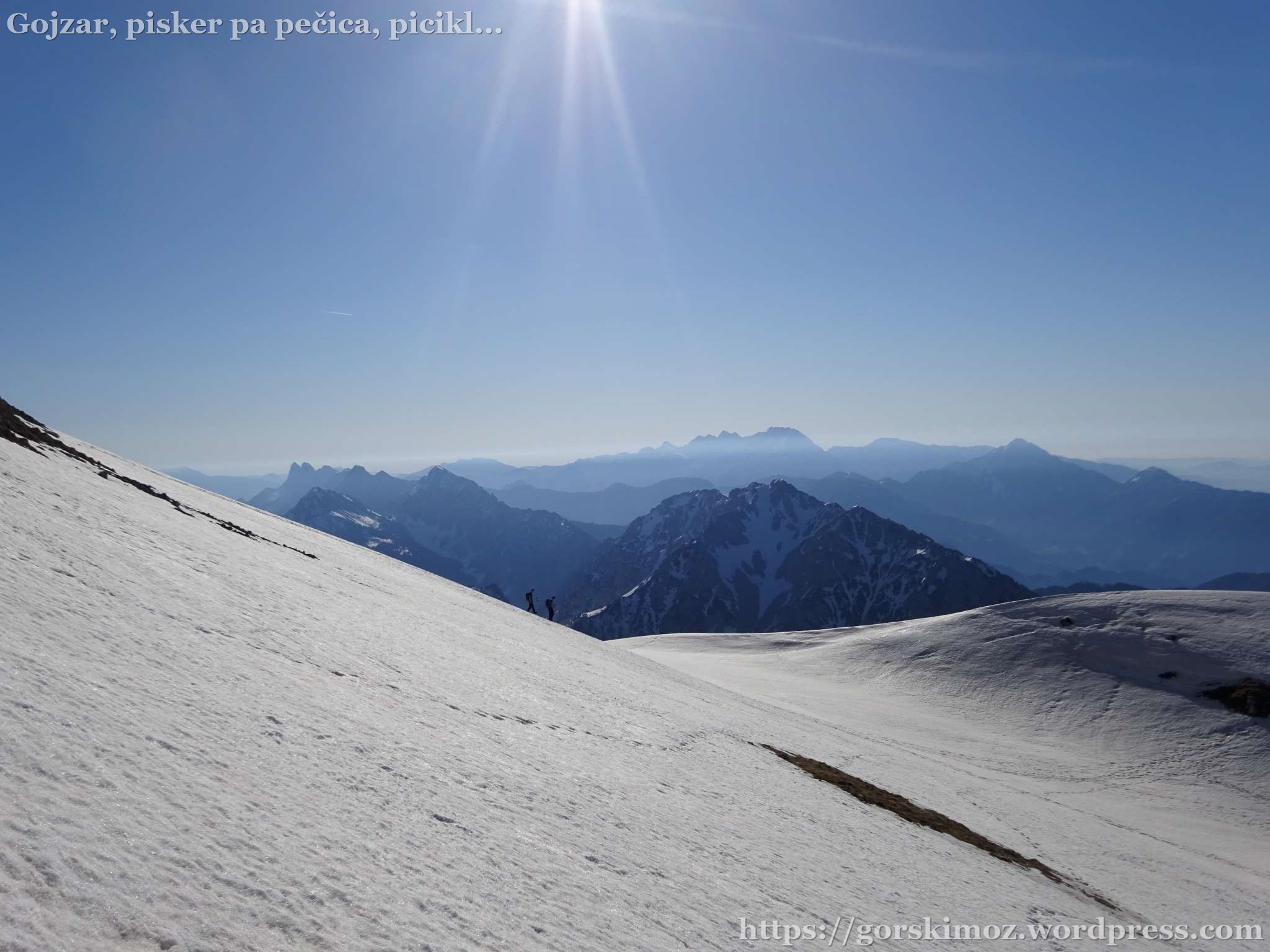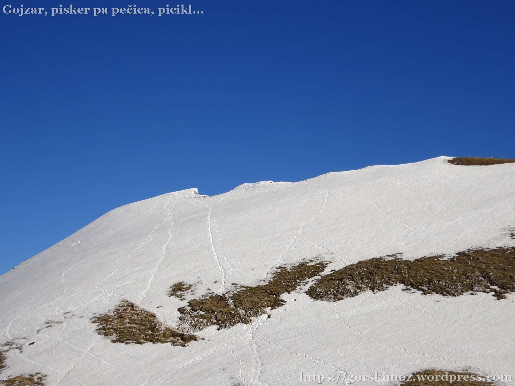 Krasen zimski pohod v lepem vremenu in (pre)visokih temperaturah.