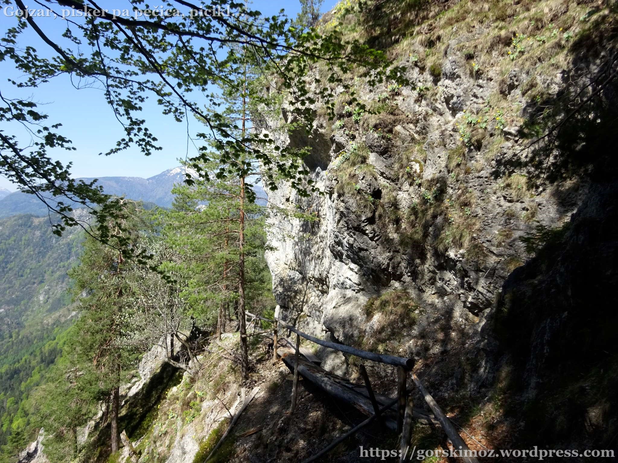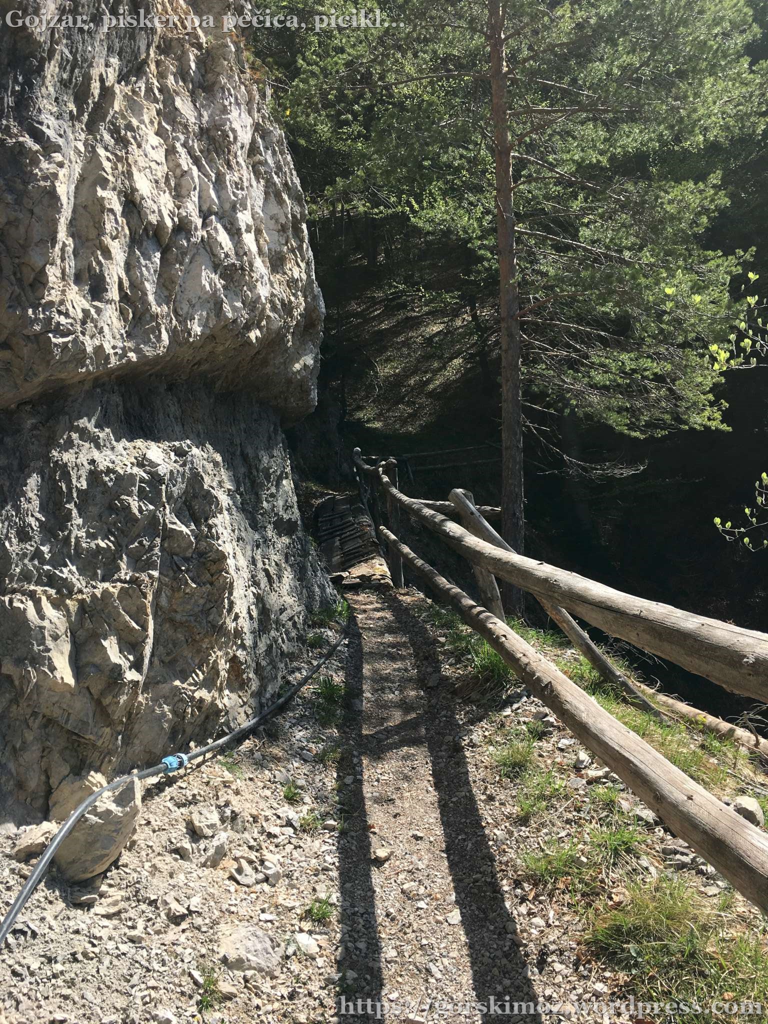 Čez kamniti most vodi pot zavarovana z jeklenicami.