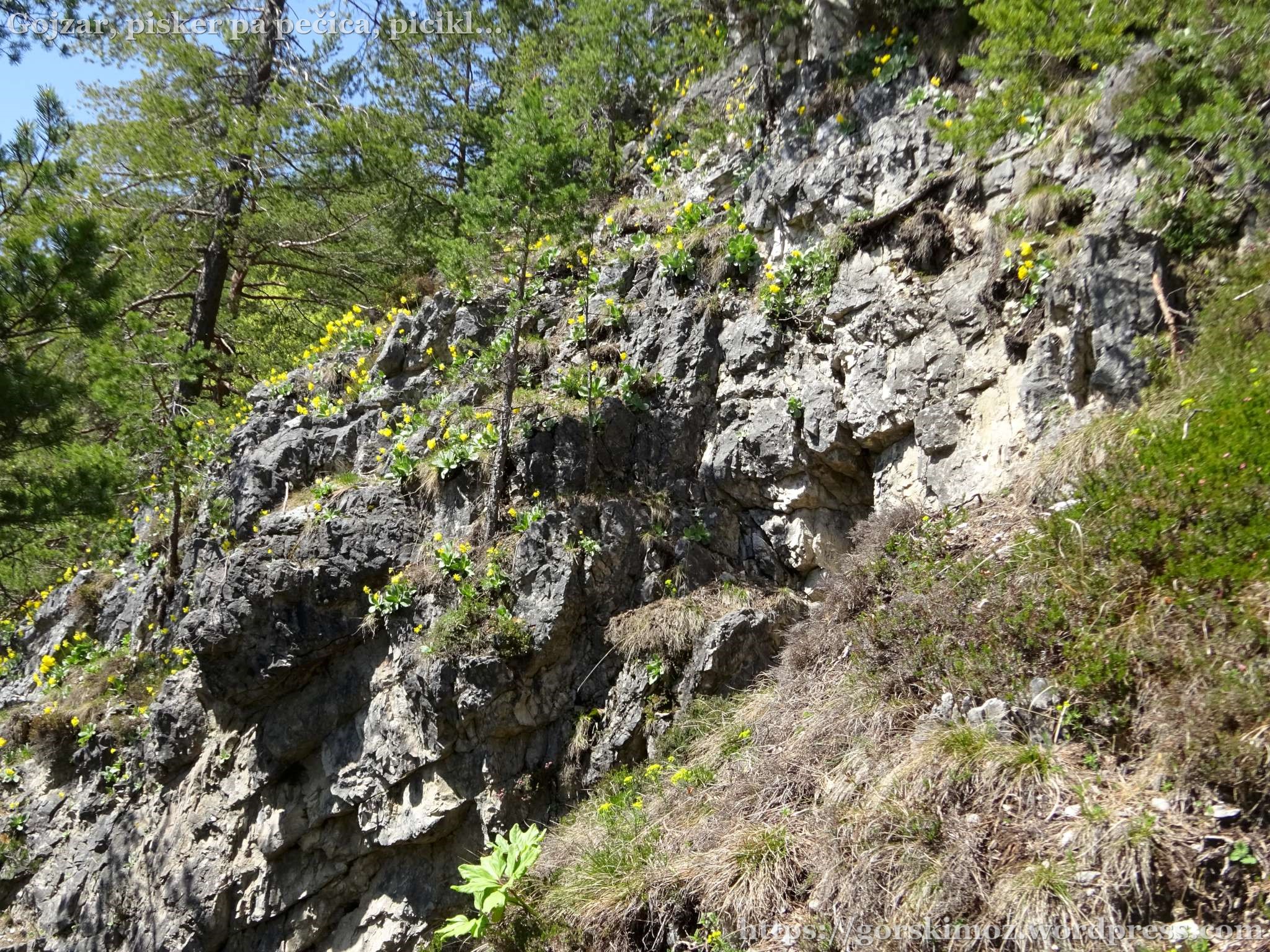 …na skalo polno avriklja. Do lovske koče Dukles ni več daleč, pot pa nadaljujeva proti Žerjavu, kjer je na skalah še več…