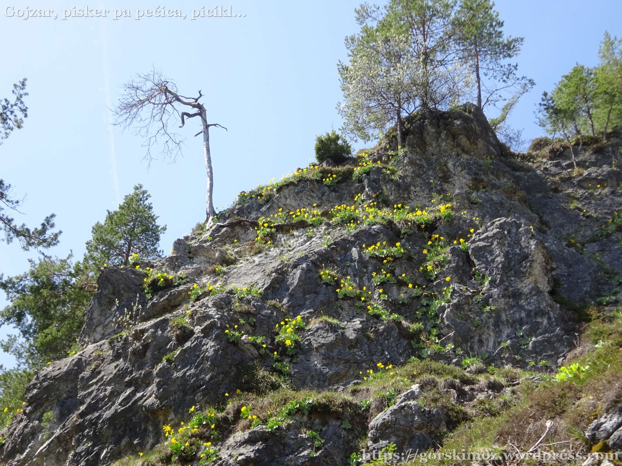 Konec aprila se Pogorevc med Žerjavom, Mežico in Lešami odene v rumeno barvo. Avriklja polne skale vsako leto privabijo mnoge pohodnike. Lansko leto sem na ta prekrasen kraj peljal planince našega PD, letos pa sem v dobri družbi prehodil pot od kmetije Krajnc do lovske koče Dukles in nazaj. Prelep dan sva zaključila še z obiskom Volinjaka in ogledom njegove znamenitosti – kamnitega mostu.