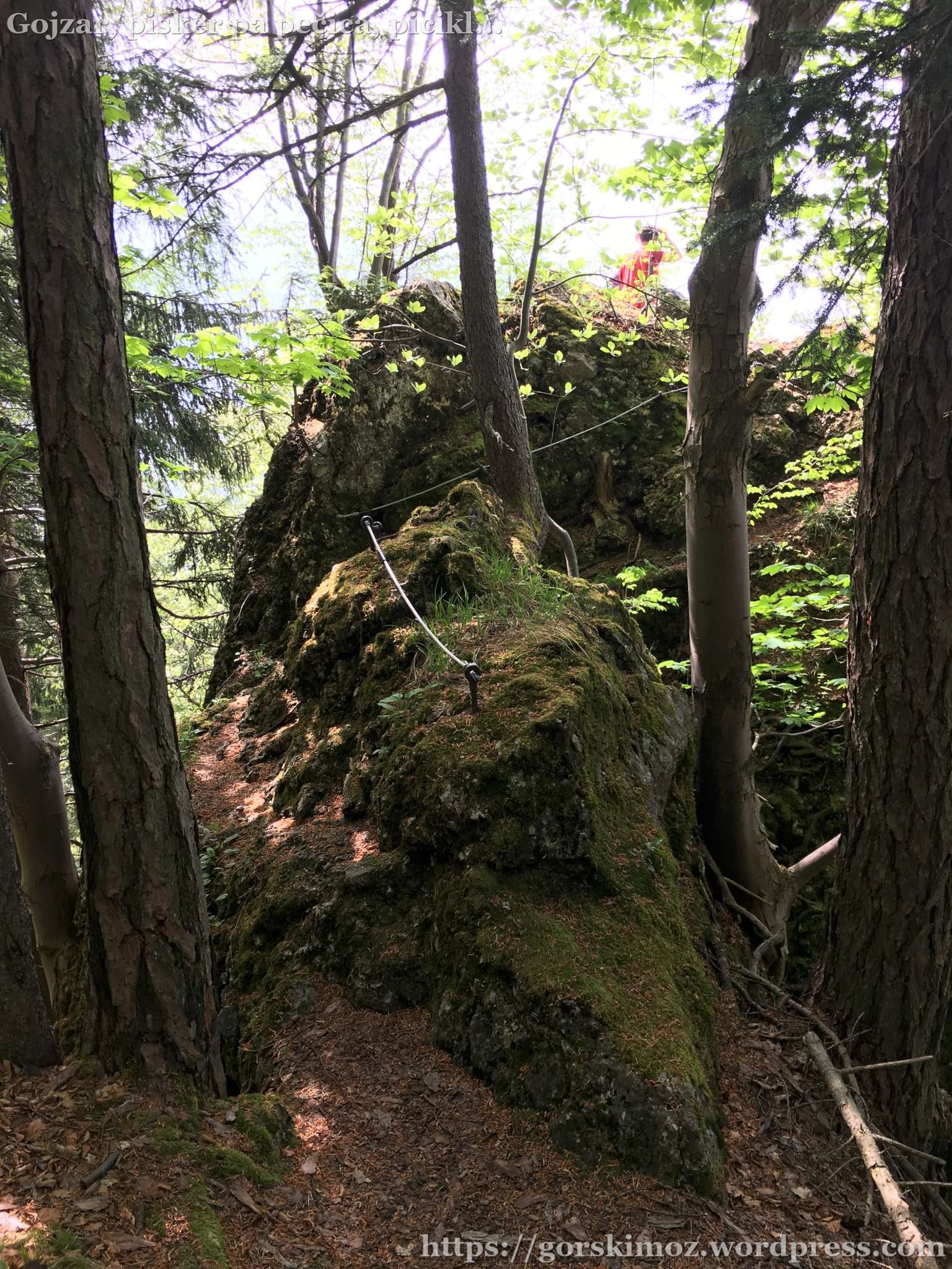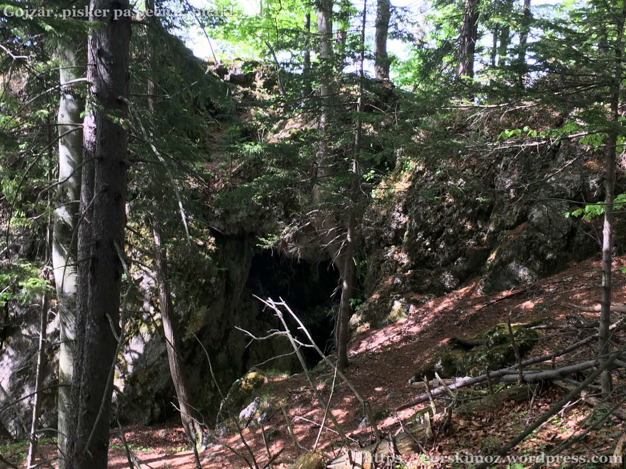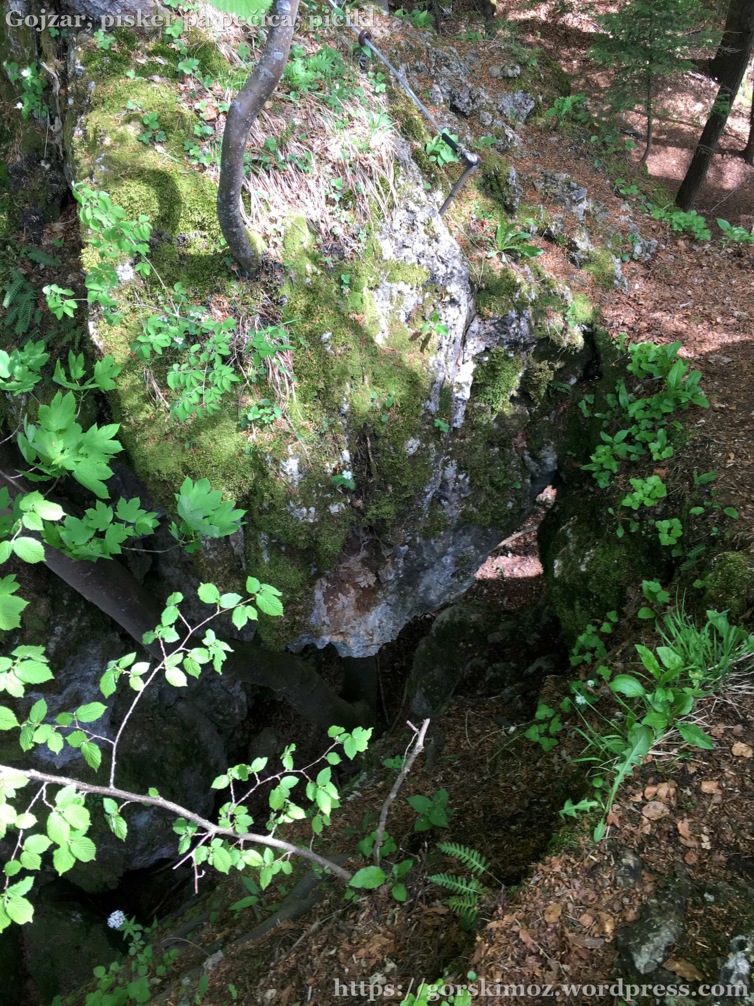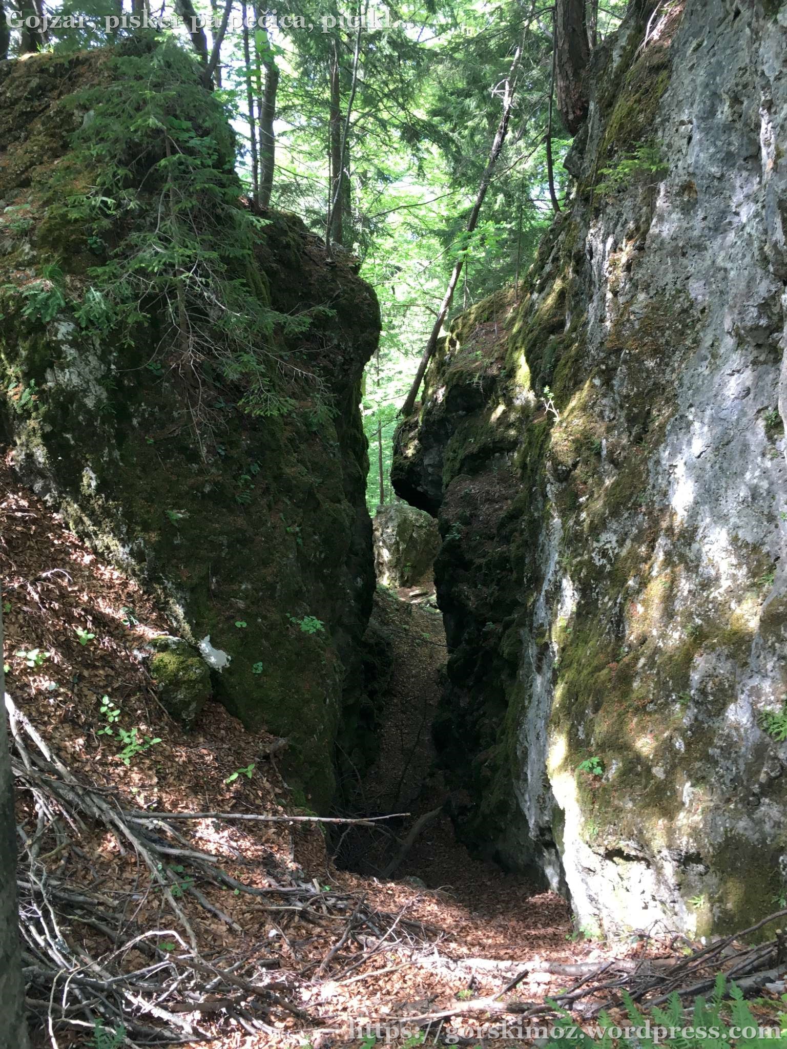 Vrneva se do lovske koče in se skustiva po poti proti Jazbini, da si ogledava še več skal…