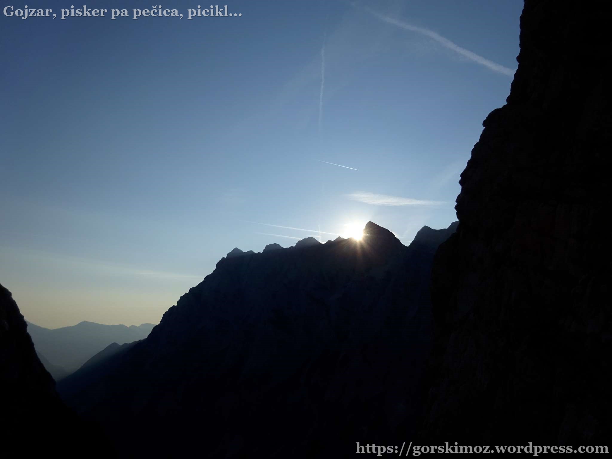 Sonce izza Begunjskega vrha nas je obsijalo malo pod Luknjo.