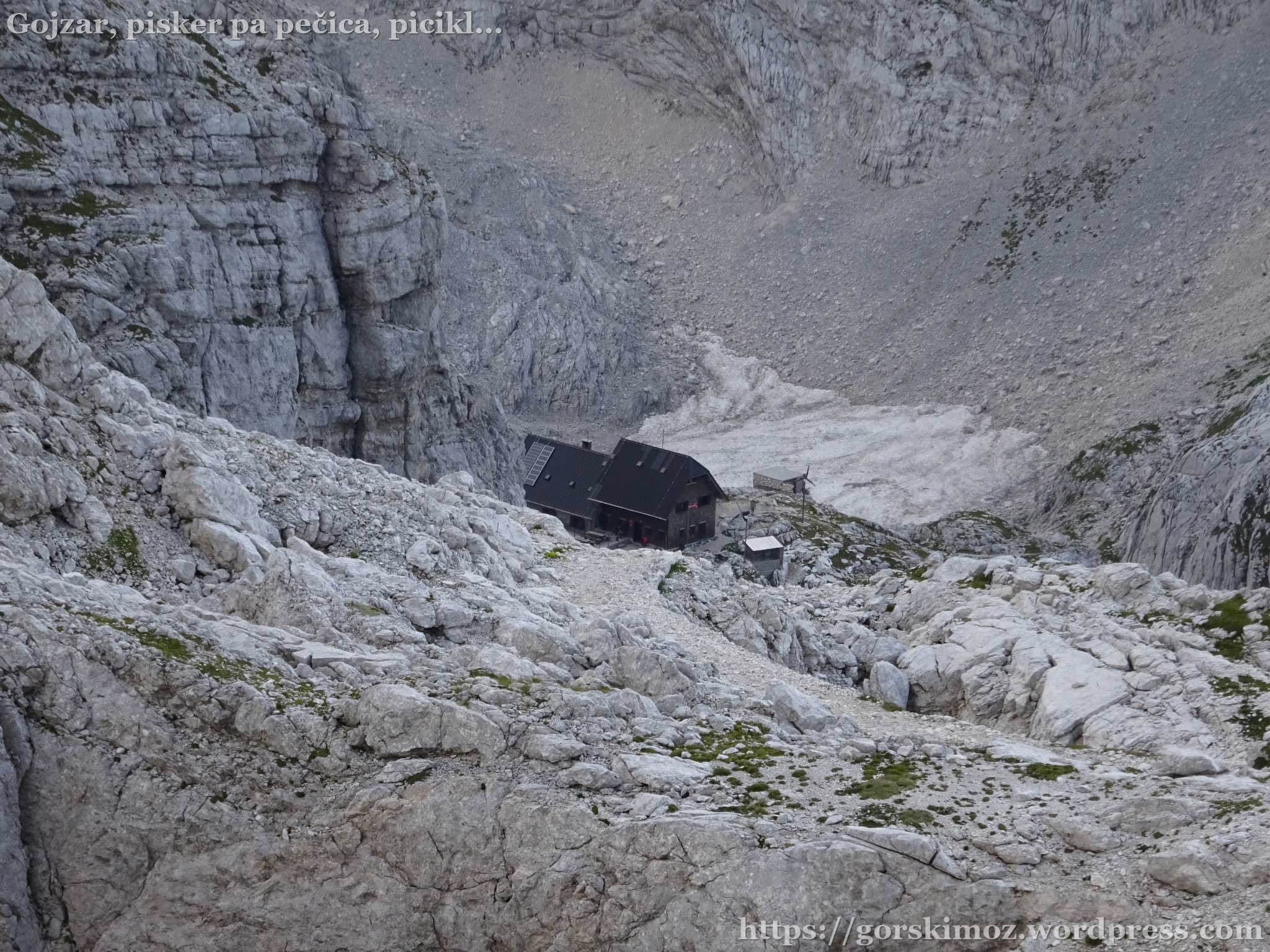 …Luknje, od koder se spustimo proti Aljaževemu domu in avtomobilom.