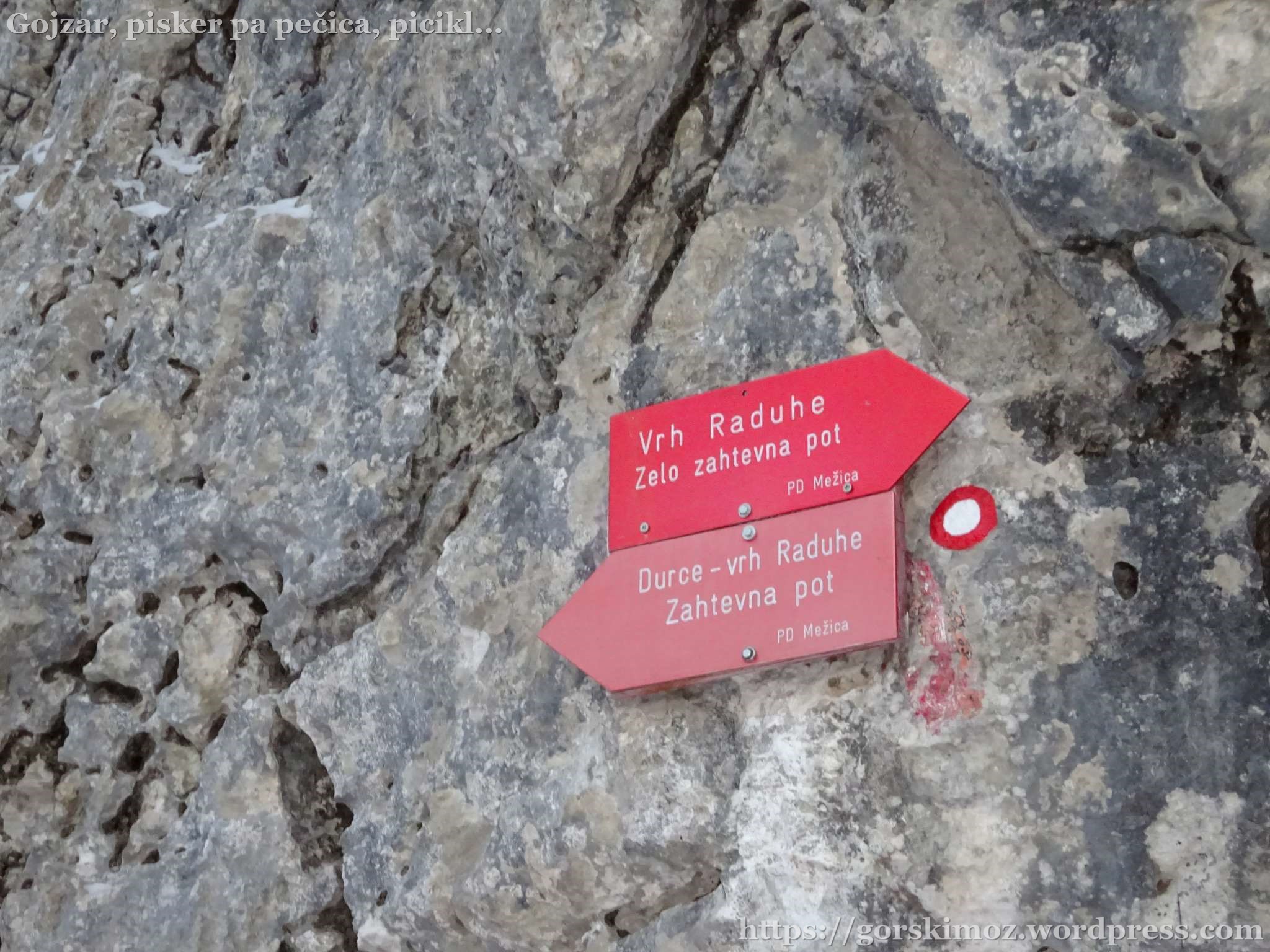 Kmalu sva bila na razpotju poti. Izbrala sva pot čez Durce, saj je zavarovana pot v zimskih razmerah izjemno nevarna.