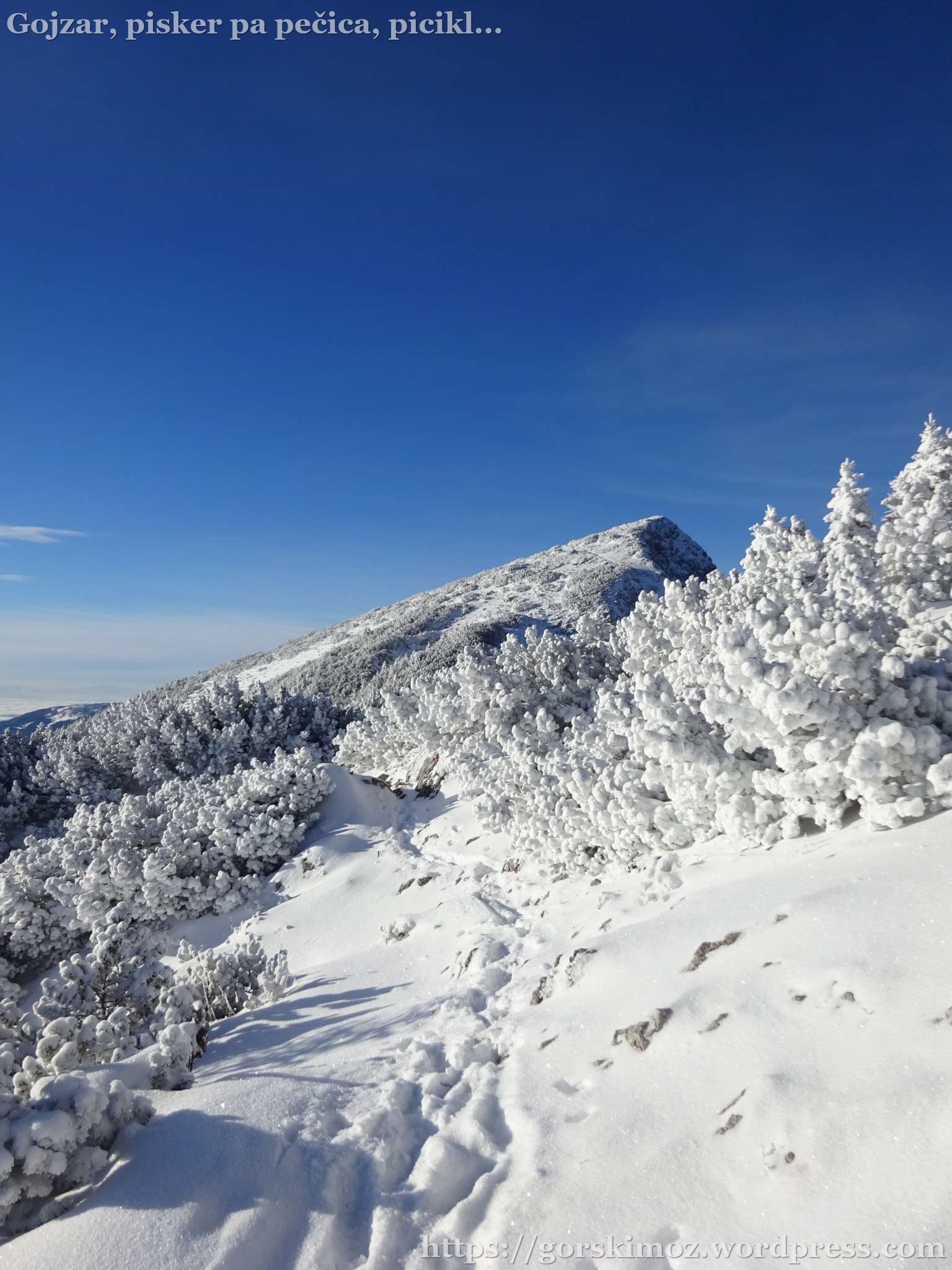 Za pohod sva izbrala res krasen dan in se naužila lepot zimske idile. Pot je bila naporna, saj jo je bilo treba zgaziti, vsi napori pa so bili poplačani s krasnimi razgledi in lepotami, ki jih zna pozimi narediti samo narava.