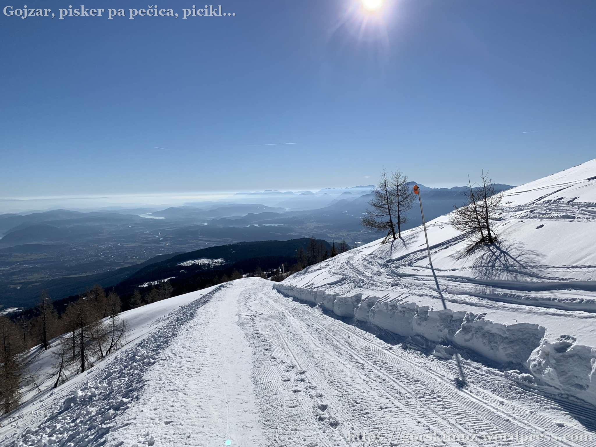 Sredi marca je v dolini že pomlad in naše misli so bolj pri urejanju vrta, obrezovanju drevja in kolesarjenju, kot pa pri zimskih aktivnostih po snegu in snežni idili. Pohod na Dobrač, ki ga je organiziralo naše planinsko društvo, je bil kot naročen za uživanje v zimski idili. Zgodaj zjutraj smo se odpravili na pot in se po avtocesti zapeljali do Beljaka, od tam pa po gorski cesti na naše izhodišče.