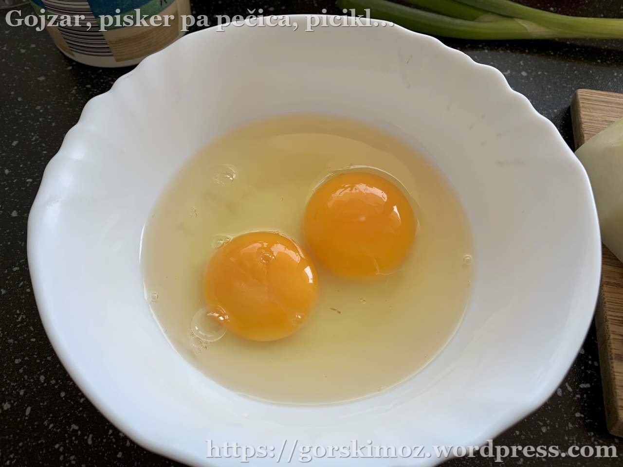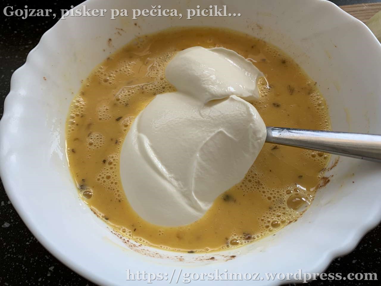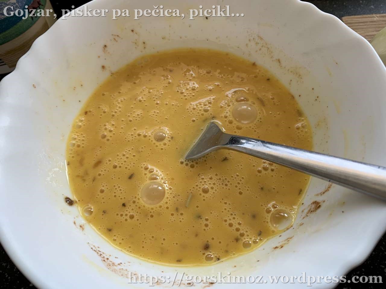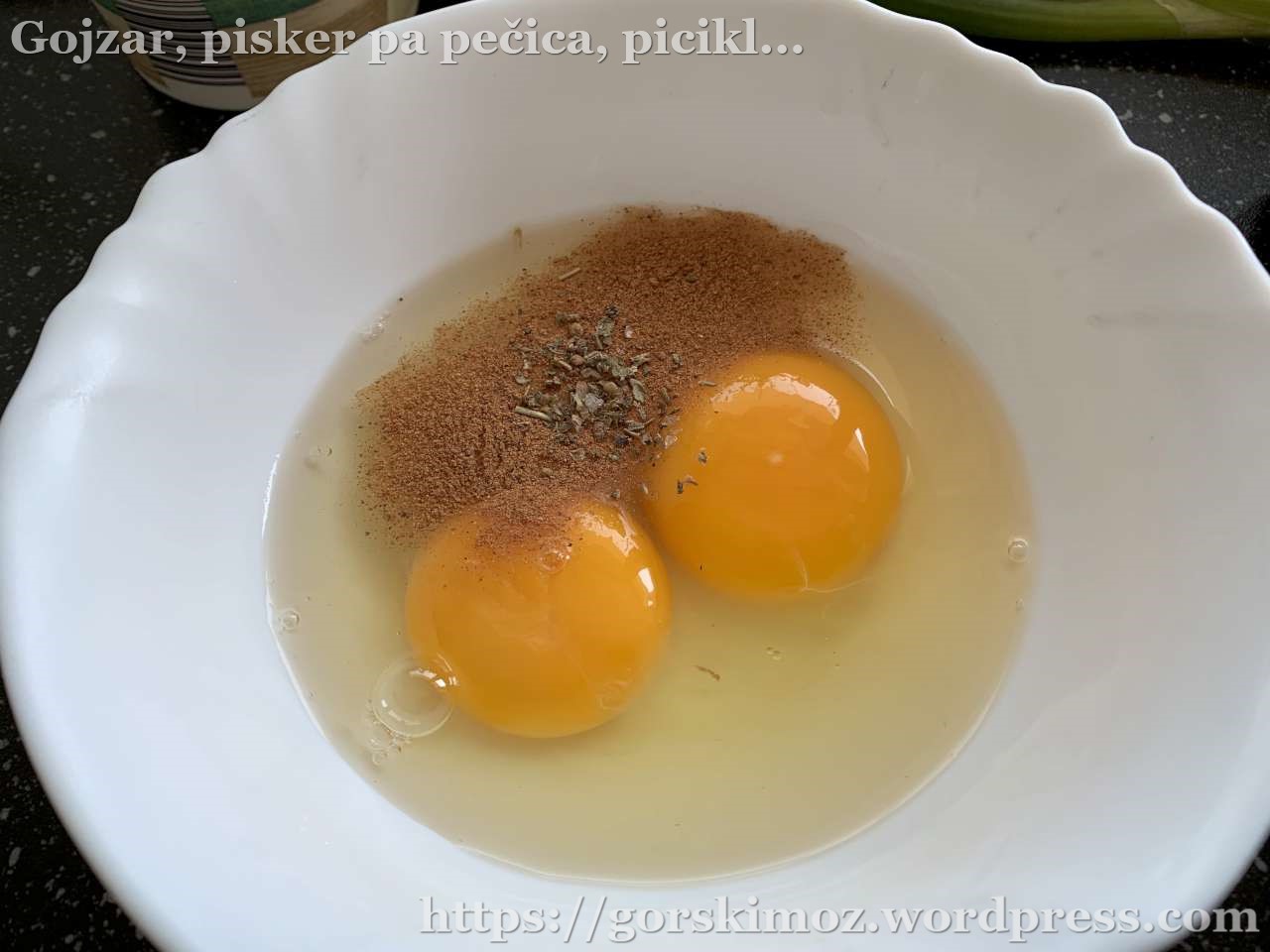 … ter vse skupaj prelijemo s preostankom jajčne mešanice. Po okusu lahko dodamo še malo naribanega sira.