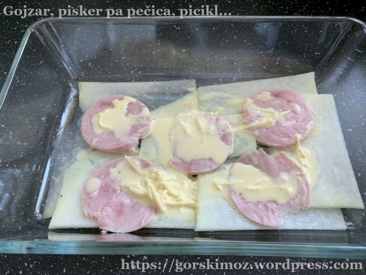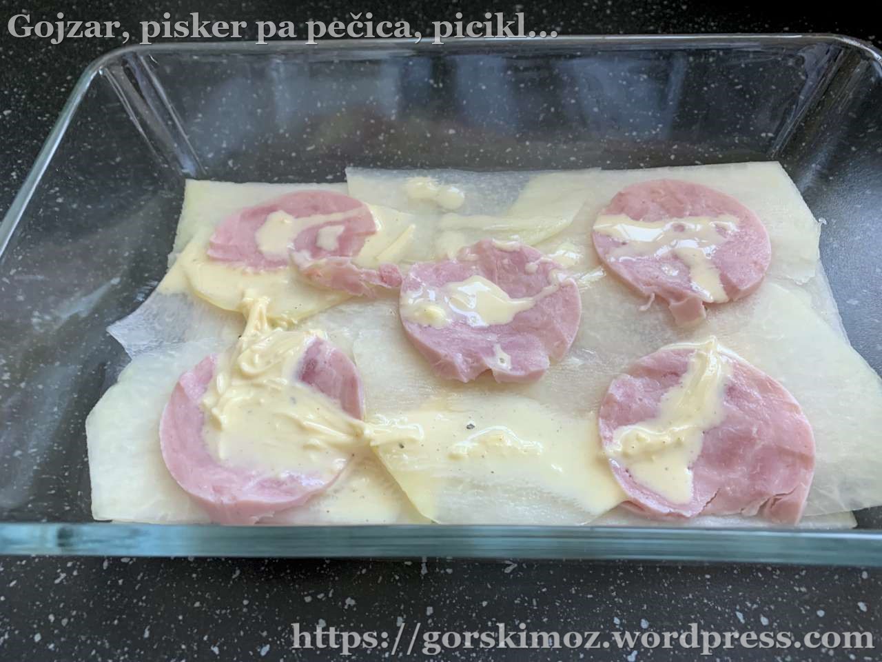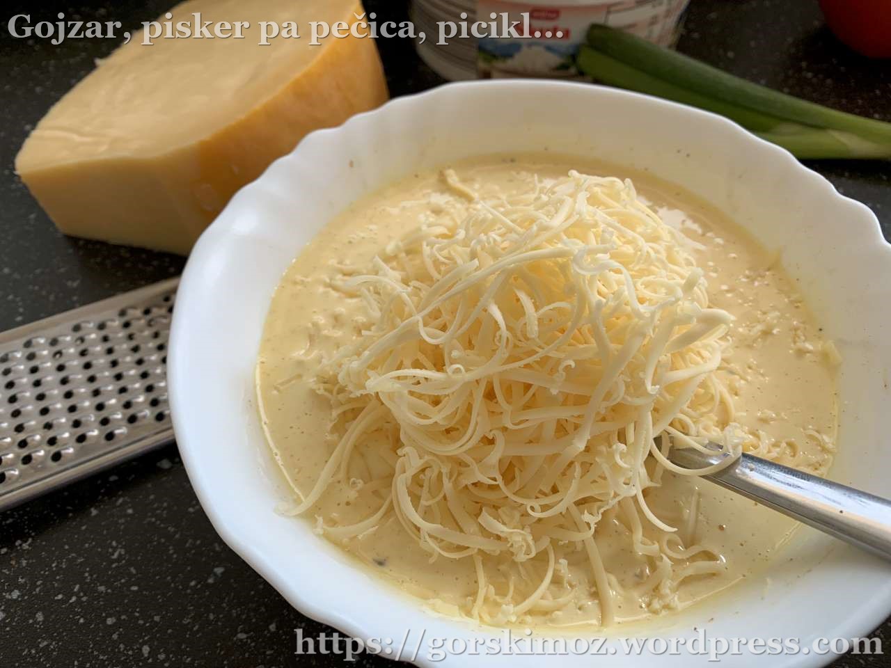 - cca 200g sira ki se lepo topi (gavda, edamec, trapist,…),