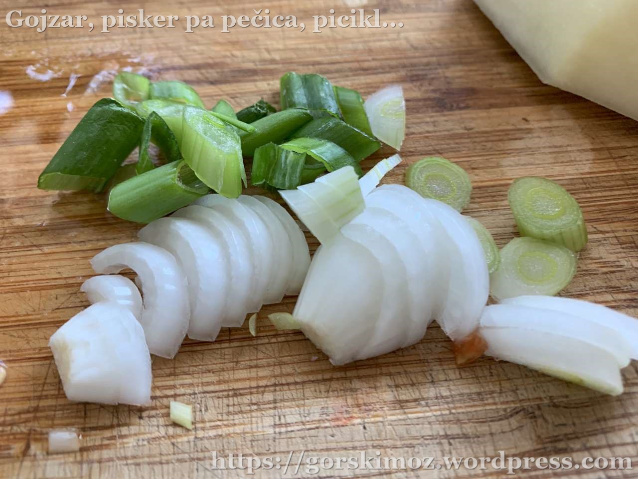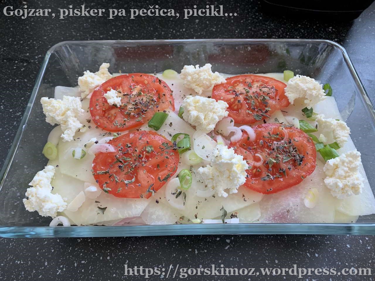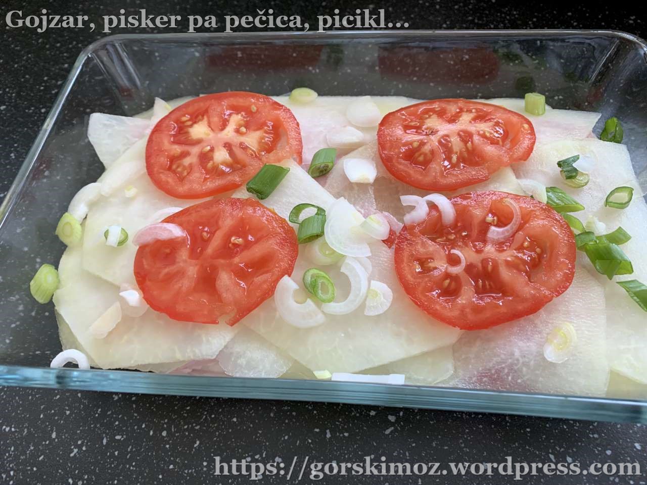 Na vrhu naj bosta mlada čebula in paradižnik.
