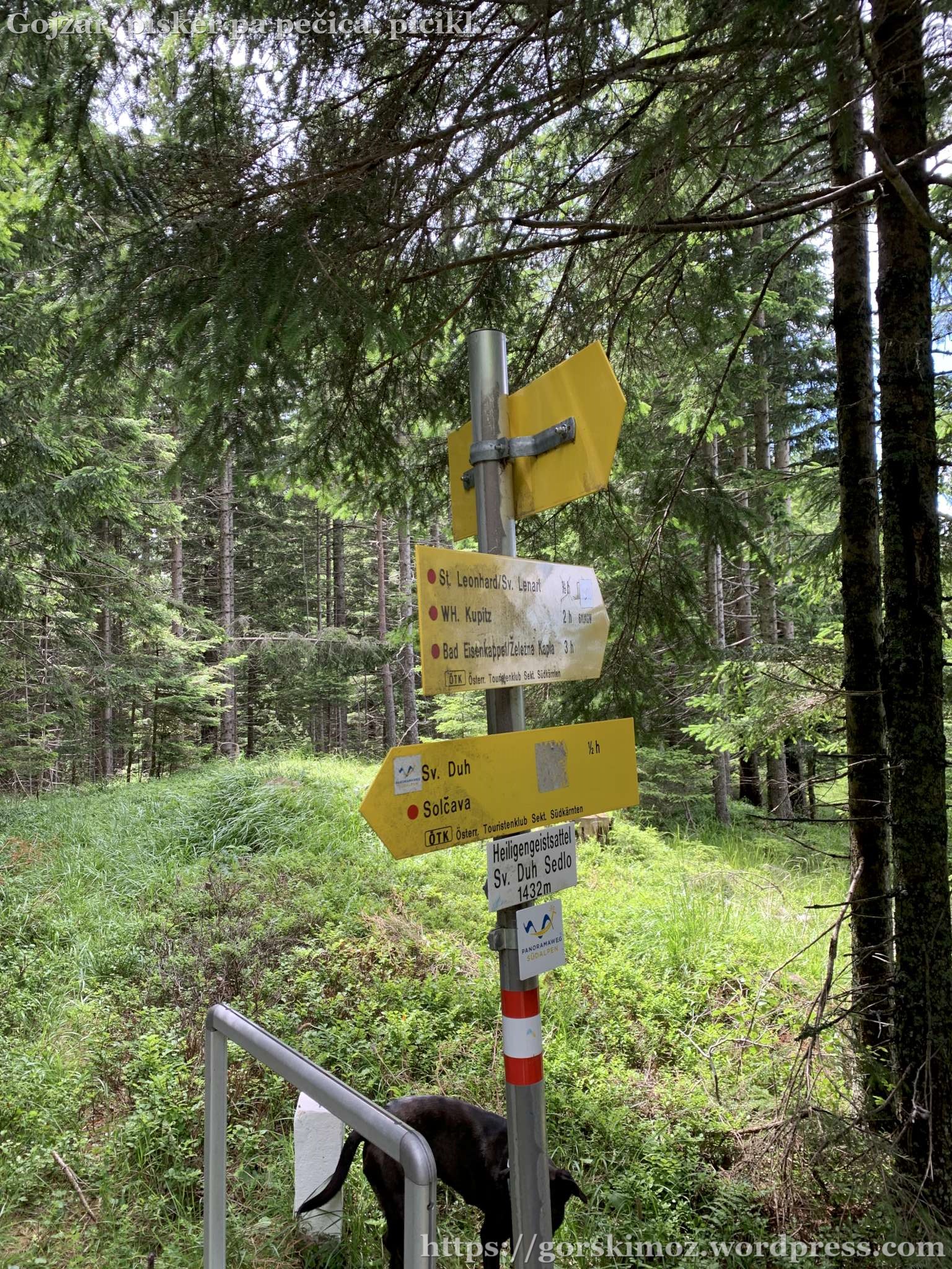 Cerkev Šmarjeta / St. Margarethen malo nad izhodiščem.Na pot smo se podali na ovinku pod cerkvijo, kjer smo tudi pustili avtomobile.Pot je bila kar strma, …… poznalo se je tudi obilno deževje prejšnji dan.Kmalu smo s ceste zavili levo na …… na še bolj strmo pot.Pot se je malo položila in potekala skozi mešani gozd.Po slabi uri smo si privoščili krajši počitek.Kmalu smo zagledali skale, ki so bile vse bližje.Sledil je še zadnji – nekoliko bol strm del poti proti Lipševim vratom.Zanimive skale na desni strani poti.Le še nekaj minut hoje nas je ločilo …… od Lipševih vrat.Pogled s poti na prvo okno / vrata.Skozi prvo okno poteka zavarovana pot, opremljena z jeklenicami. Ker so bile skale mokre, je bila potrebna ša posebna previdnost pri hoji.Pogled nazaj.Okna / vrata pod Olševo so tri. Za nami je bil prehod skozi prvo okno. Naravnost naprej je drugo, ki je poimenovano Malo okno / Kleines Felsentor.Pogled na prvo okno s poti proti drugemu.Malo okno / Kleines Felsentor.Od drugega okna se vrnemo nazaj proti prvemu in se nato ob jeklenici povzpnemo po “stropu” prvega okna…… proti Velikemu oknu / Grosses Felsentor.Pogled na drugo stran Olševe skozi Veliko okno.Razgledi so segali vse od Storžiča na levi, do Pristovškega Storžiča in Košute na sredini ter Obirja na desni. Triglav se zaradi oblakov ni videl.Pri Velikem oknu smo si privoščili odmor za malico in uživali v lepotah narave.Pogled na Veliko okno malo pred odhodom.Pot nazaj prav tako poteka ob jeklenici , zato je potrebna previdnost pri hoji.Po nekaj metrih jeklenice smo se vrnili na pot.Zopet smo lahko raztegnili palice in …… se odpravili naprej proti slovenski strani Olševe.Po dobrih desetih minutah hoje smo prišli do ovinka, kjer so se odprli razgledi proti Karavankam in …… in Kamniško-Savinjskim alpam.Le nekaj minut hoje po ravni stezi …… in že smo se priključili poti na Olševo od Sv. Duha.Dobro shojena pot nas je hitro pripeljala do Potočke zijalke.Pogled izpred Potočke Zijalke. Kamniško Savinjske alpe so kot na dlani.Ogledali smo si zunanjost ……in notranjost Potočke zijalke ter si nato malo odpočili pred jamo.Pogled na Raduho s poti nazaj.Po poti smo se vrnili do razpotja in se nato usmerili naravnost…… na pot, ki poteka čisto po meji.Pogled nazaj proti vrhu Olševe.Pot poteka po s travo poraslem gozdu, steza pa je bila kar mokra in močvirnata.Na sedlu Sv. Duh smo se usmerili proti cerkvi sv. Lenarta.Del poti skozi podrt gozd.Izvir zdravilne vode ob poti skoraj na cesti.Od ceste nas je le še kakšnih pet minut hoje ločilo ……od cerkve sv. Lenarta.Utrinek z jase, kjer stoji cerkev.Pri podirajoči mežnariji smo imeli še zadnji daljši odmor.Jasa s cerkvijo.Od cerkve smo se sprva podali po cesti, a smo kmalu zavili na poraščeno pot, …… ki nas je pripeljala nazaj na cesto.Smerokazi so nas usmerili v sotesko Kupitz.Kmalu smo prišli do potoka, ob katerem smo se vračali vse do našega cilja.Bujno rastje ob potoku.Od mesta, kjer se združita dva potoka …… ni več daleč do urejenega dela soteske.Hodeč po mostovih smo občudovali lepoto in moč vode, ki se z glasnim bučanjem spušča v dolino.Kmalu smo prišli do konca soteske in …… do cilja smo se samo še sprehodili čez travnik.