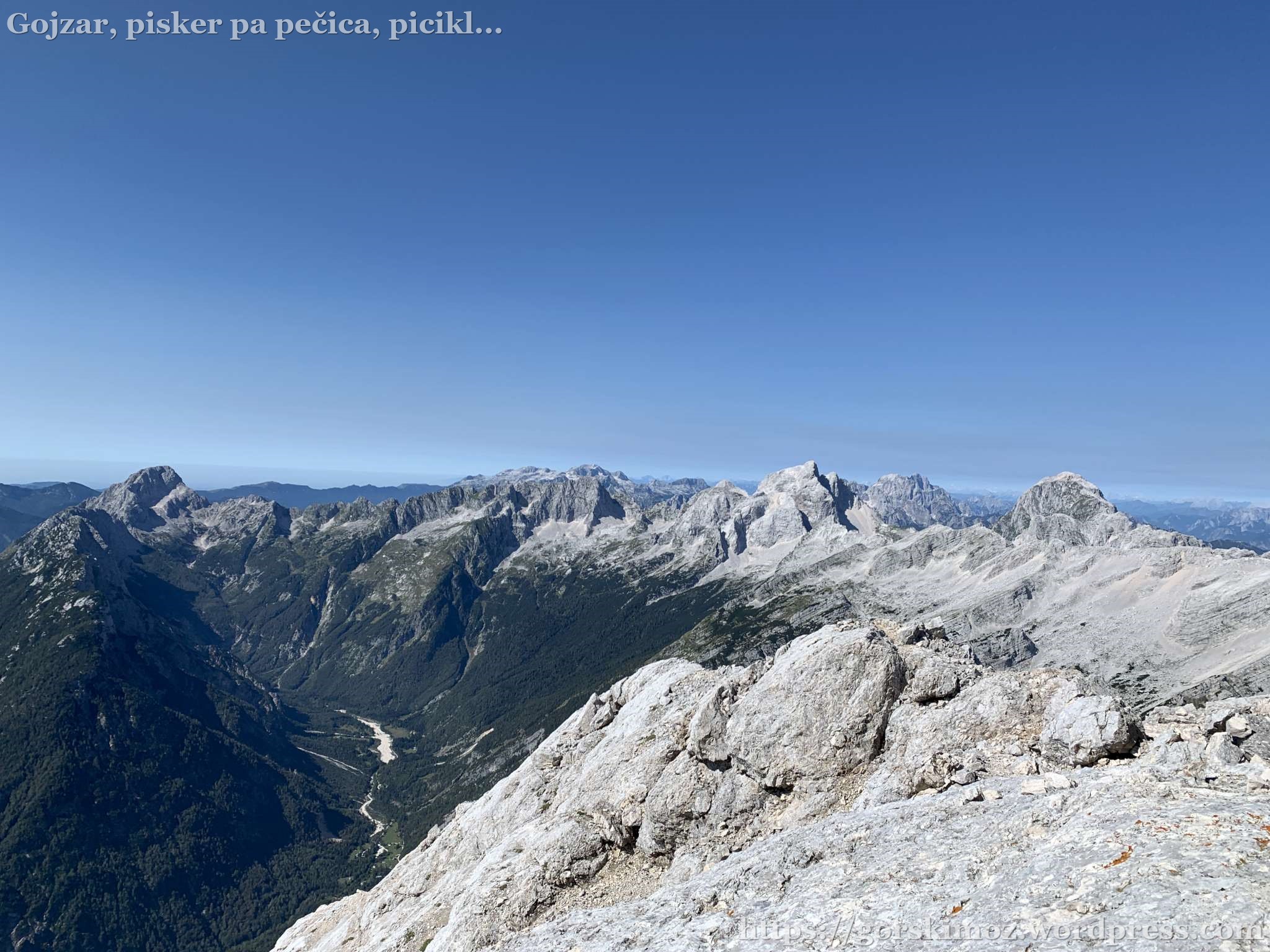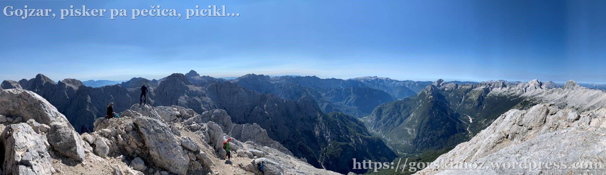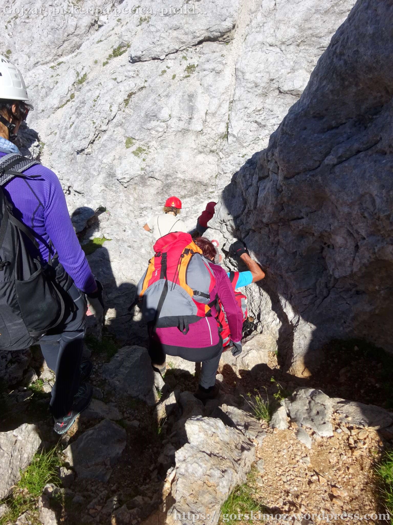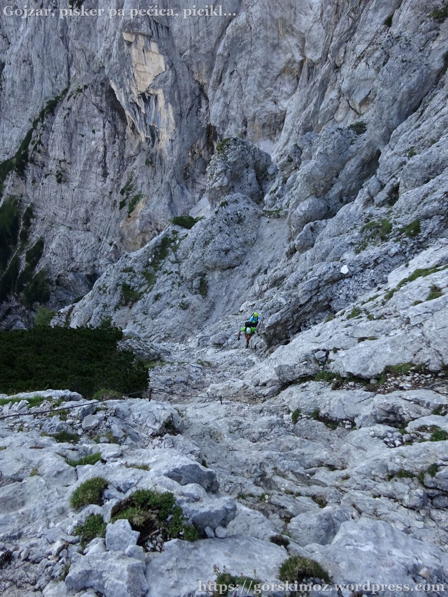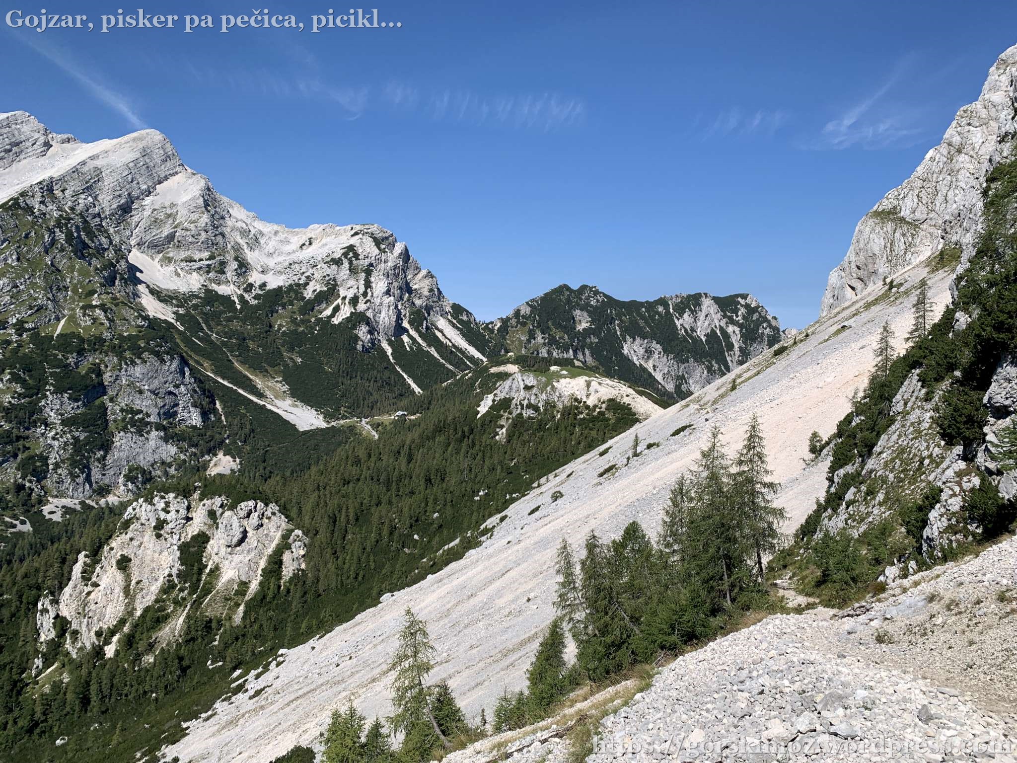 Sestop po Slovenski poti je sicer mnogo lažji (kot vzpon po Kopiščarjevi in grebenski poti), a vseskozi je potrebno biti previden, saj je na skalah dosti grušča in hitro se lahko zgodi zdrs. Po prehodu poti iz skalnate grape na travnata pobočja, pot postane lažja in še bolj lahko uživamo v prekrasnih razgledih na okoliške gore. Ko pridemo do melišča smo pa že skoraj na izhodišču. S kolegico Anjo sva skupino malo pred koncem prepustila Polonci, sama pa pohitela proti Vršiču, saj je bila napovedana zapore ceste zaradi prireditve. Še pravočasno sva prišla do avtomobilov in se odpeljala proti Kranjski gori, preden so cesto zaprli.