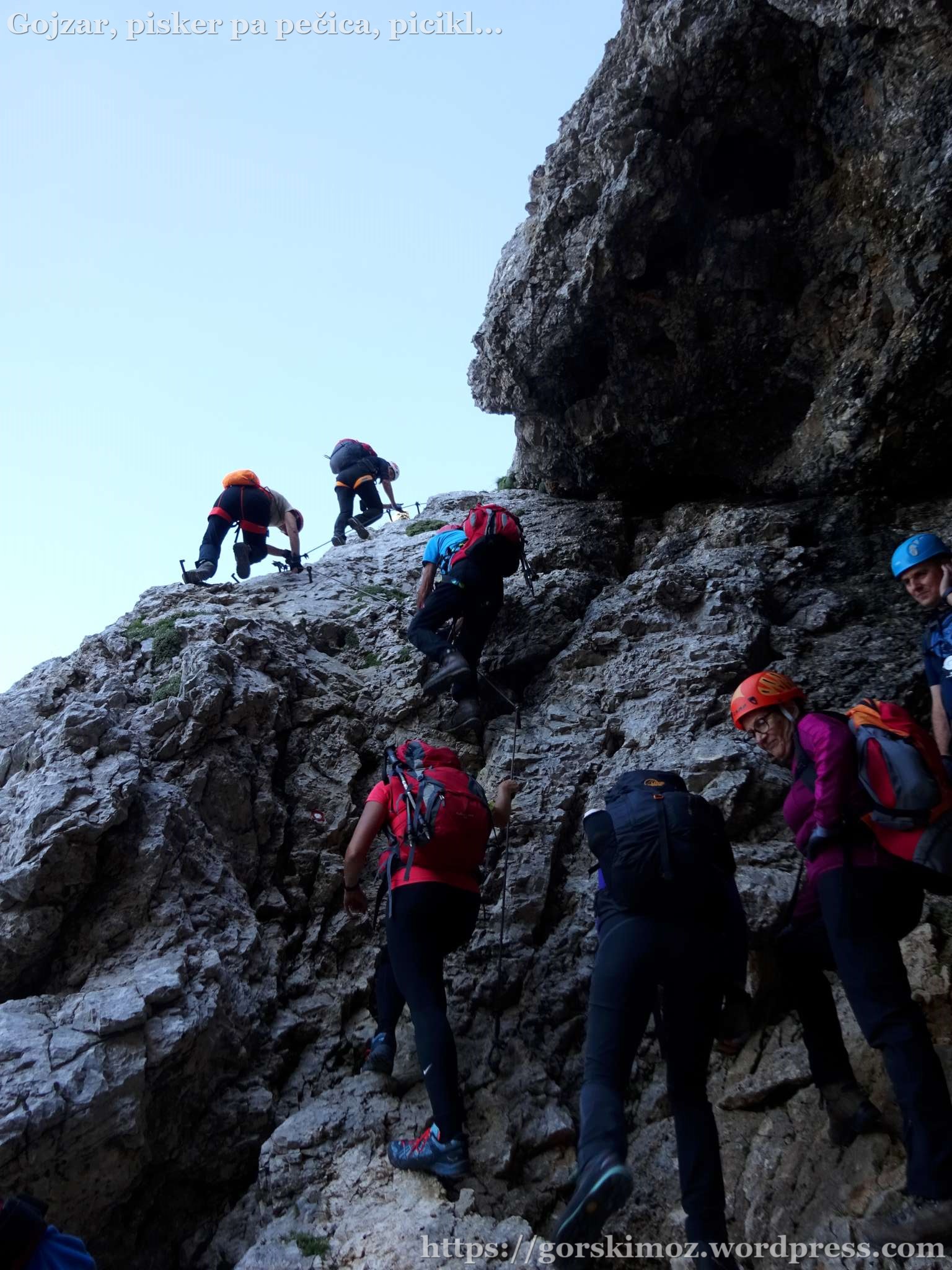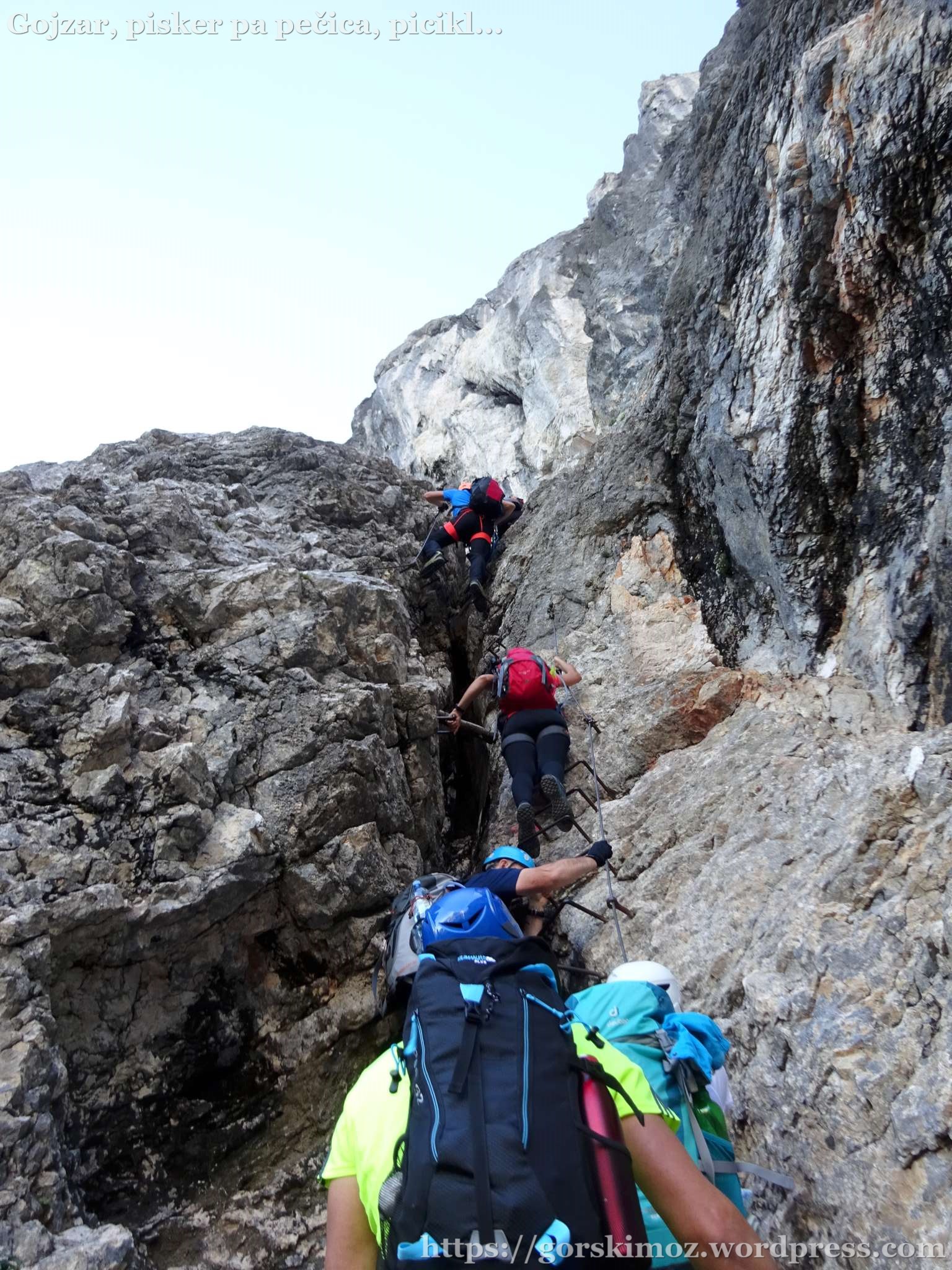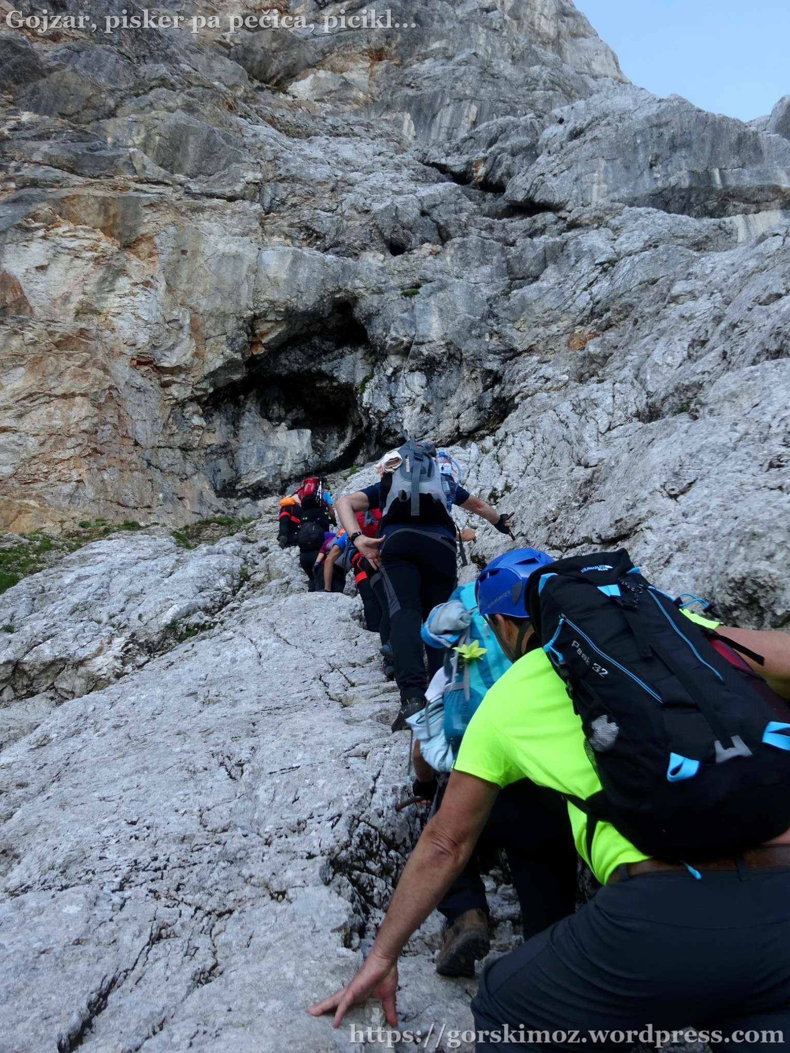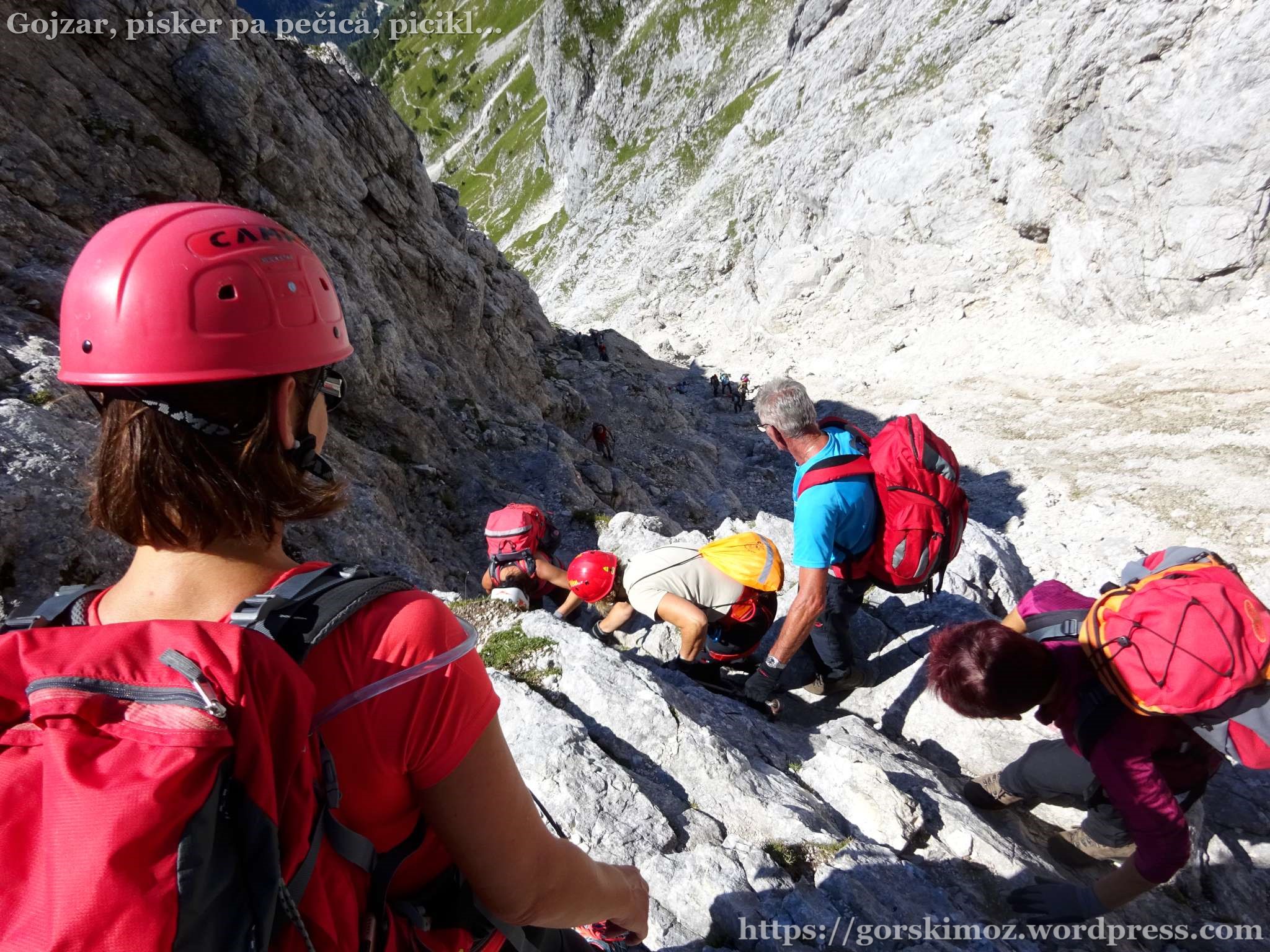 Pohod, ki ga je za PD Makole organizirala in vodila Polonca, je bil dvodnevni. V soboto s(m)o šli z Vršiča po Kopiščarjevi poti na Prisojnik ter po Slovenski poti nazaj, v nedeljo pa so šli še po Hanzovi poti na Malo Mojstrovko in se vrnili nazaj na Vršič. S kolegico Anjo sva se jim pridružila samo v soboto, saj je pri obeh bila nedelja že zasedena z drugimi obveznostmi.